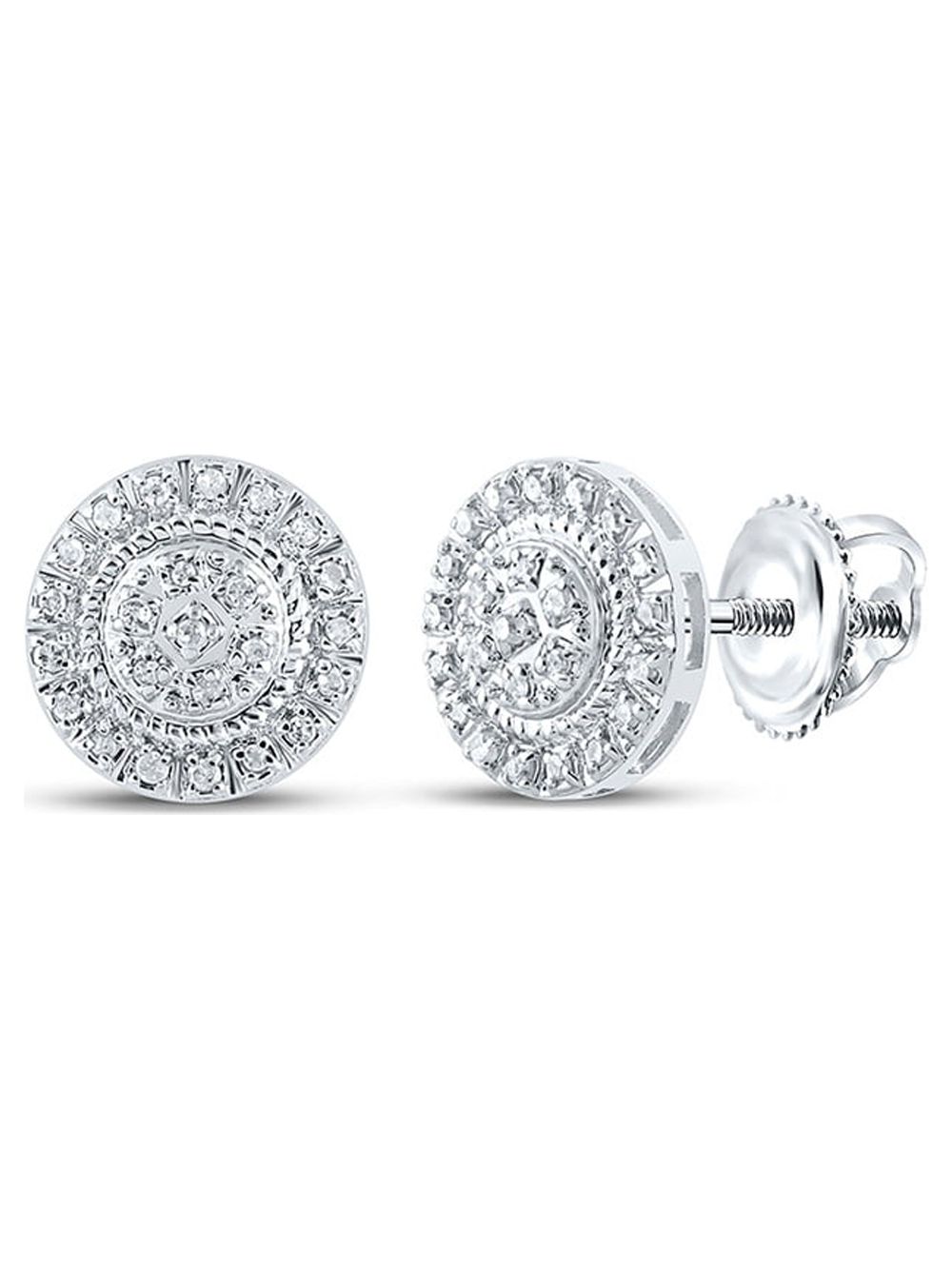 Diamond Queen 10kt White Gold Mens Round Diamond Cluster Earrings 1/8 Cttw