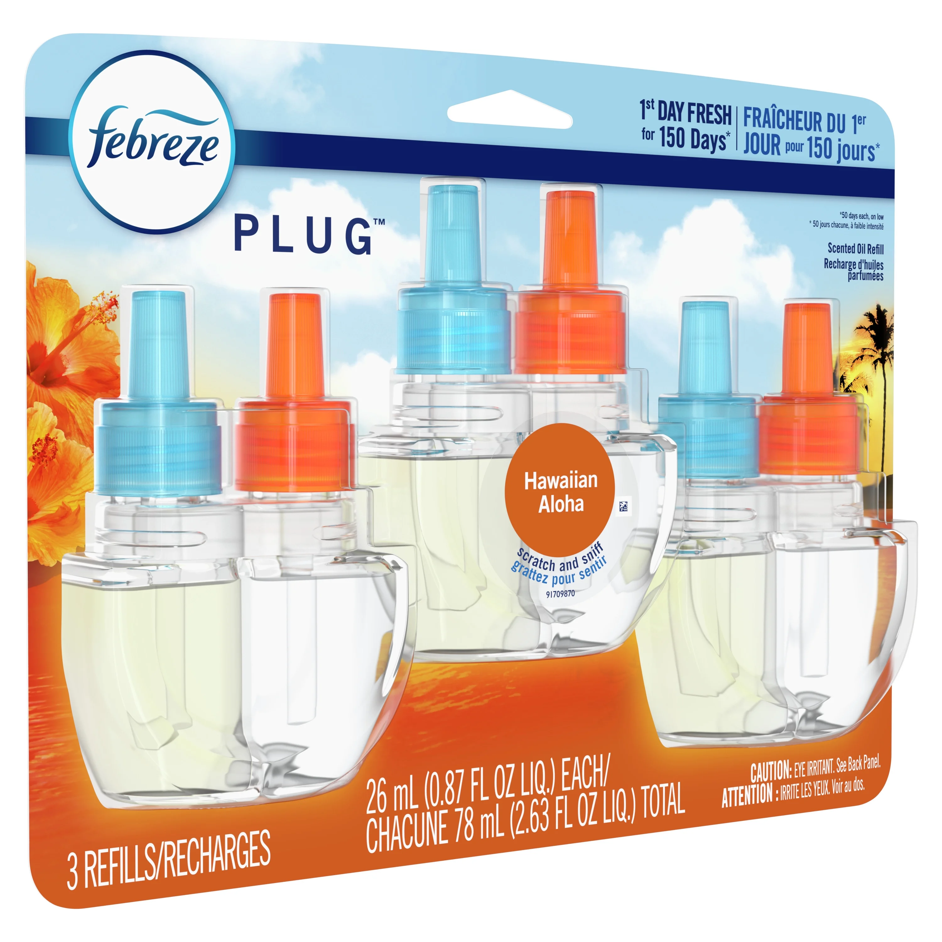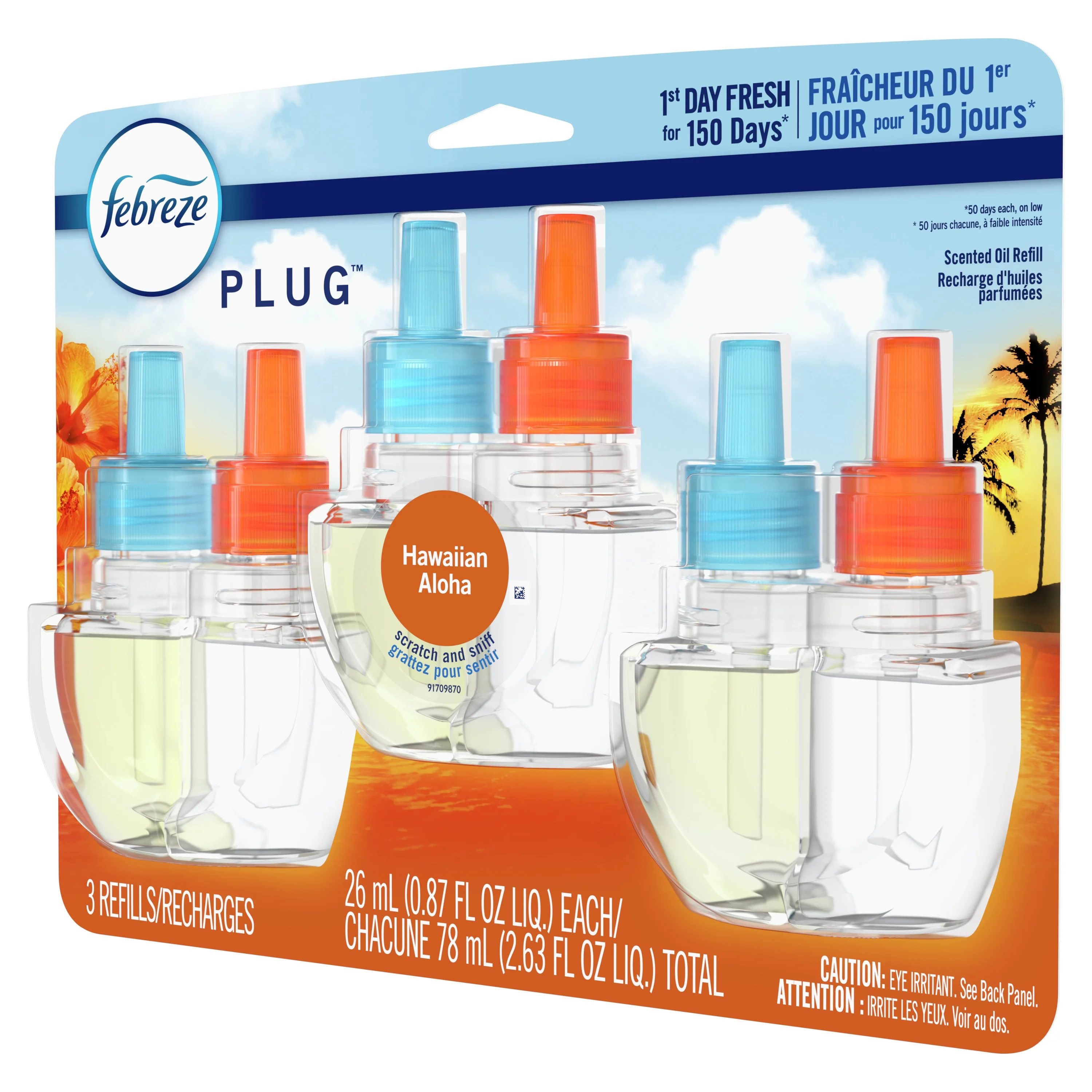 Febreze Odor-Fighting Fade Defy PLUG Air Freshener Refill, Hawaiian Aloha, (3) .87 fl oz Oil Refills