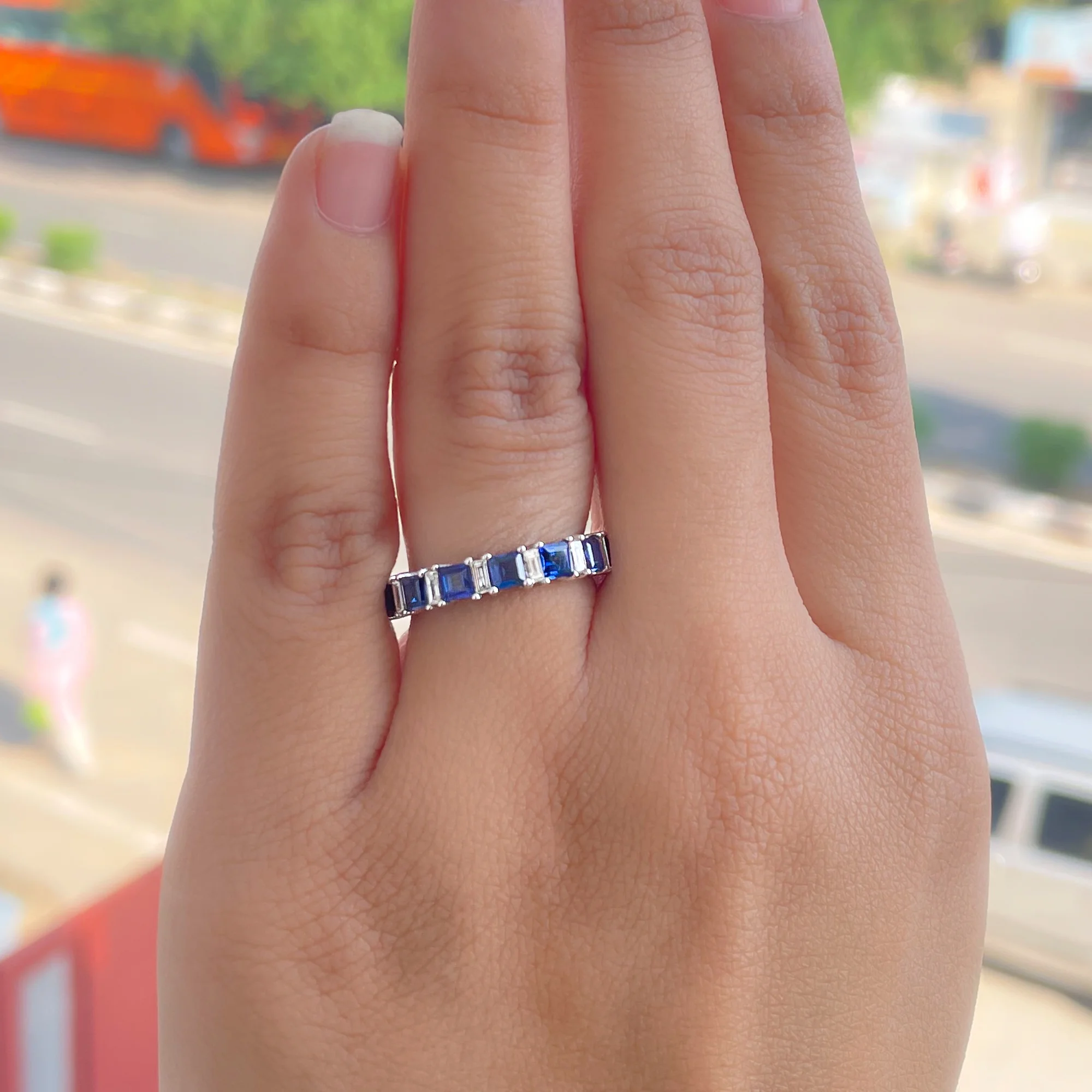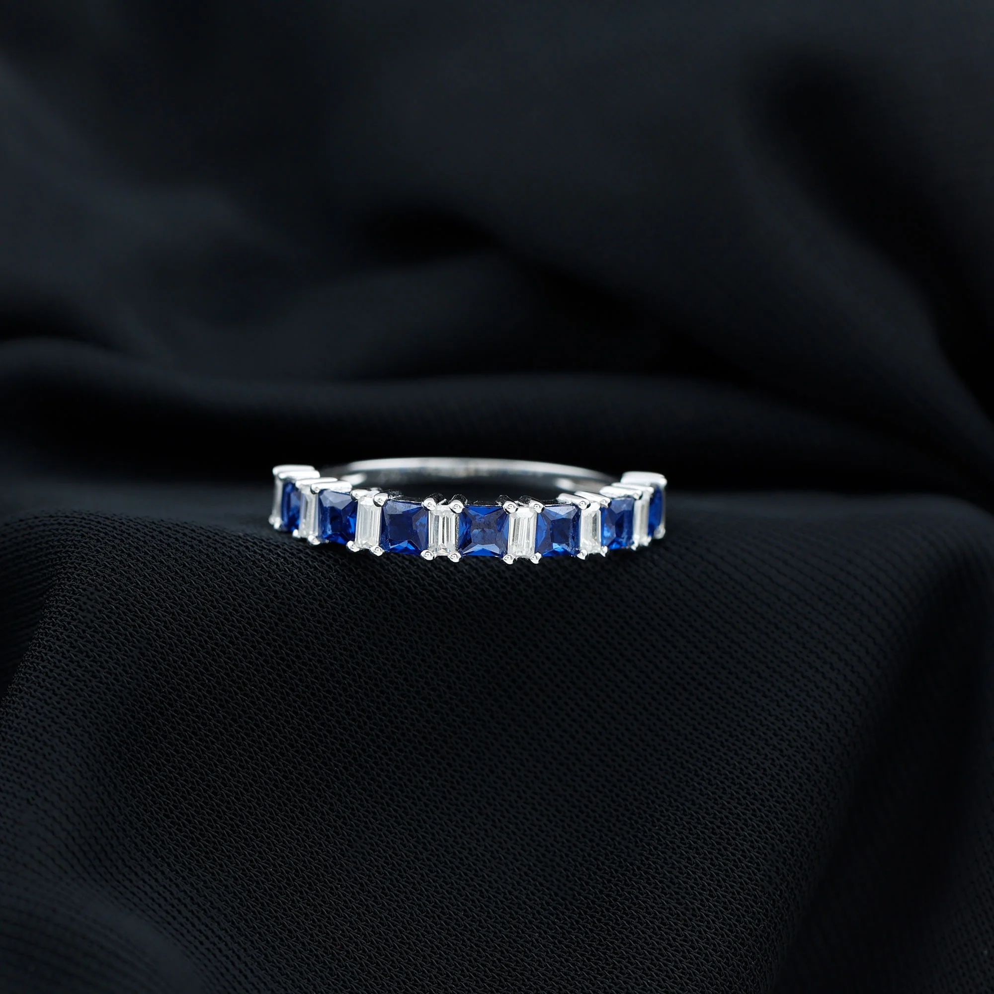 Womens 2 CT Princess Cut Lab Created Blue Sapphire Half Eternity Ring with Diamond, 14K White Gold, US 4.50