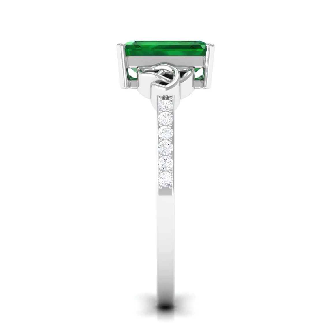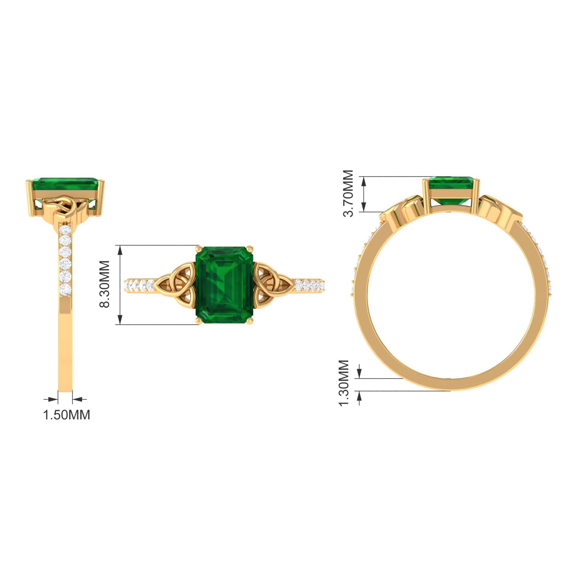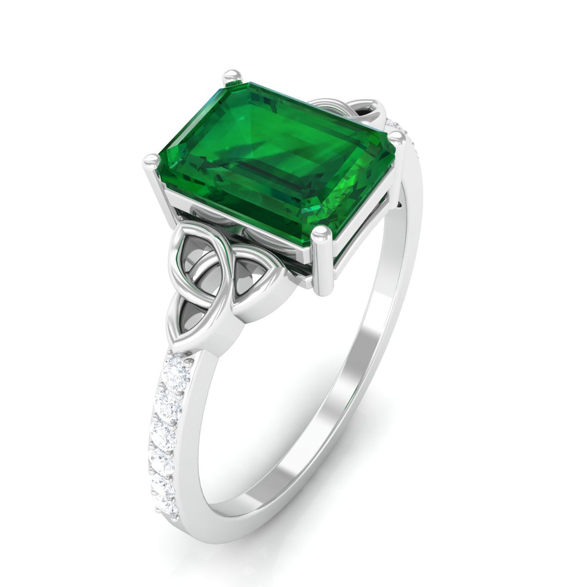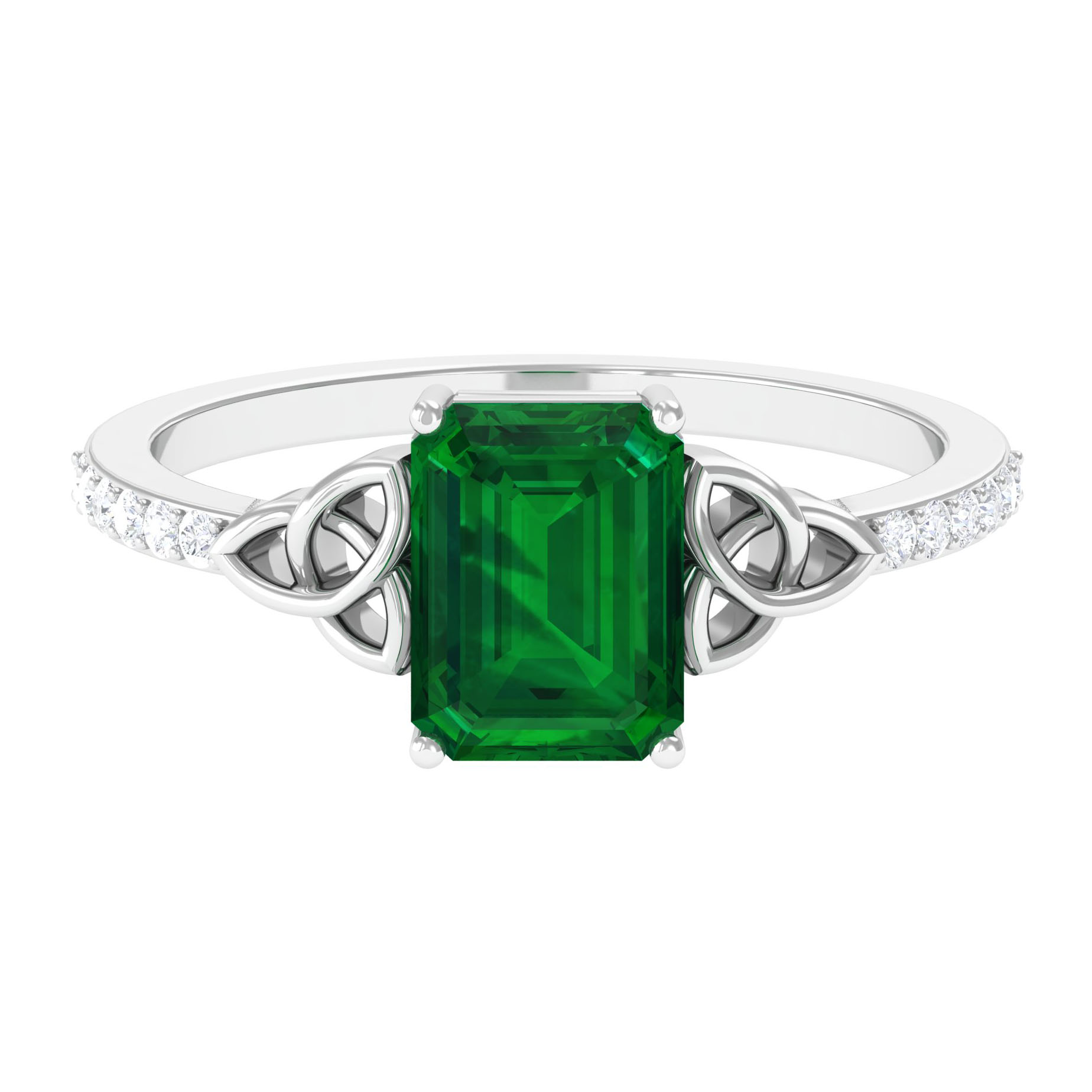 Lab Grown Emerald Solitaire Celtic Ring with Diamond for Women - 6X8 mm, 925 Sterling Silver, US 13.00