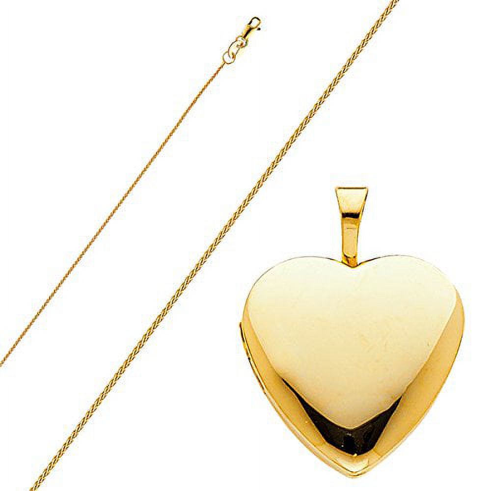 14k Yellow Gold Heart Locket Pendant with 0.8 mm Wheat Chain 16'' - 22'' (18.00, 0.9)