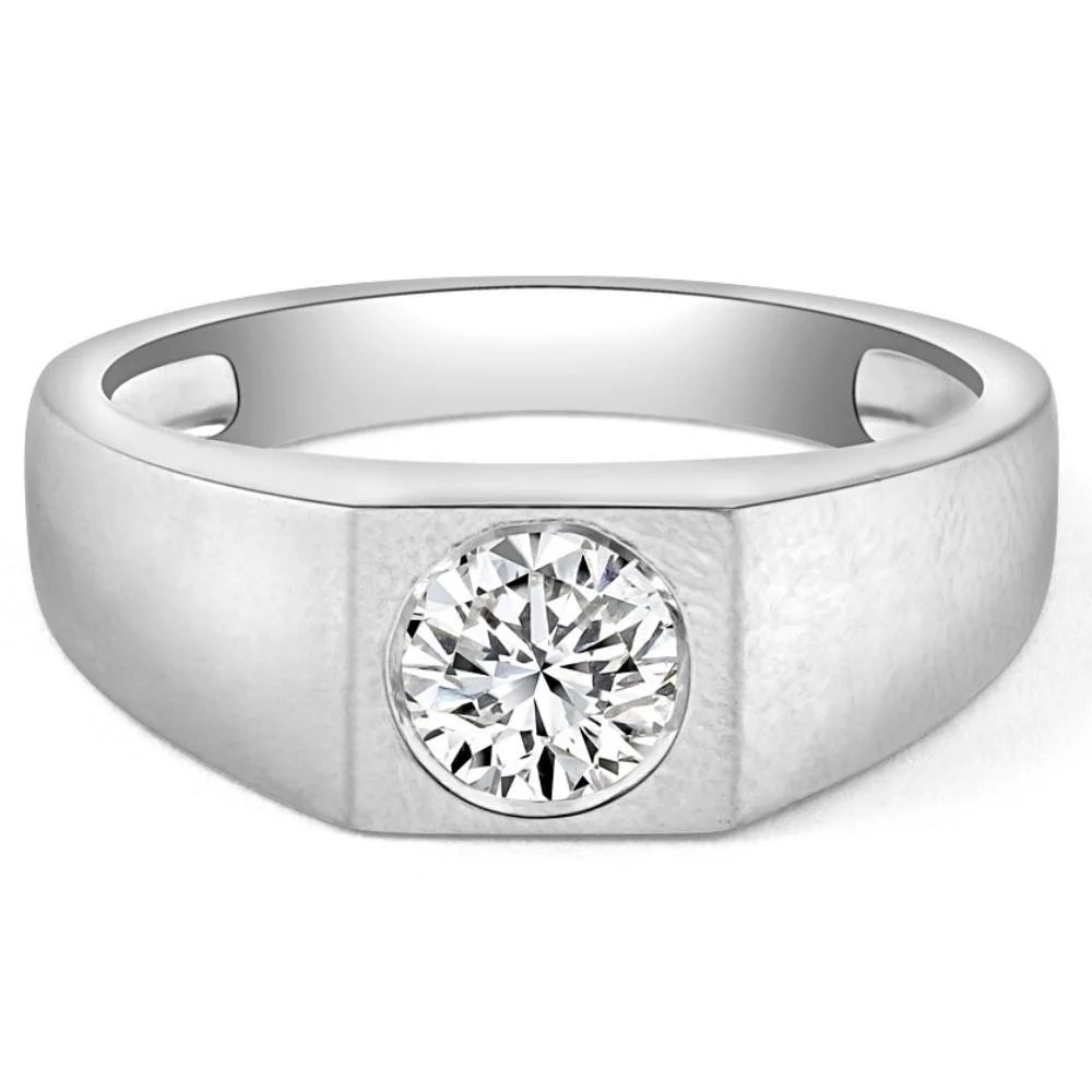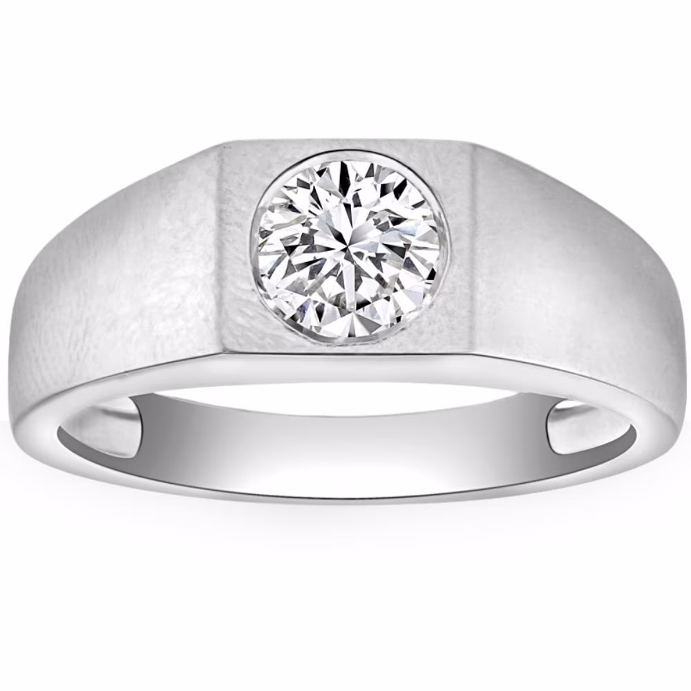 Pompeii3 1 Ct Solitaire Lab Grown Men's Diamond Wedding Ring in 10k White Gold