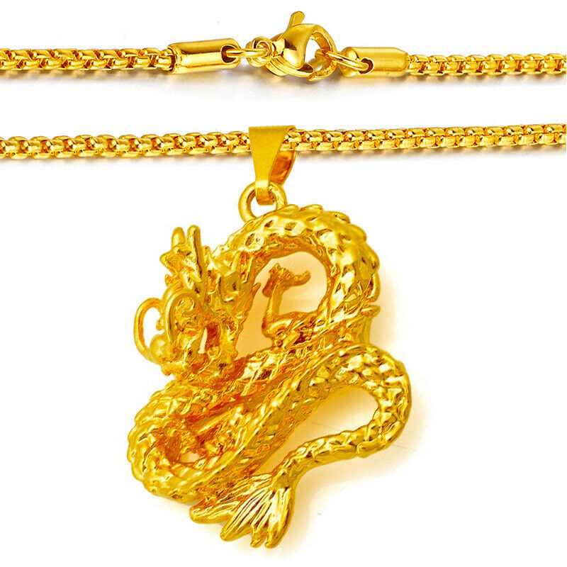 18k Gold Plated Bold Dragon Link Chain 24" Mens Womens Pendant Necklace D951