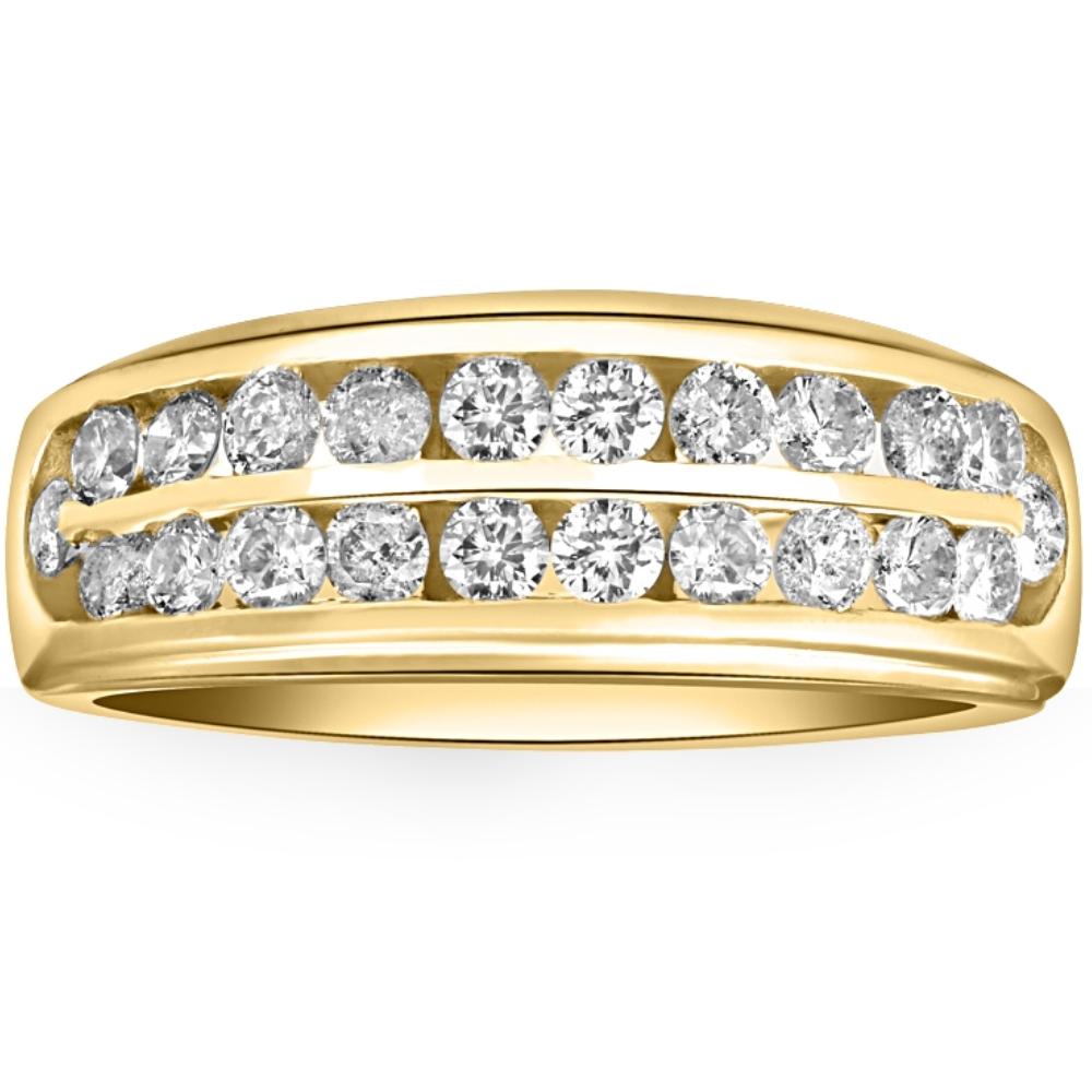 Pompeii3 1 Ct Lab Grown Diamond Mens Double Row Wedding Ring 10k Yellow Gold