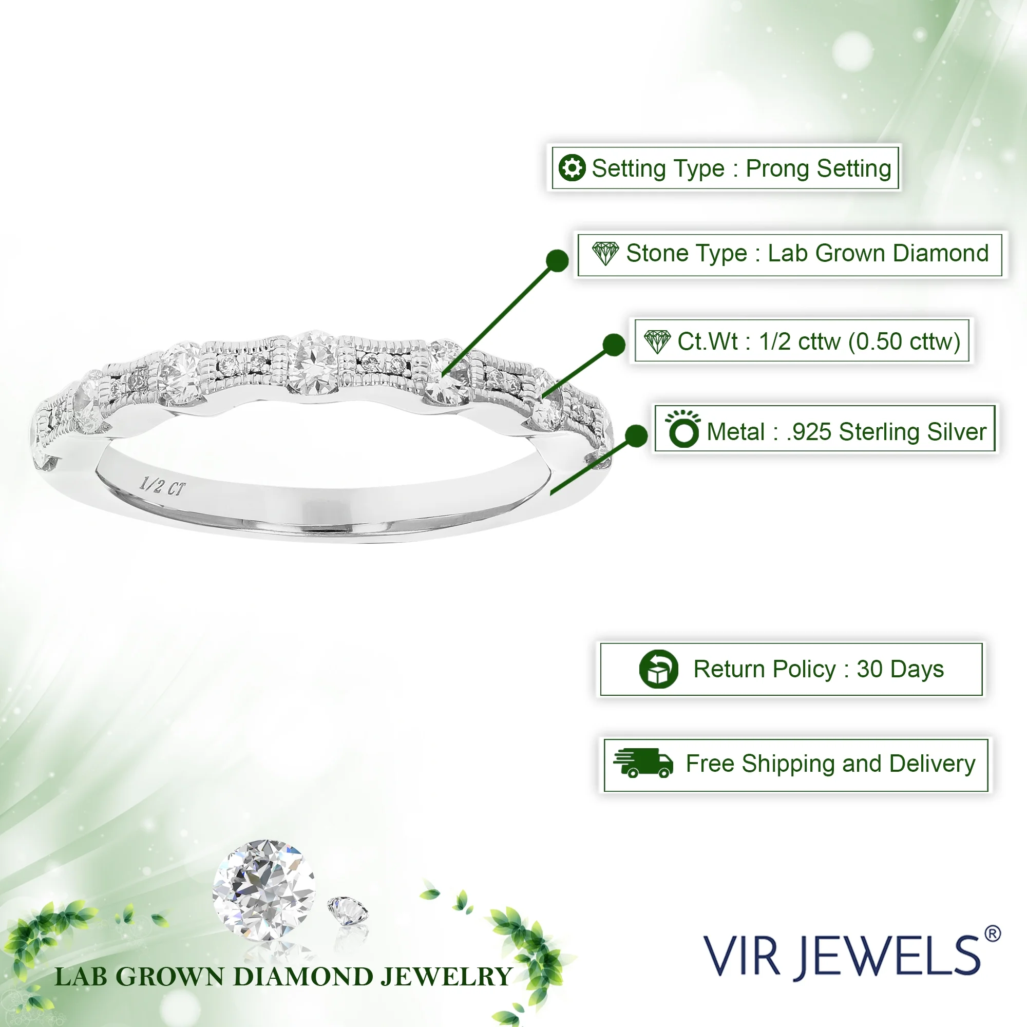 Vir Jewels 1/2 CTTW Lab Grown Diamond Wedding Band .925 Sterling Silver Prong Size 7
