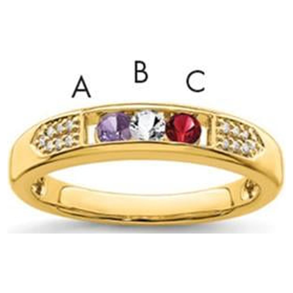 14K Yellow Gold Family Jewelry Synthetic Stone & Real Diamond Set Ring