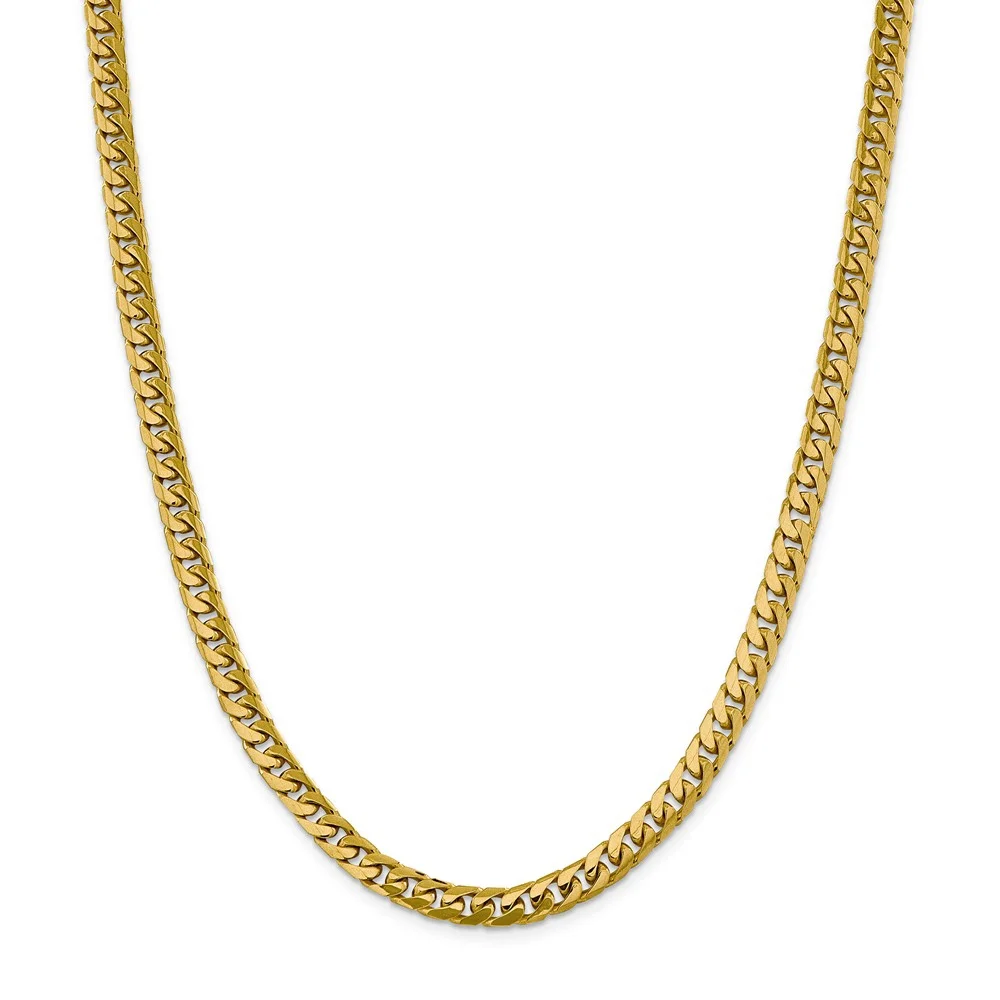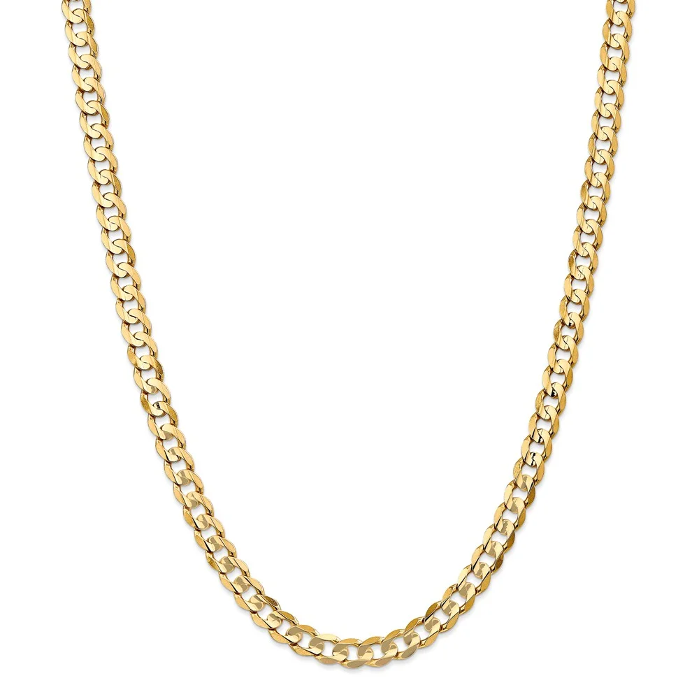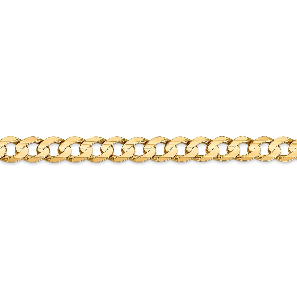 Real 14kt Yellow Gold 6.75mm Open Concave Curb Chain; 22 inch; Lobster Clasp; for Adults and Teens; for Women and Men