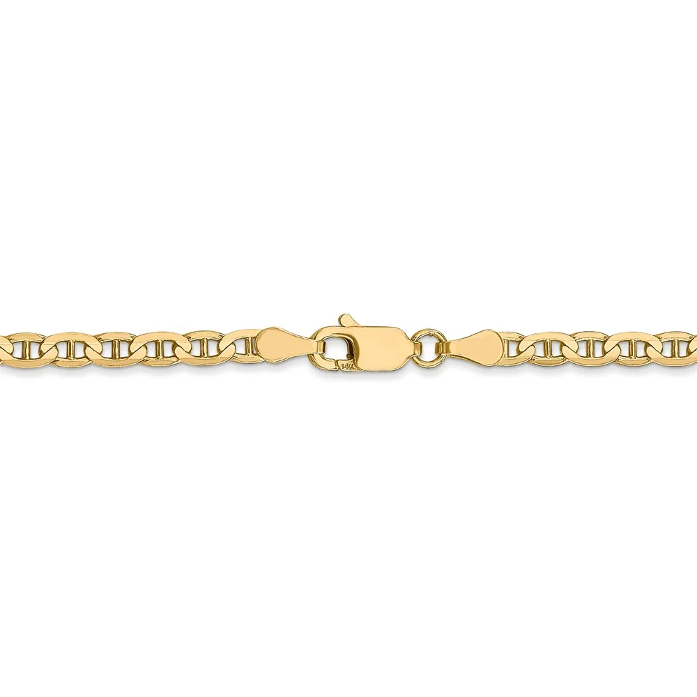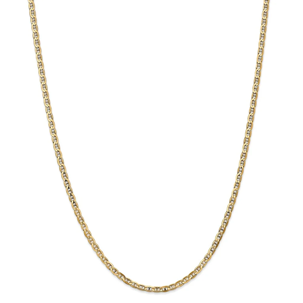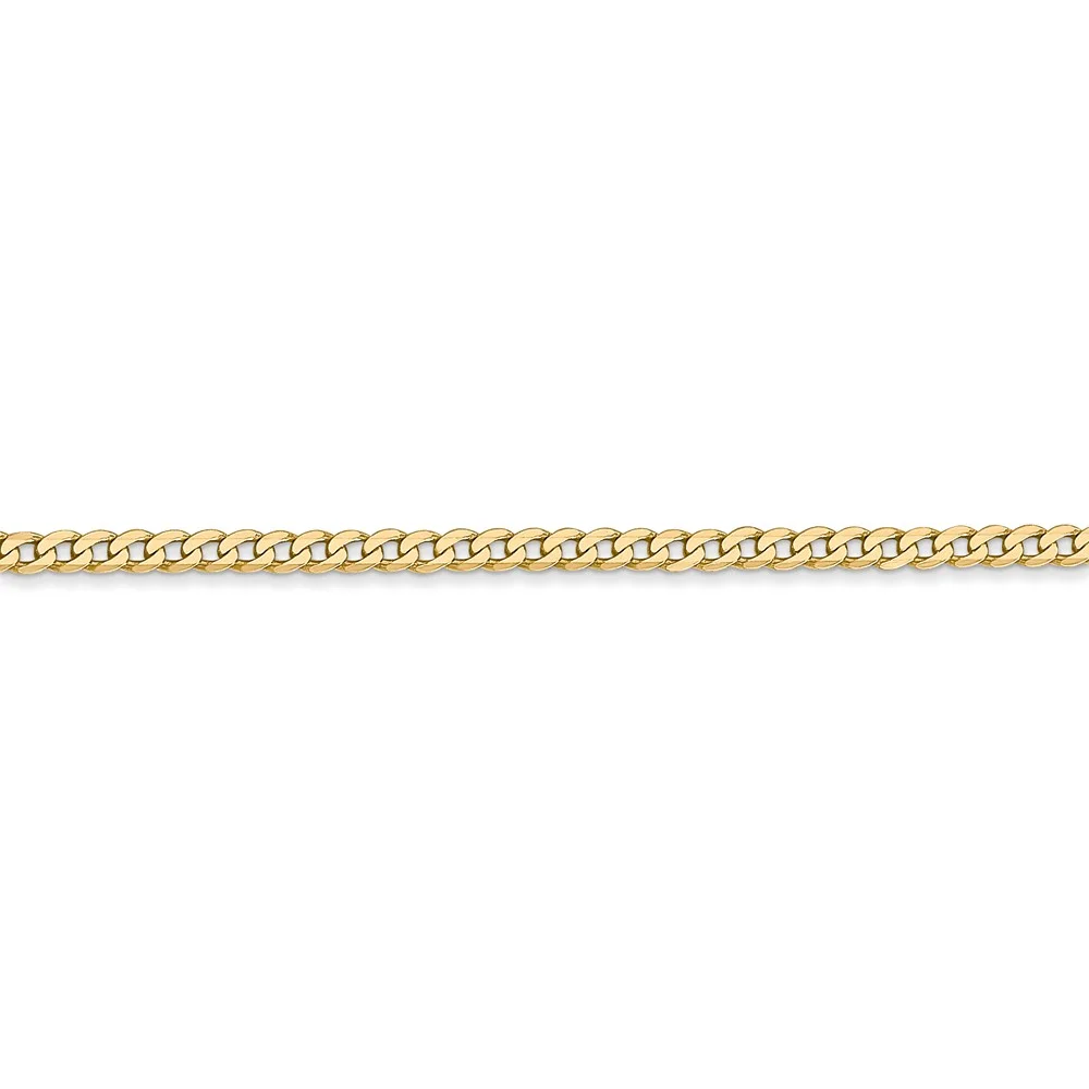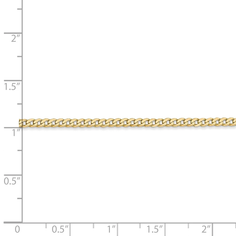 Real 14kt Yellow Gold 2.2mm Flat Beveled Curb Chain; 16 inch; Lobster Clasp