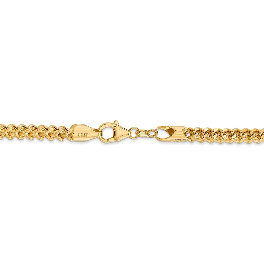 Real 14kt Yellow Gold 3.7mm Semi-Solid Franco Chain; 20 inch; Lobster (Fancy) Clasp; for Adults and Teens; for Women and Men