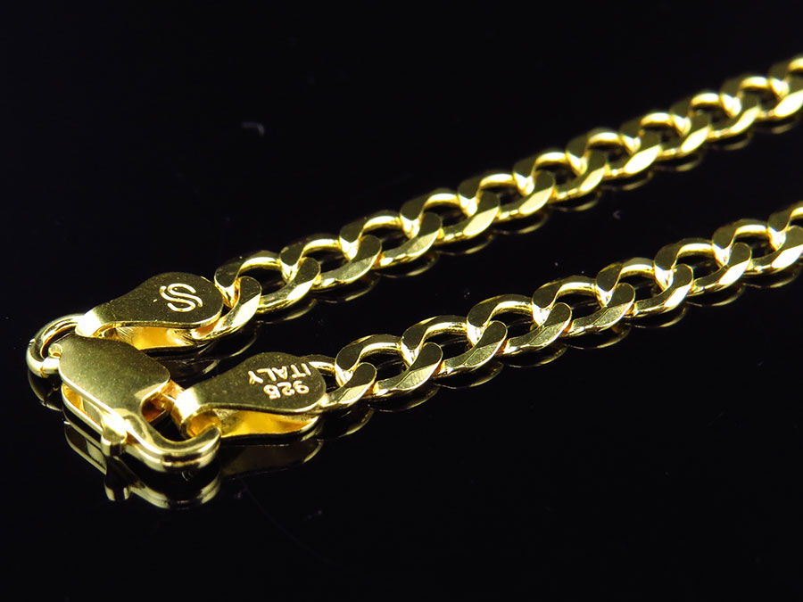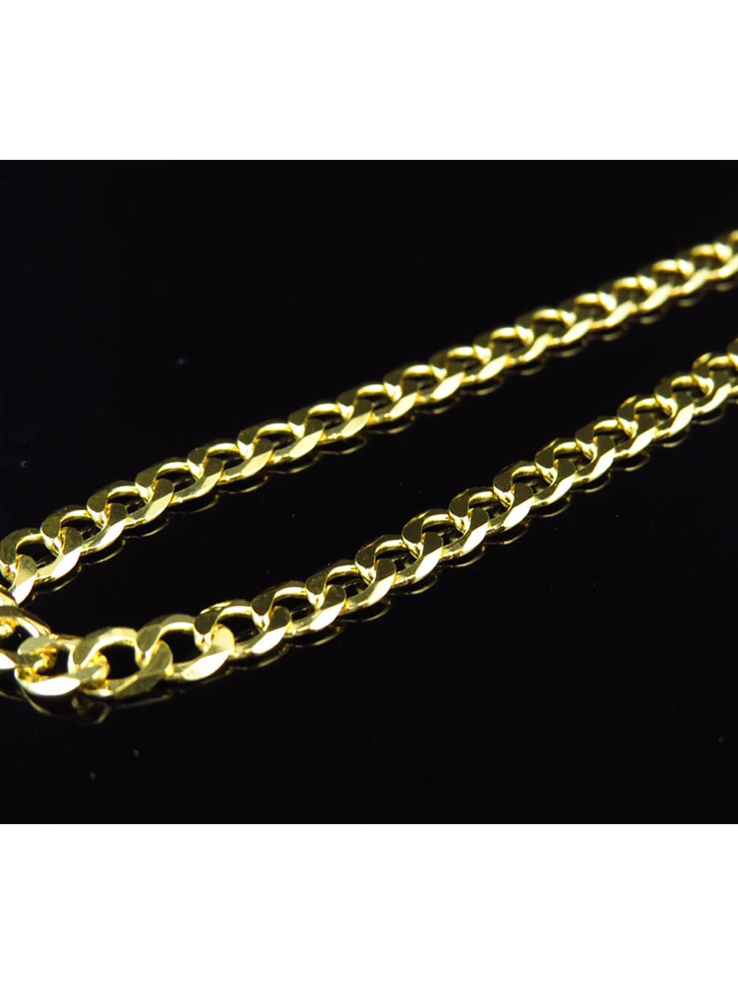 Yellow Gold Finish Sterling Silver 4MM Miami Cuban Link Chain Necklace 18"-28"