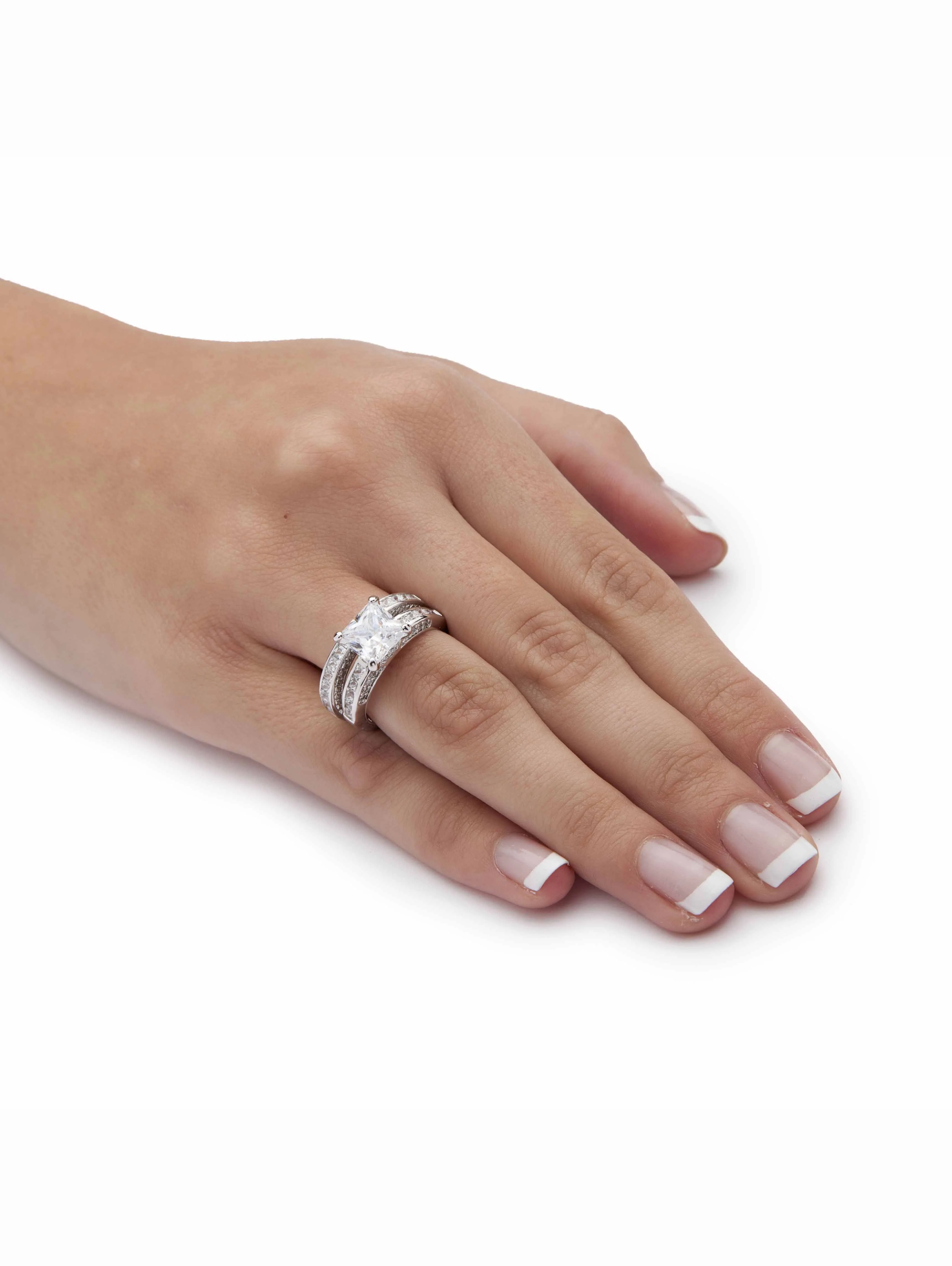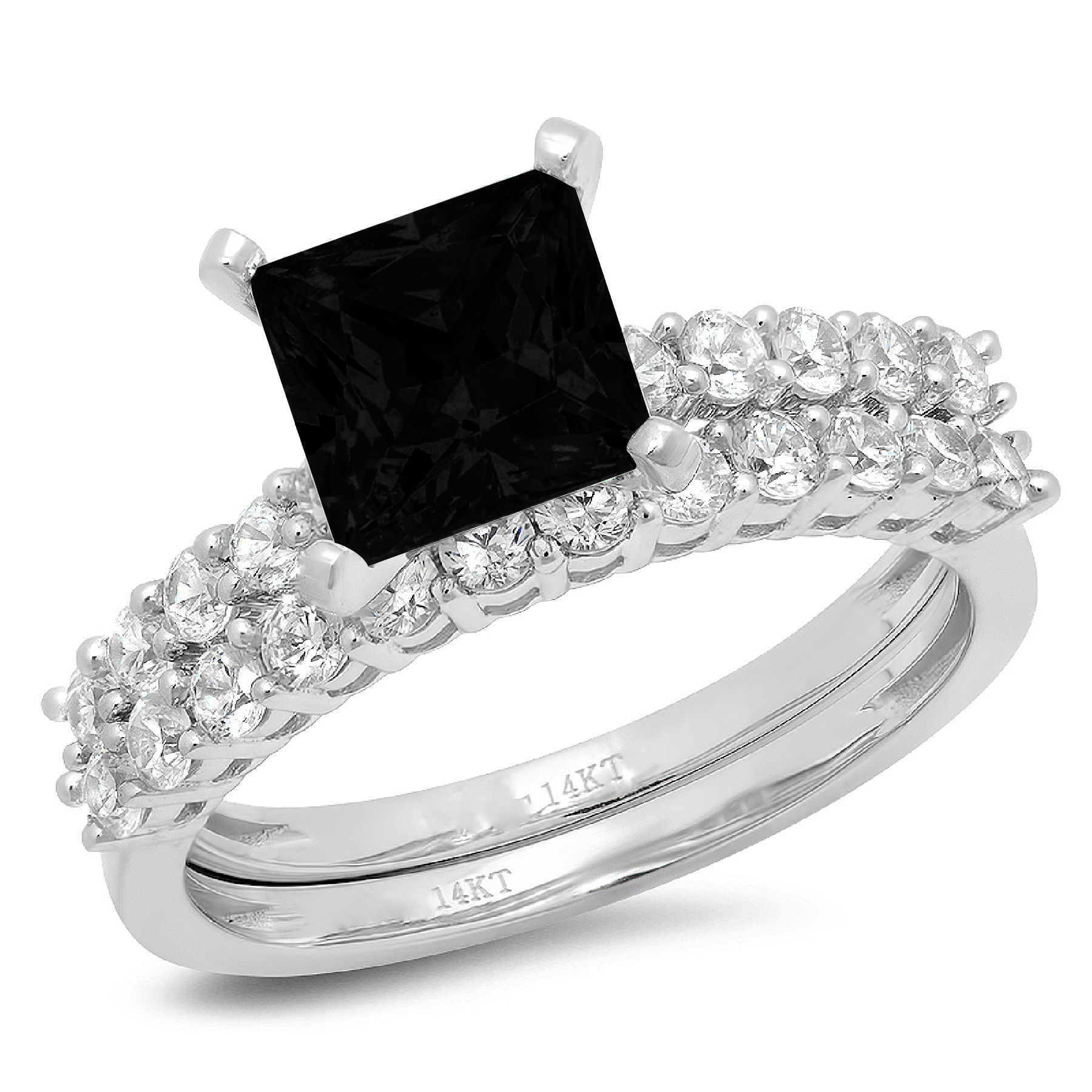 2.66 ct Brilliant Princess Cut Natural Onyx 18K White Gold Solitaire with Accents Bridal Set SZ 6.75
