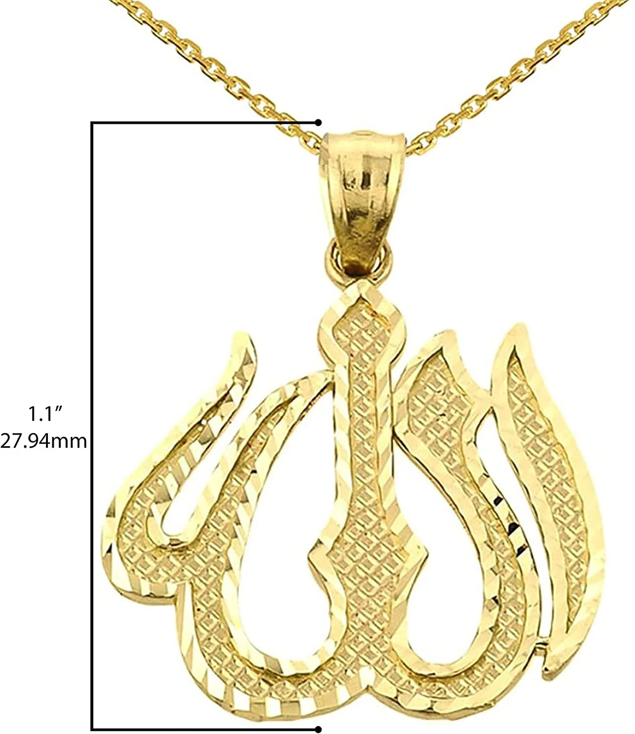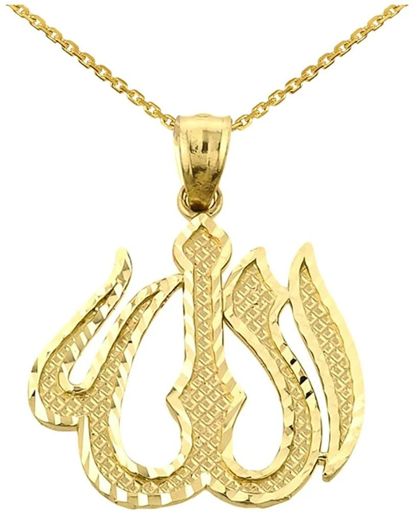 14K Yellow Gold Allah Arabic Script Word for God Islamic Muslim Diamond-Cut Pendant Necklace - 18"