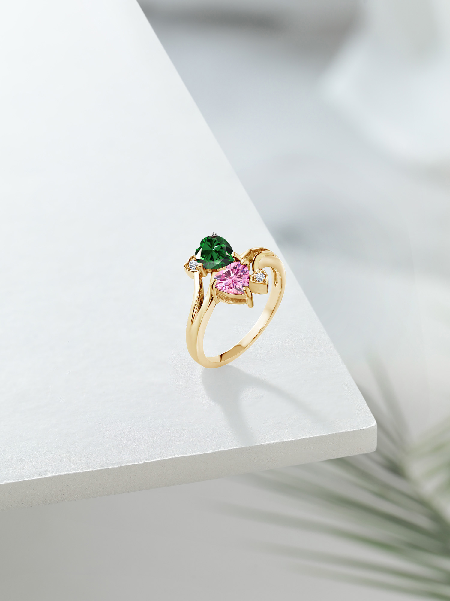 10k Yellow Gold Vintage Style Genuine Emerald-Cut Garnet and Diamond Ring
