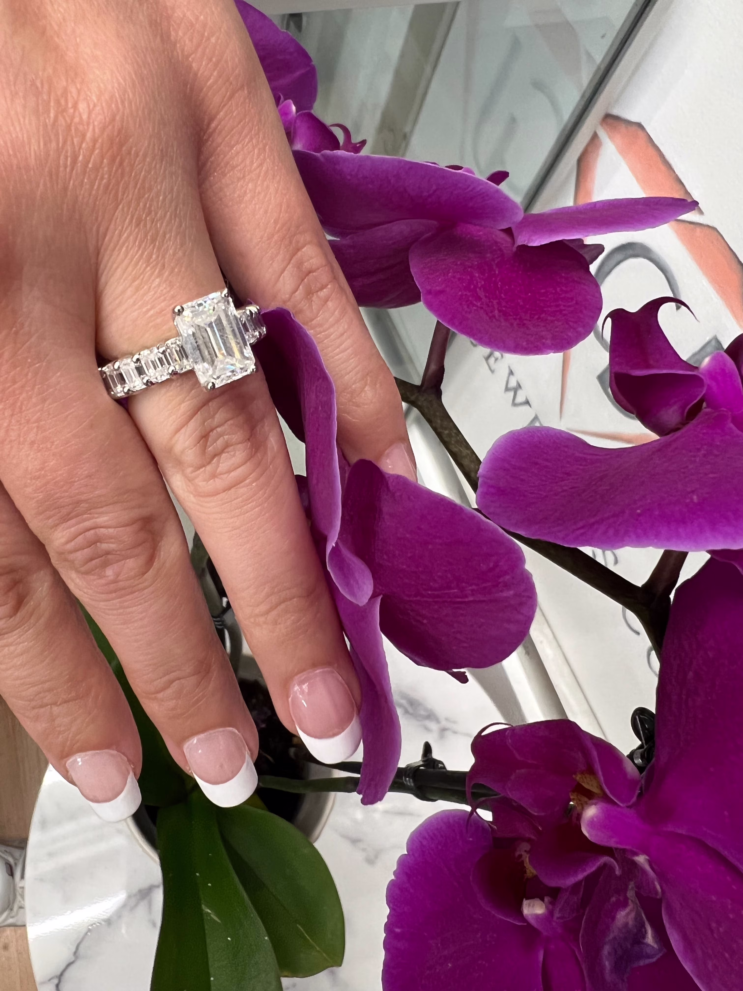 Gemini - 6 Carat Emerald Cut Diamond Eternity Engagement Ring ( U-Prong Setting )