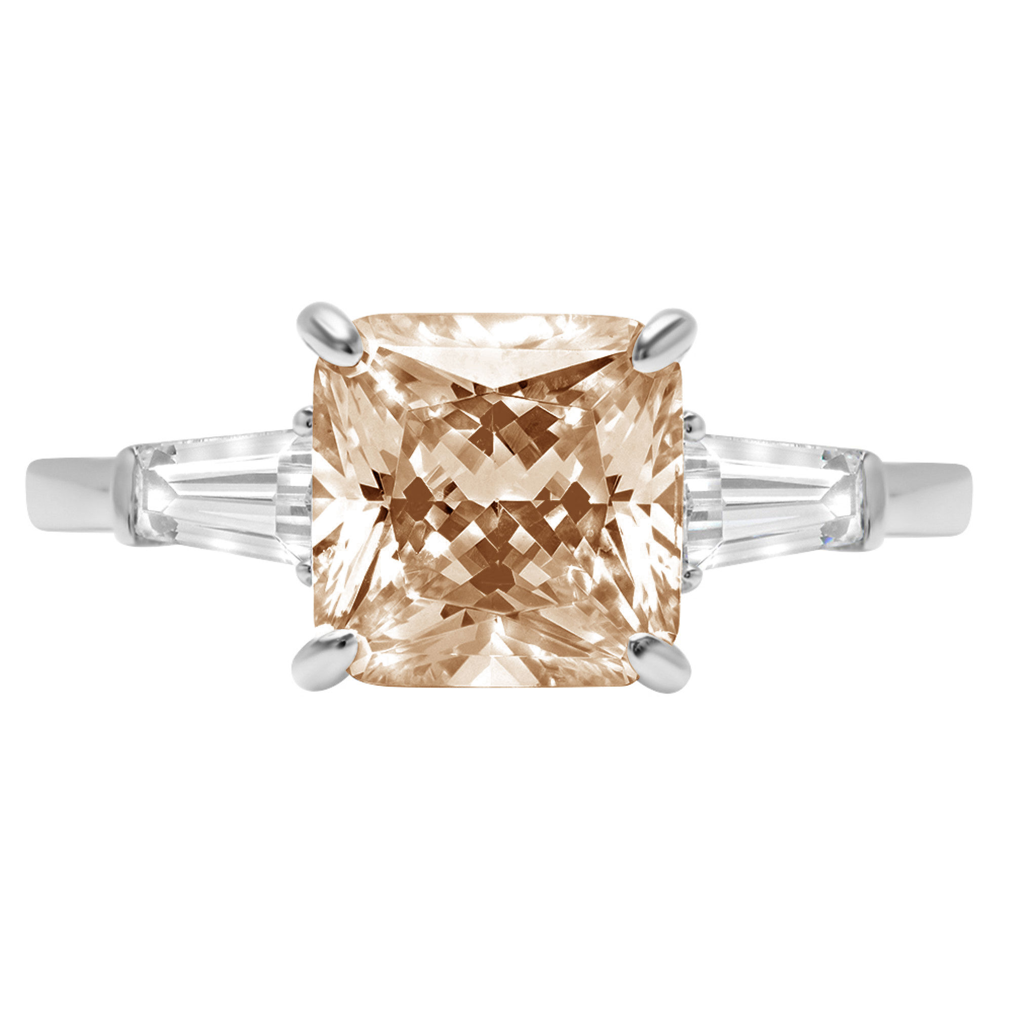 3ct asscher cut champagne simulated diamond 18k white gold anniversary engagement 3 stone ring size 3.75