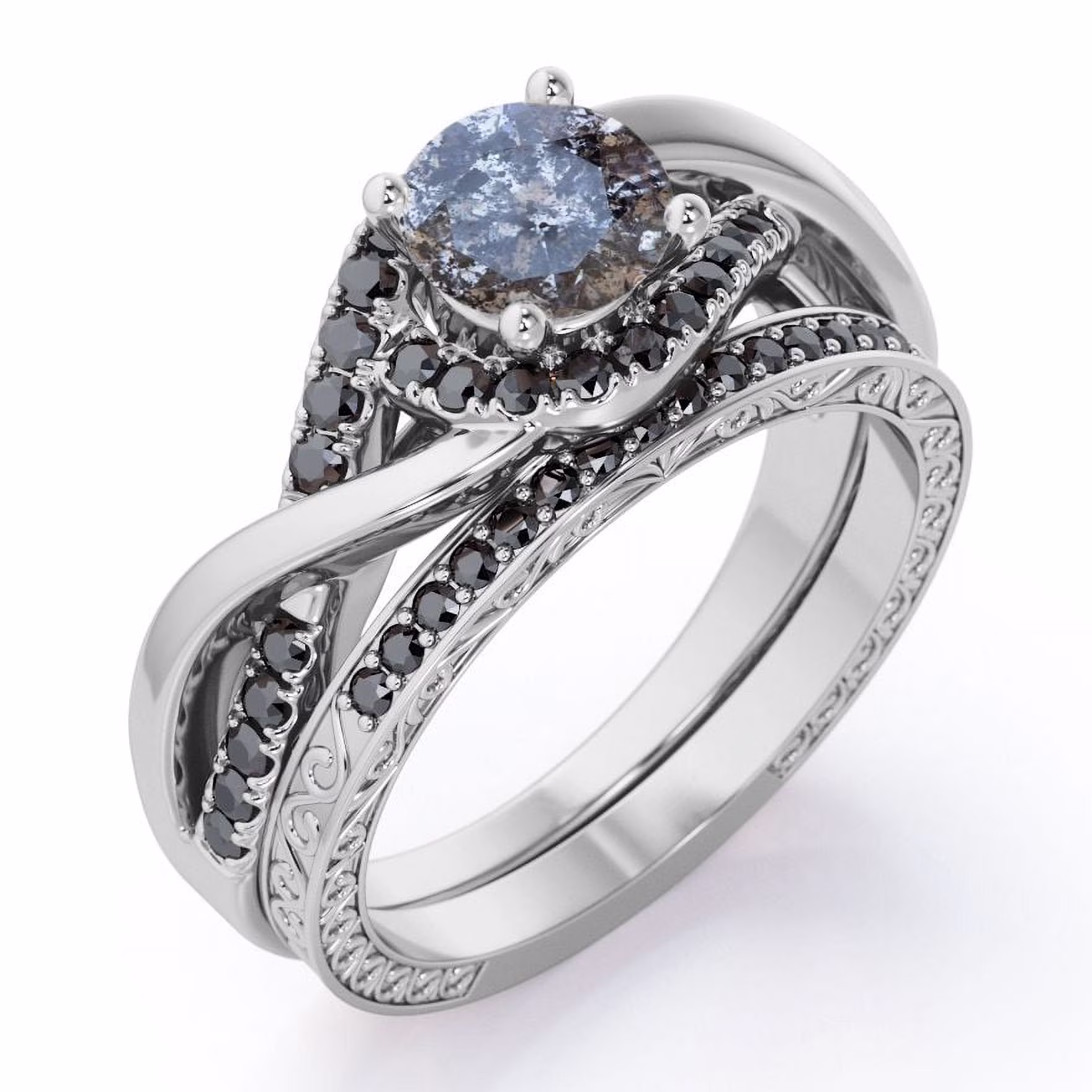Certified 5/8ctw Diamond Halo Bridal Set Engagement Ring in 10k White Gold (G-H, I2-I3)