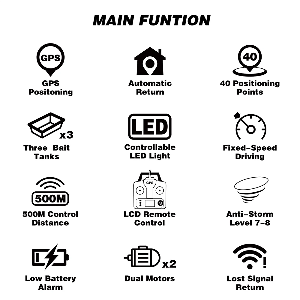 COONOR GPS Bait Boat for Fishing Large Container Automatic 400-500M Remote Range