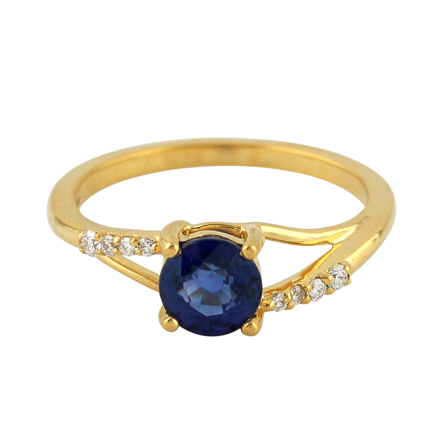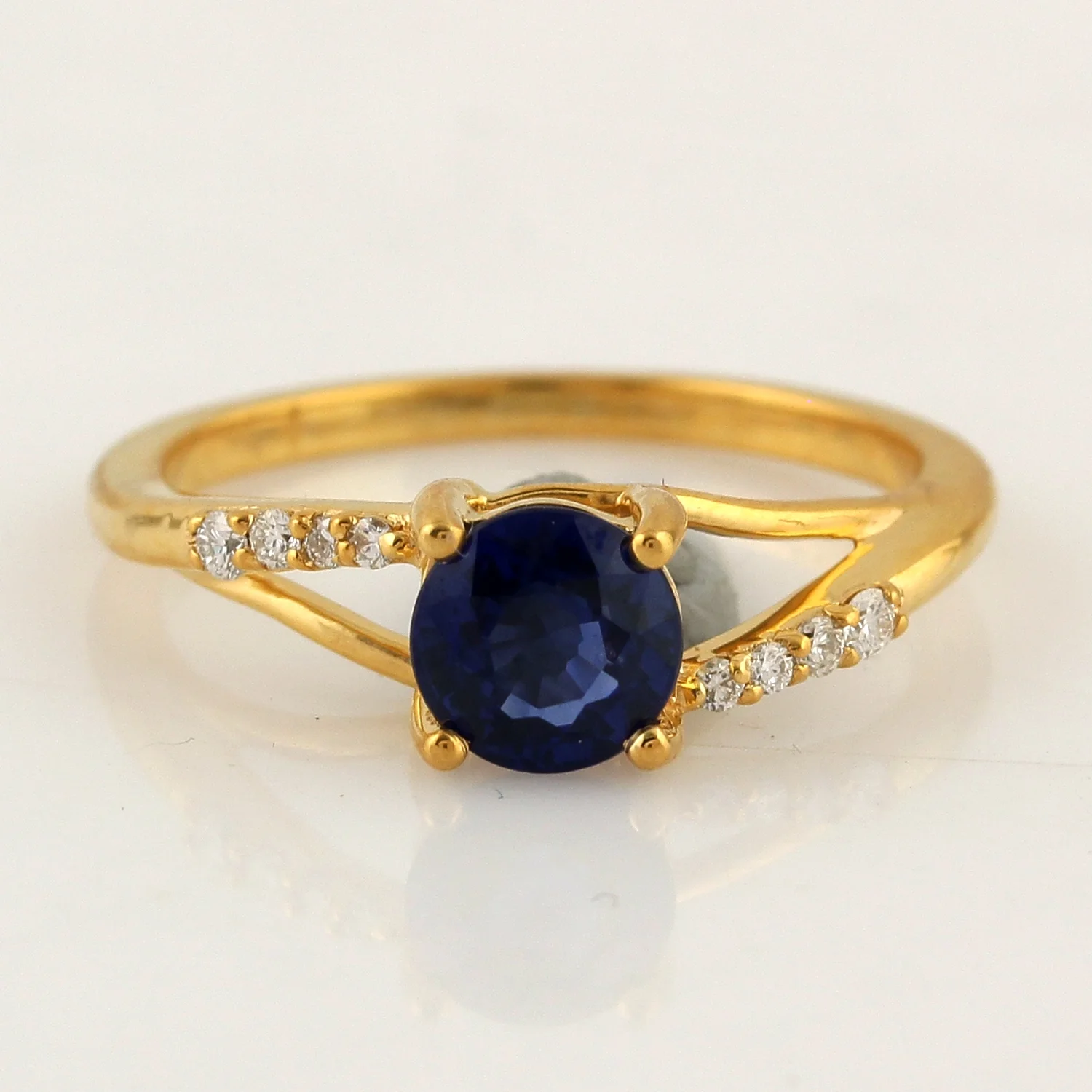 Harry Chad Enterprises 68837 Gemstone 2 CT Round Diamond Blue Sapphire Engagement Ring, Size 6.5