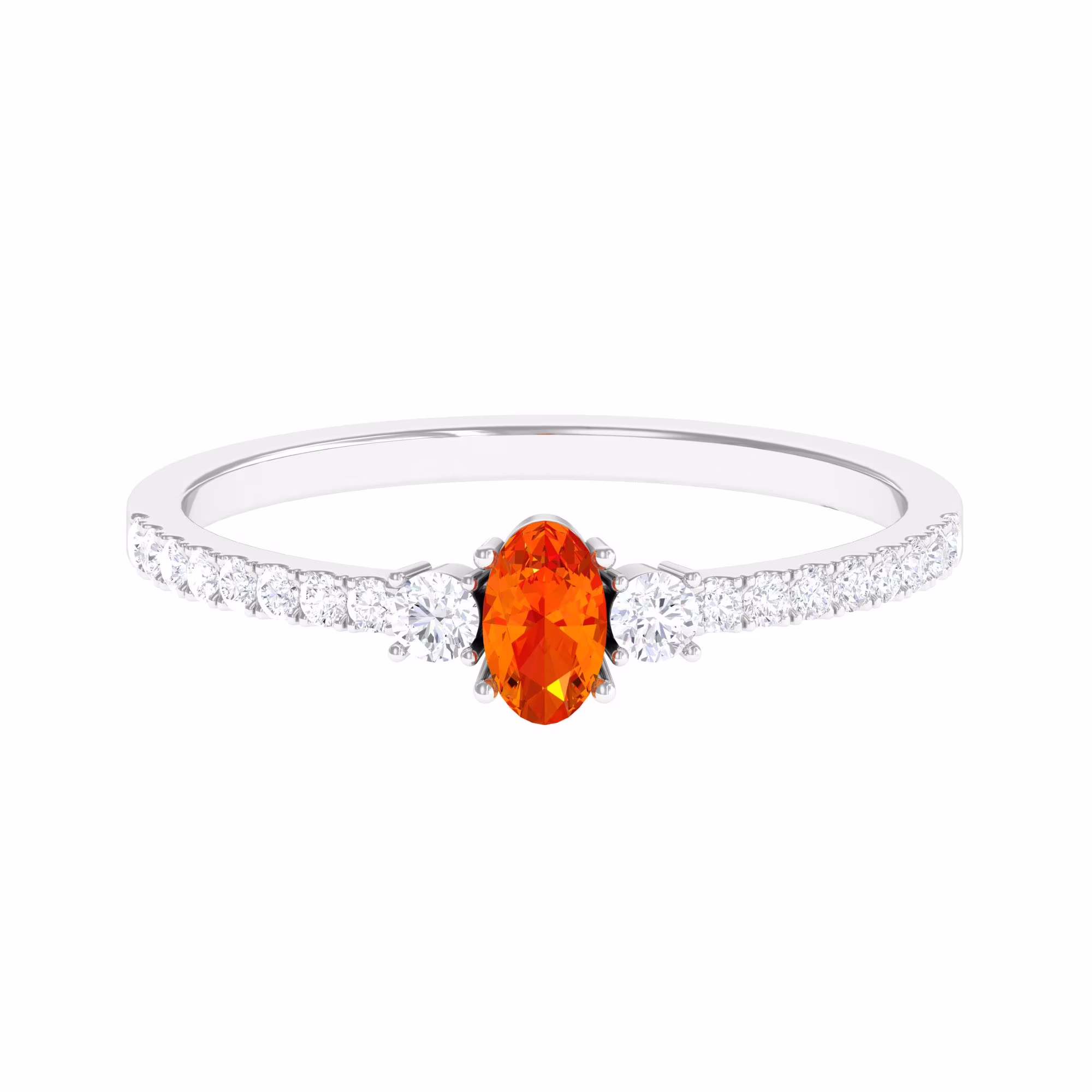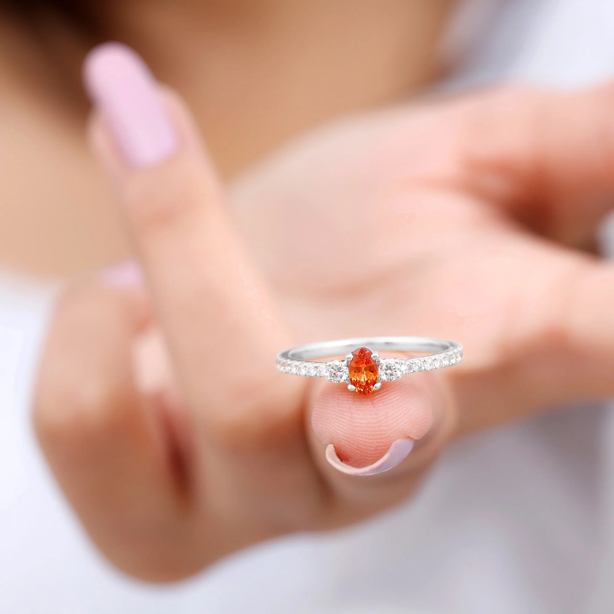 Oval Orange Sapphire Solitaire Ring with Diamond Side Stones (0.50 CT), 10K White Gold, US 3.00