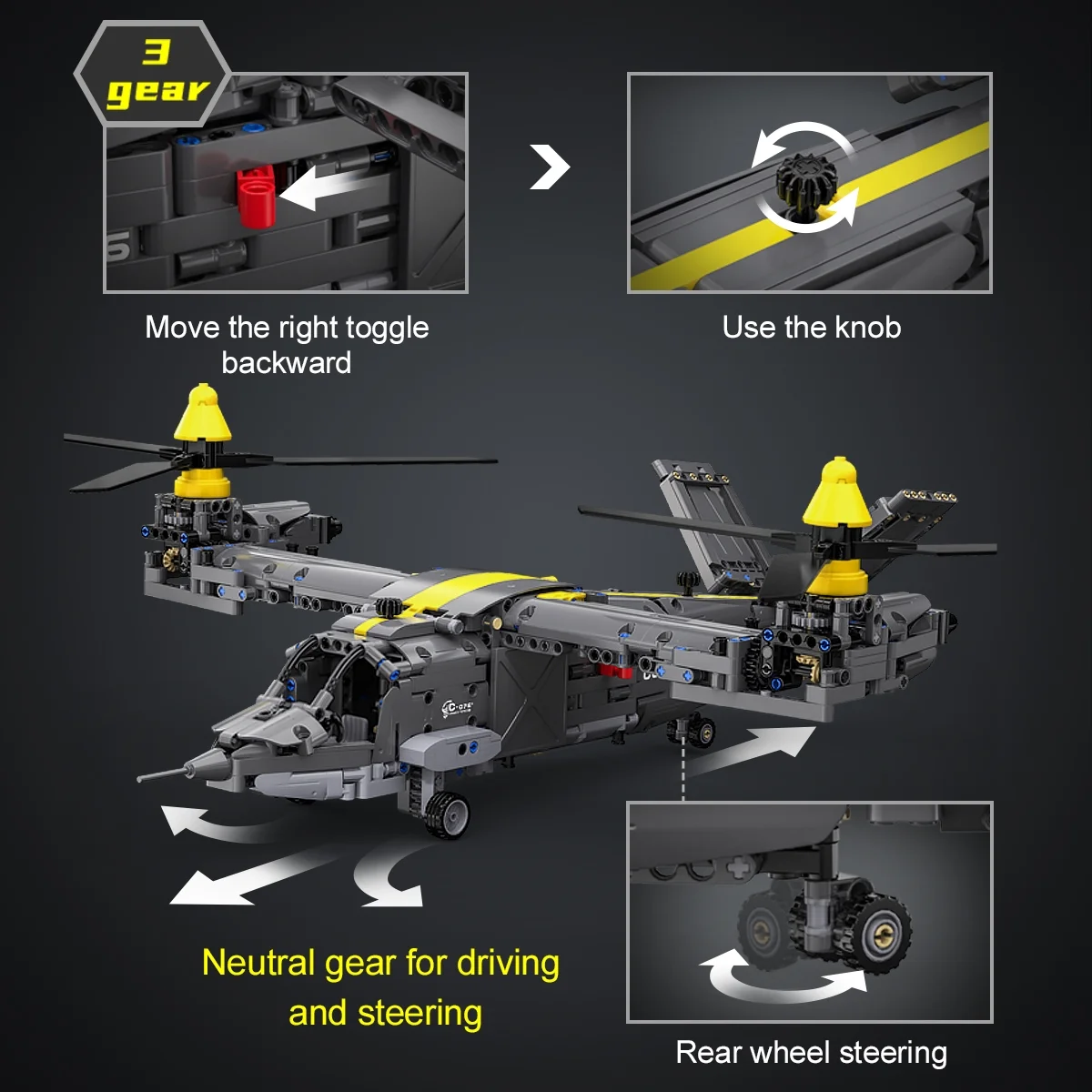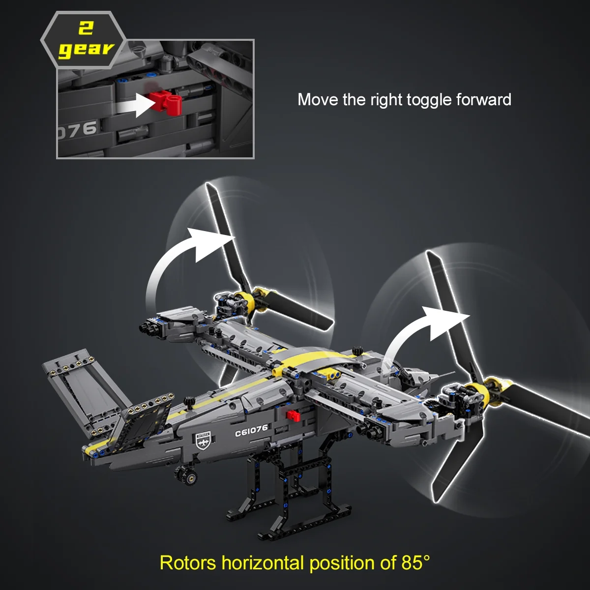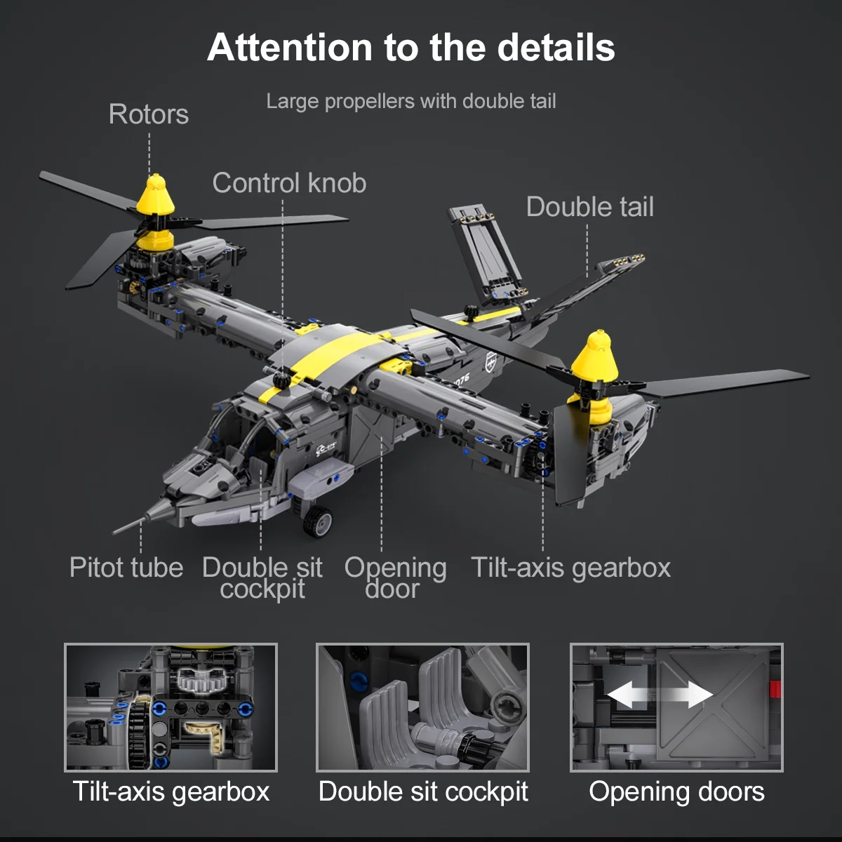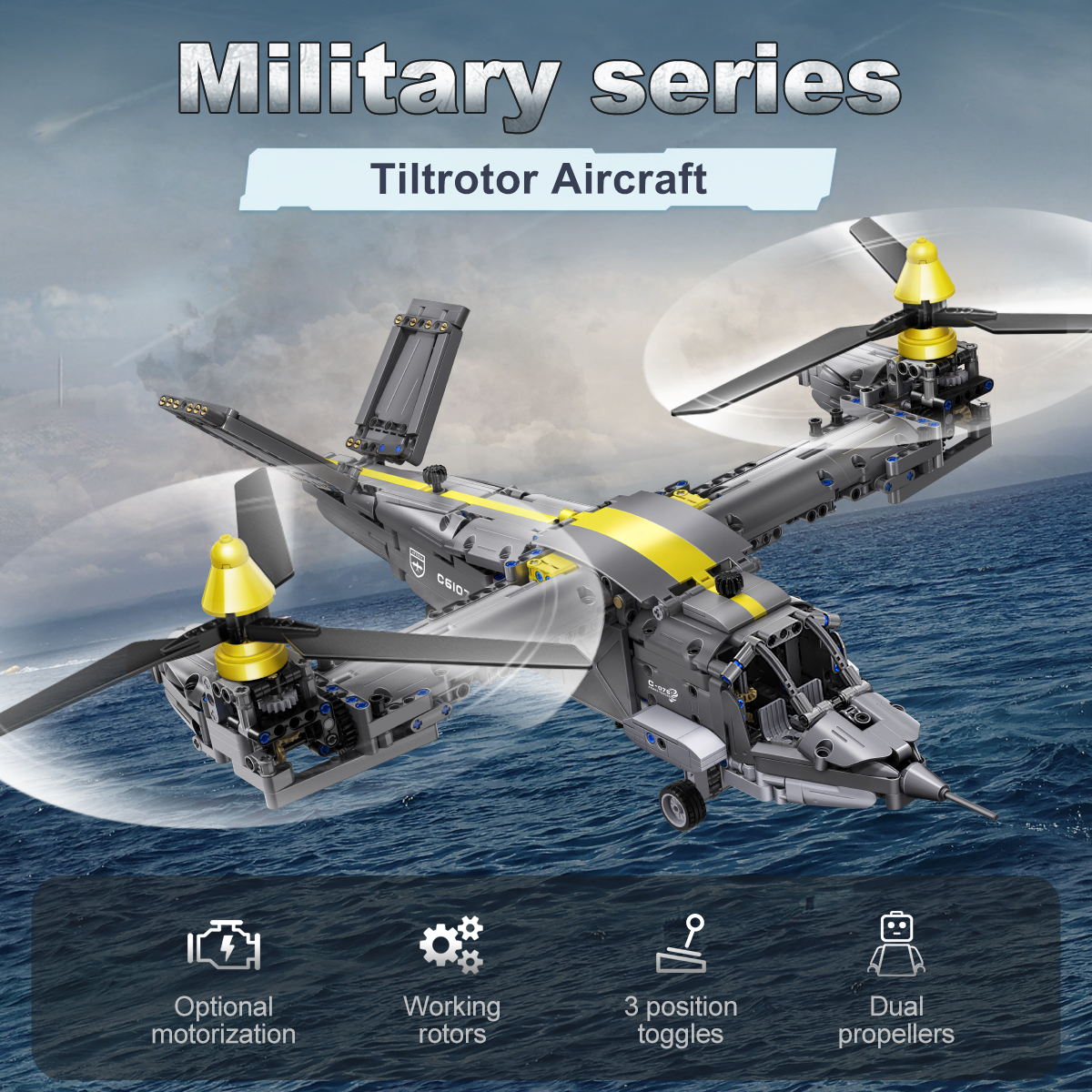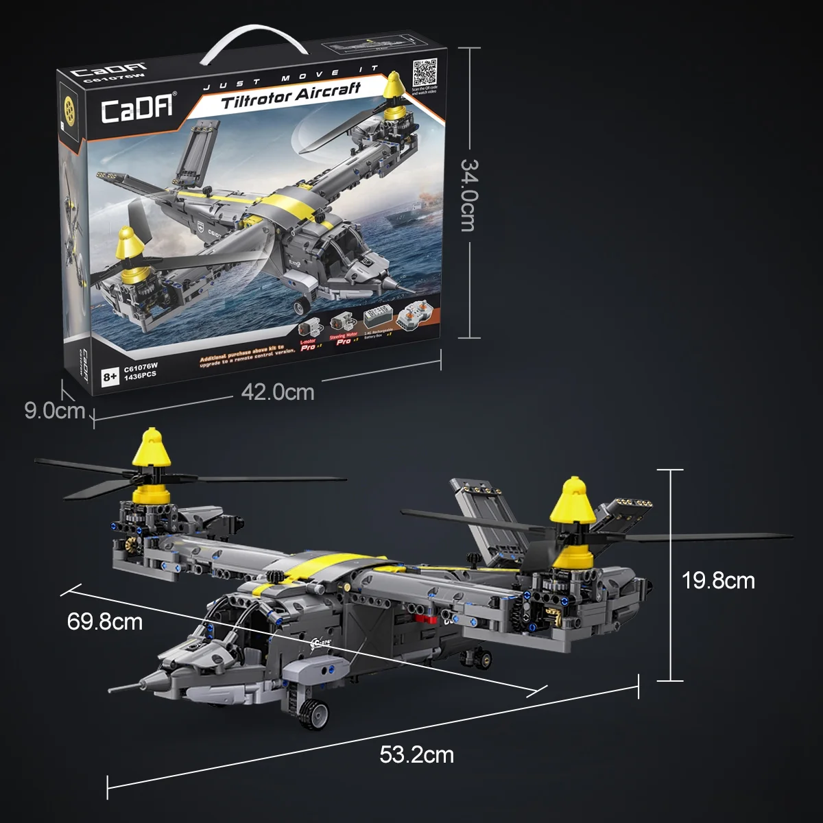 CaDA® Military Series Tiltrotor Aircraft Model Building Block Toy C61076W(1424Pieces)
