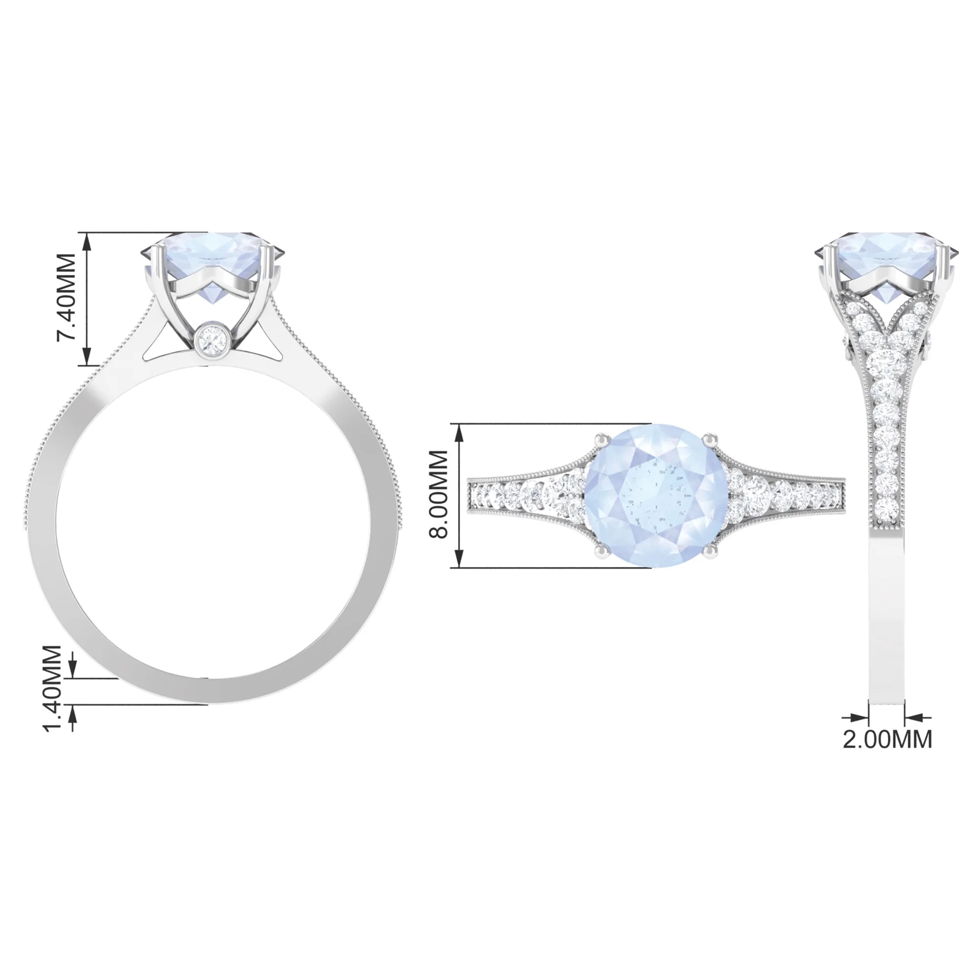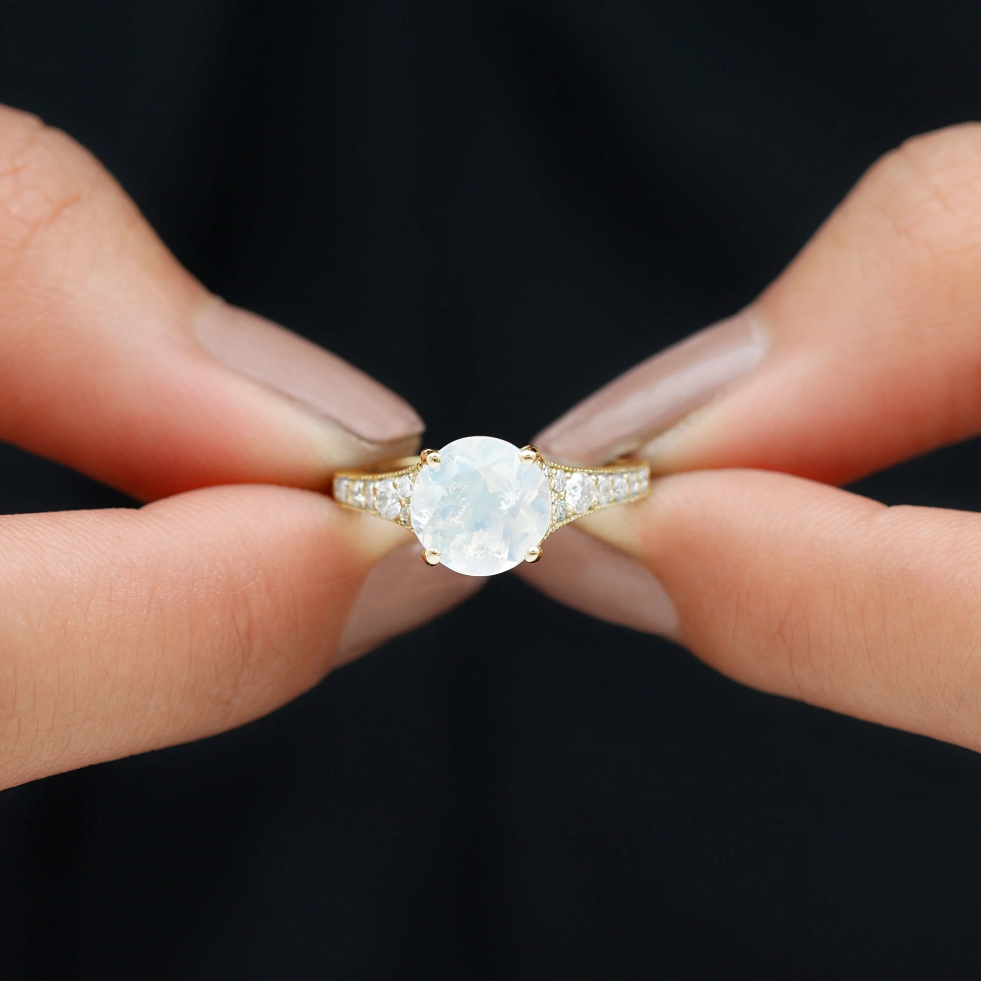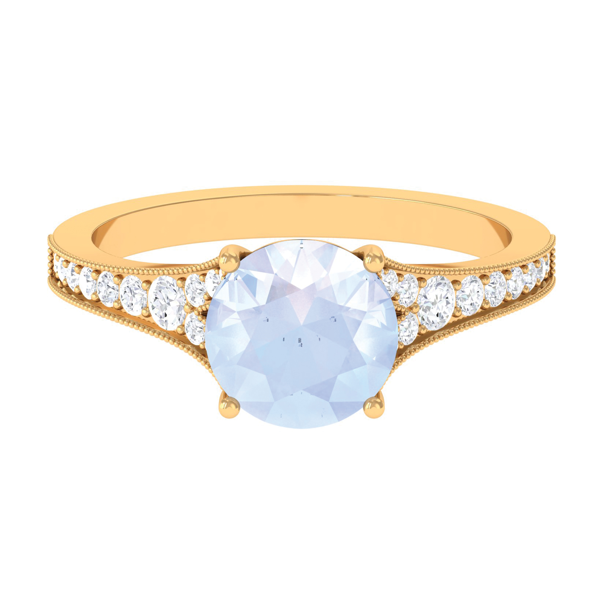 Moonstone Solitaire Ring with Diamond (8 mm) - Engagement Ring, 14K Yellow Gold, US 8.50
