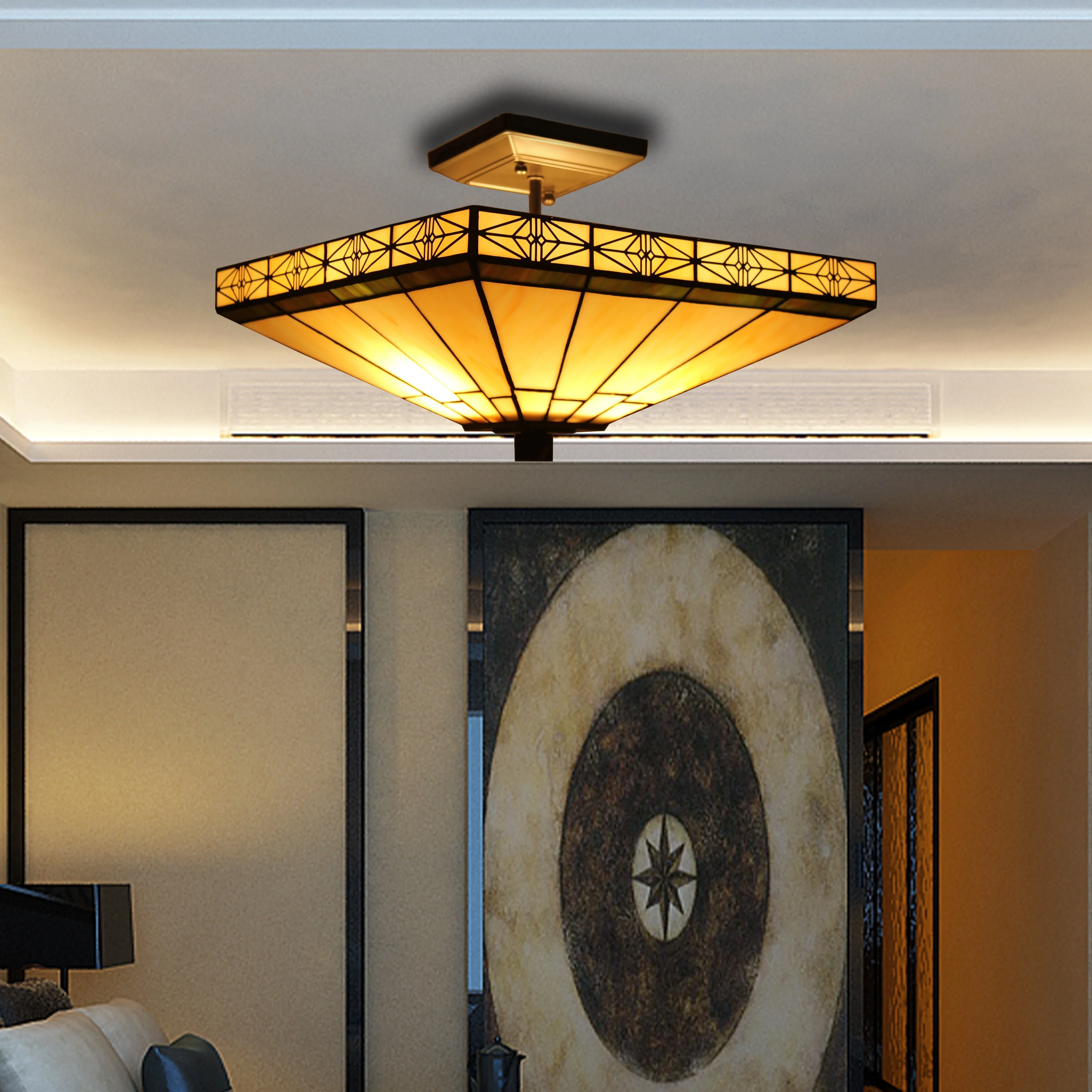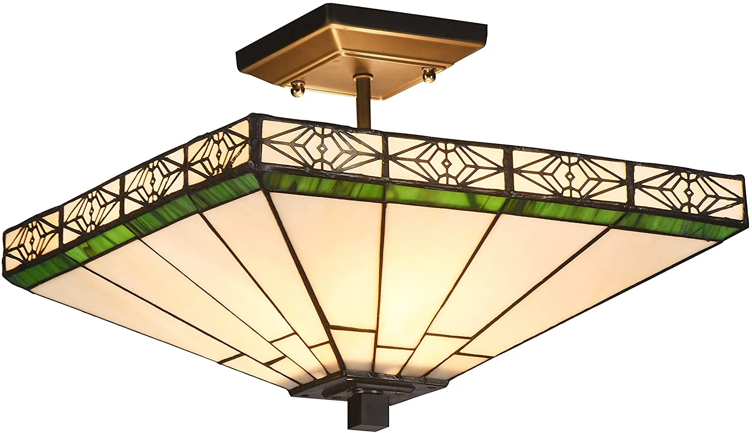 RADIANCE Goods Tiffany-Style 2 Light Mission Semi-Flush Ceiling Fixture 14" Shade