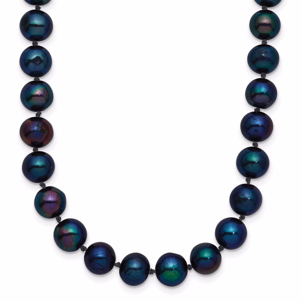 Primal Silver Sterling Silver Rhodium Plated 4-5mm Black Freshwater Cultured Pearl Necklace