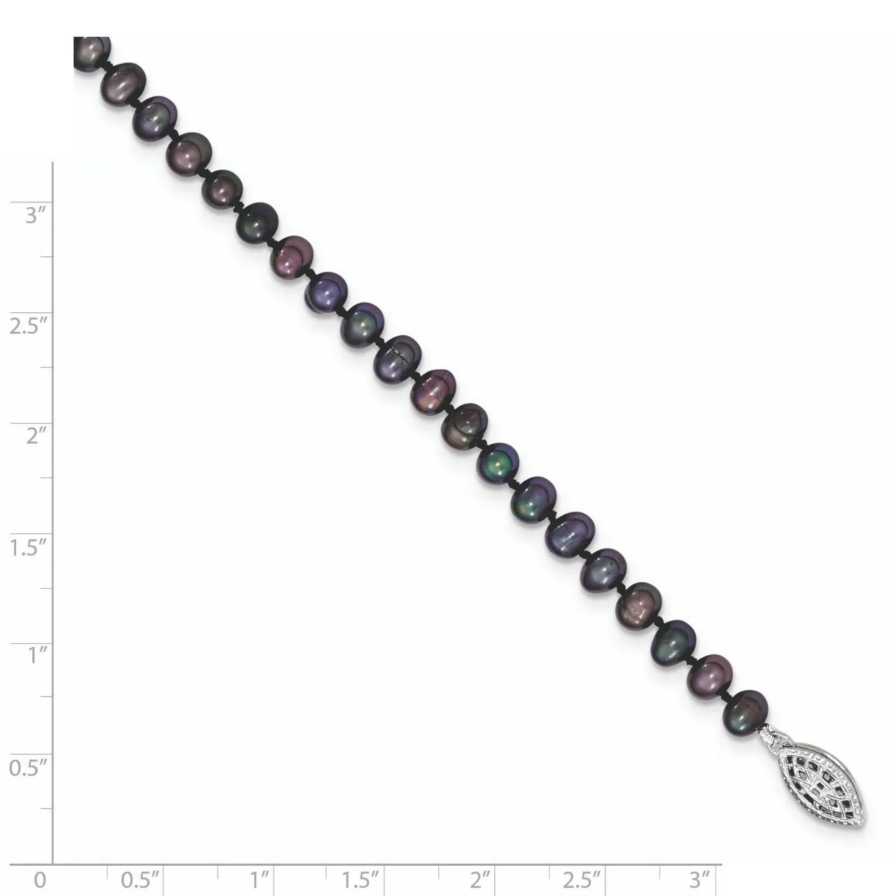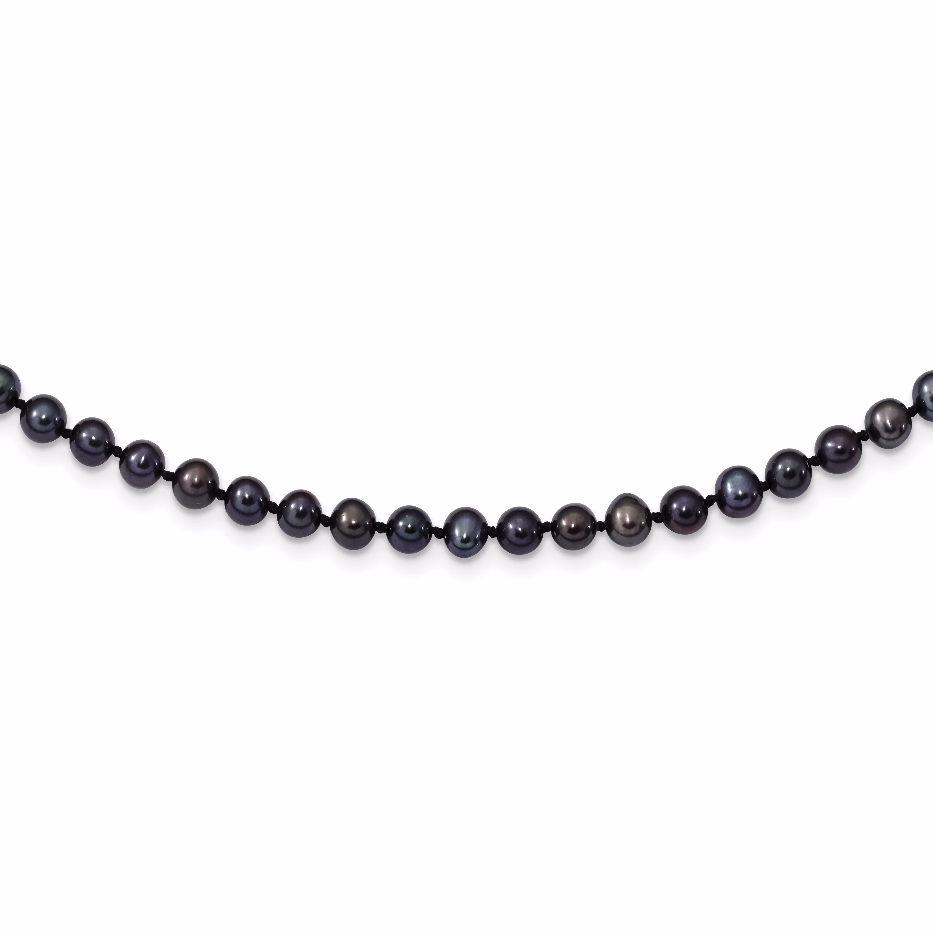 Sterling Silver Rhod-plated 7-8mm Black FW Cultured Pearl Necklace QQH5155-18