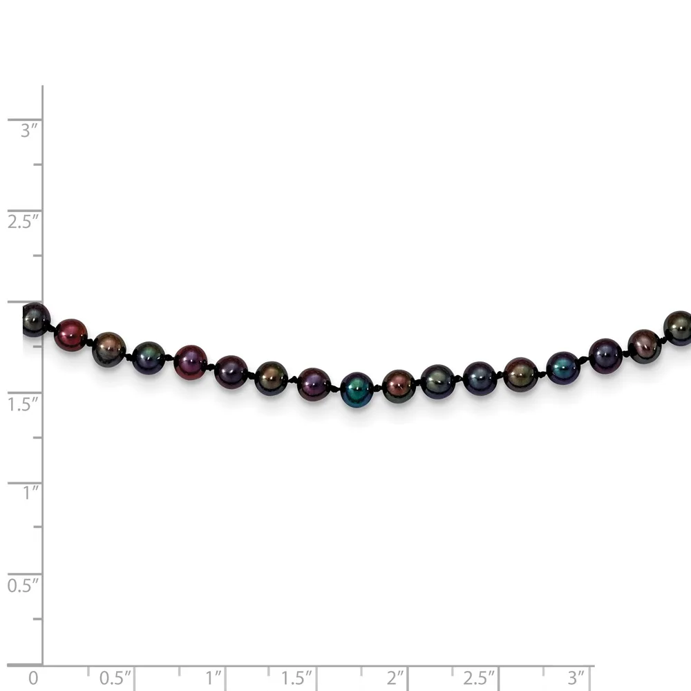 14K Yellow Gold Pearl Chain Necklace 6-7 mm Black Near Round Freshwater Cultured 16 inch 6.5
