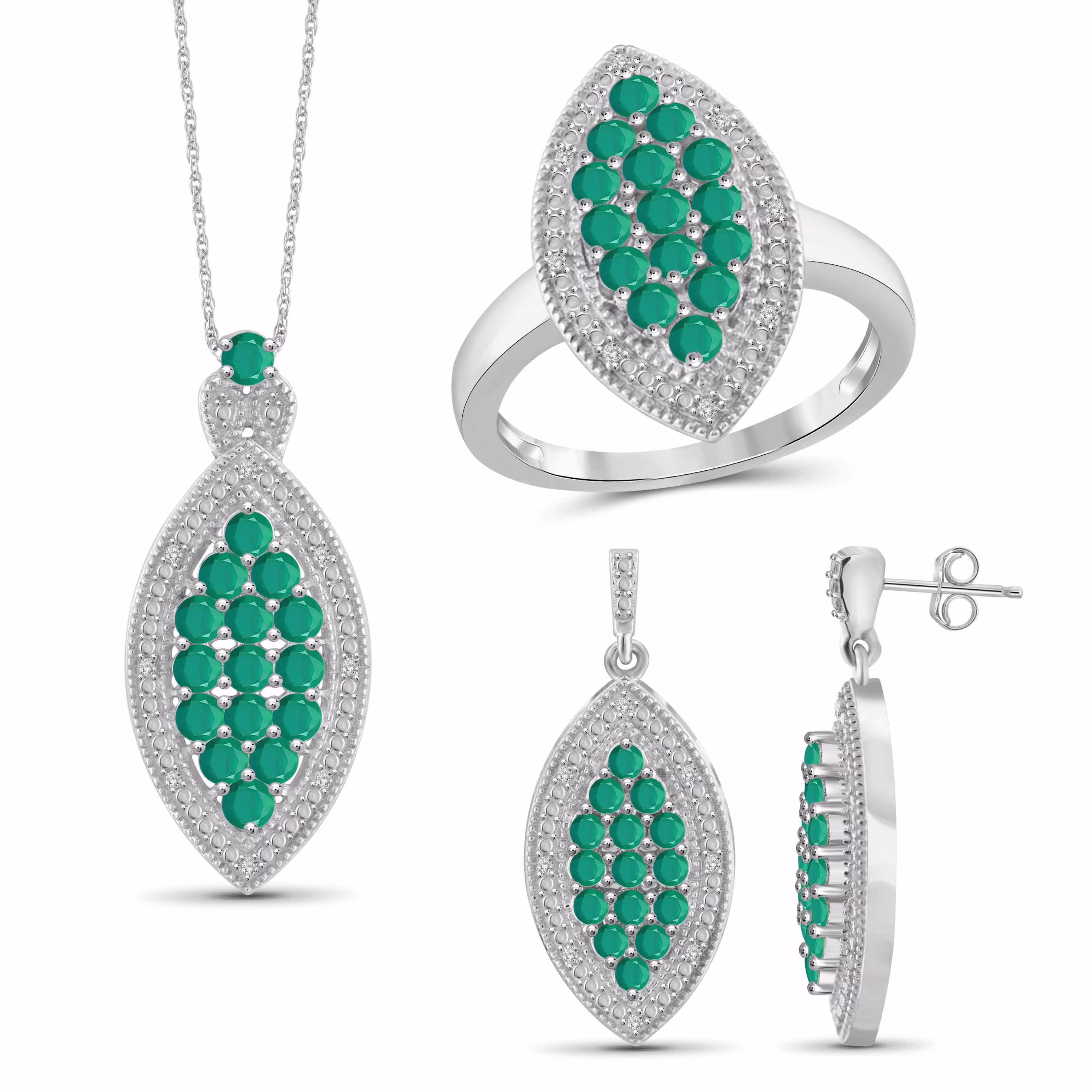 4.00 Carat T.G.W. Emerald And White Diamond Accent Sterling Silver 3-Piece Marquise Jewelry Set