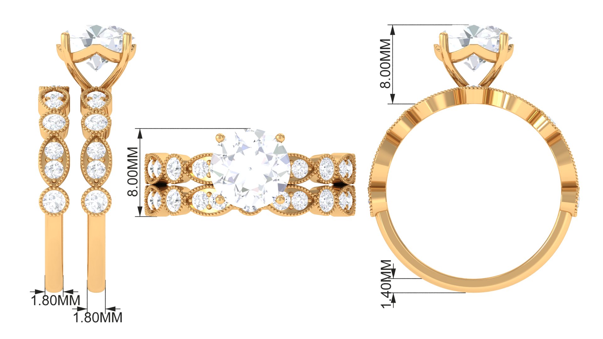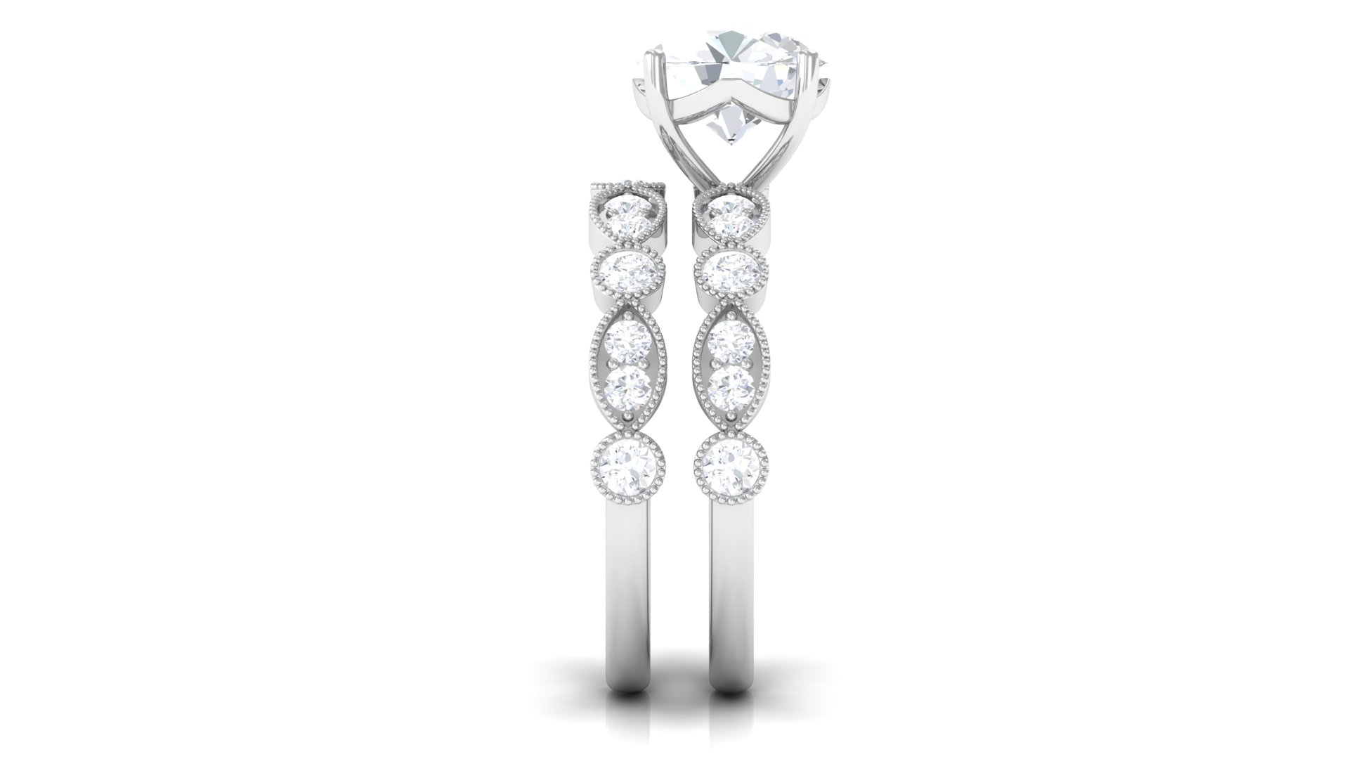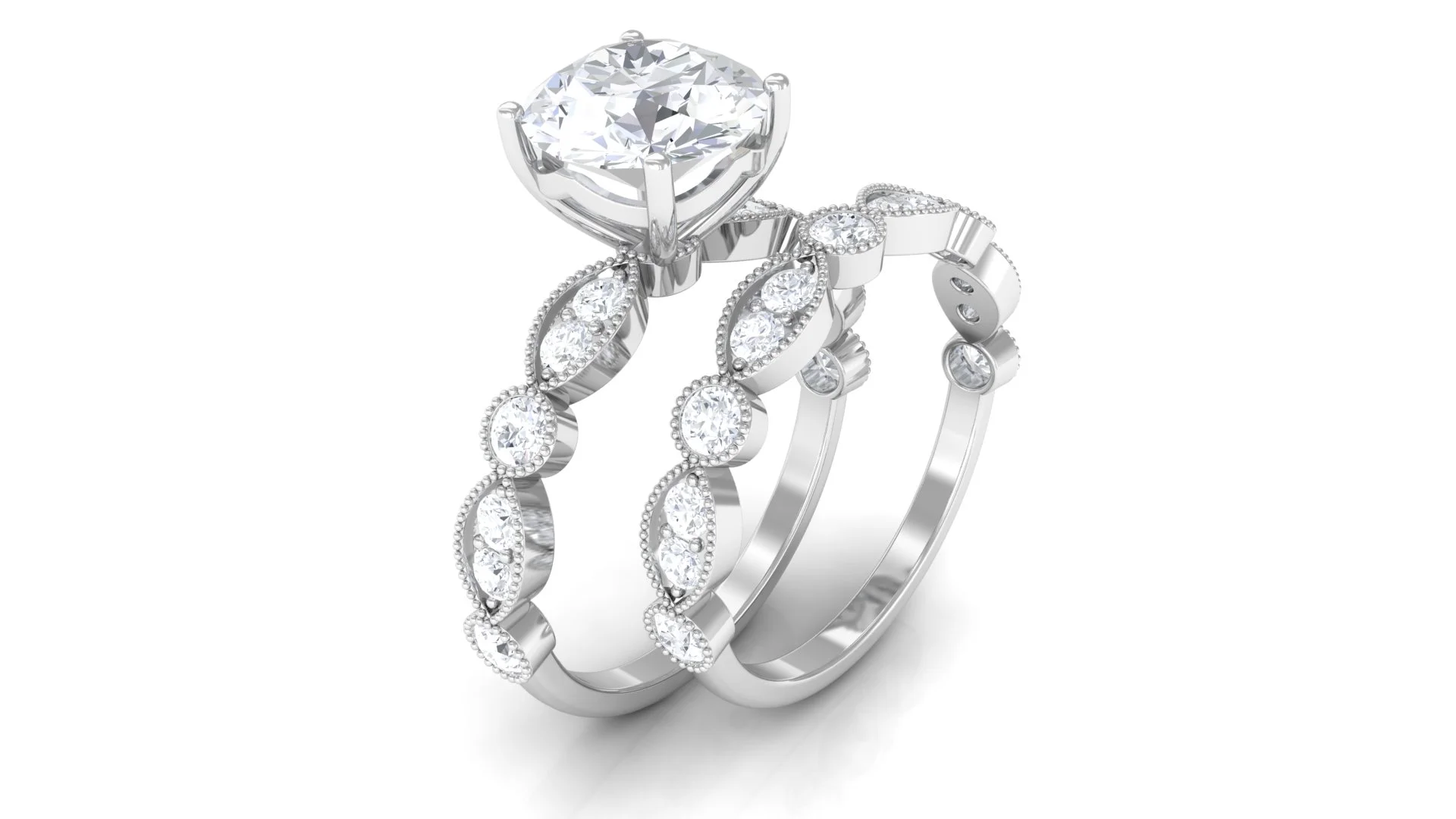 Wedding Ring Set with Cubic Zirconia for Women - 4 Carat - AAAA Quality, 14K White Gold, US 5.00