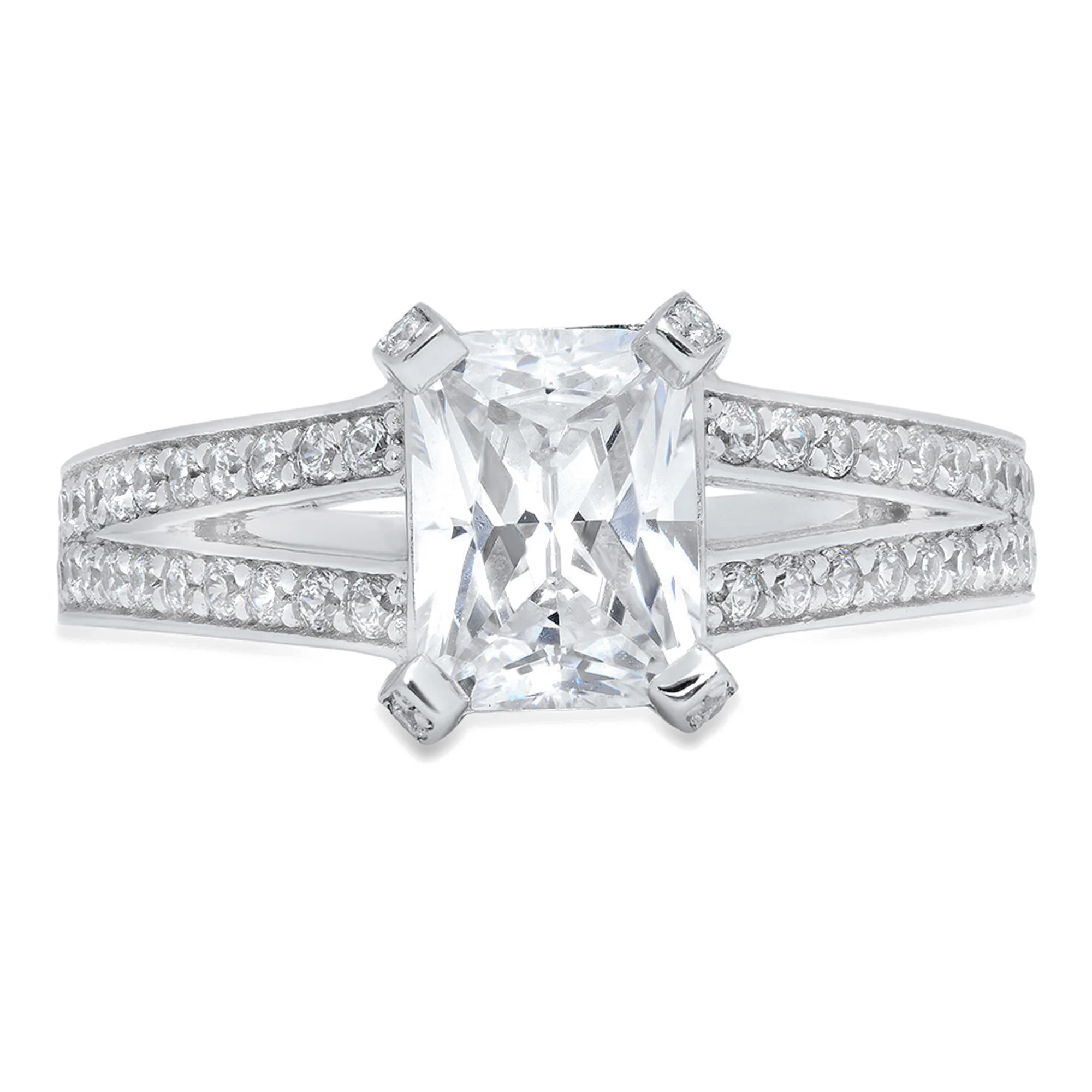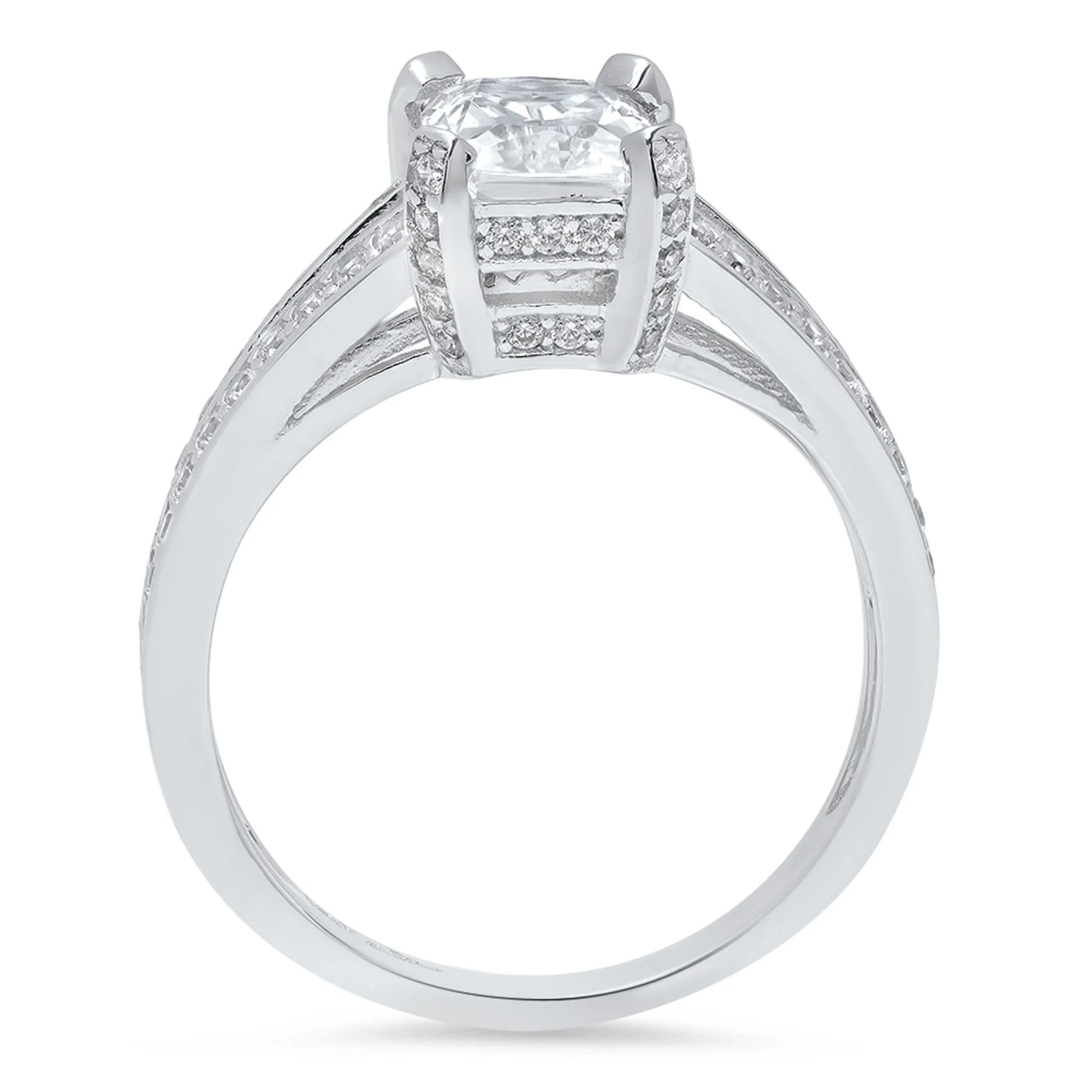 0.65 Carat F-VS1 Emerald Cut Diamond Engagement Ring 14k White Gold Pave Halo