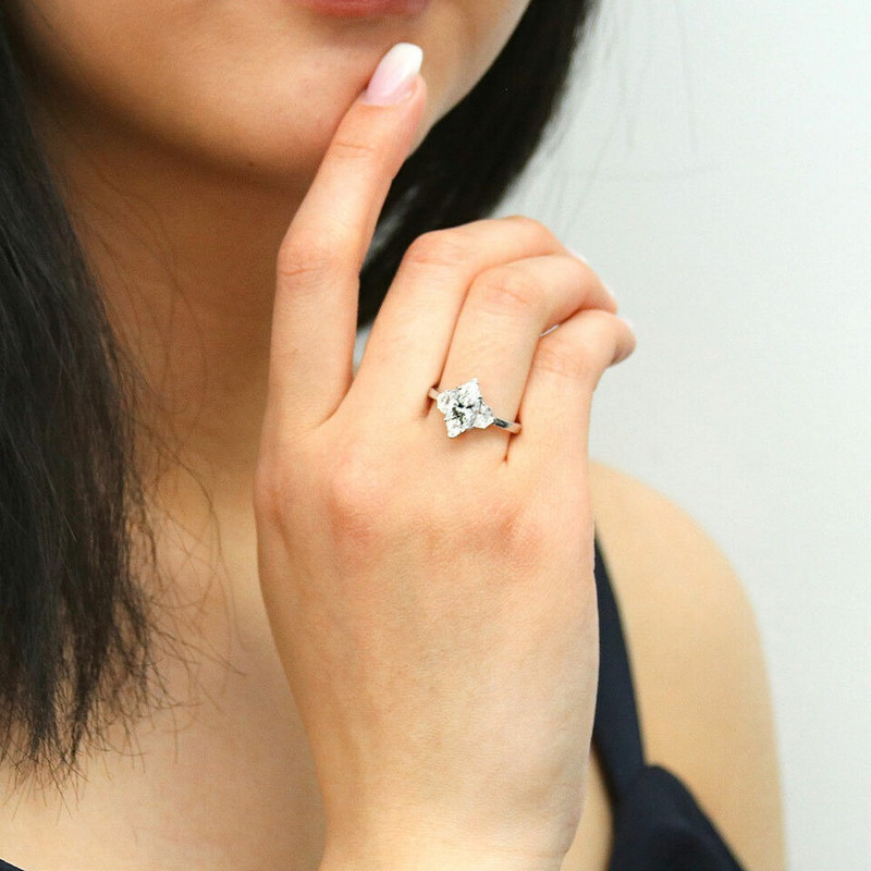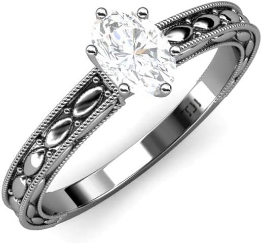 Oval White Sapphire Marquise Design Women Solitaire Engagement Ring 14K White Gold.size 7.75