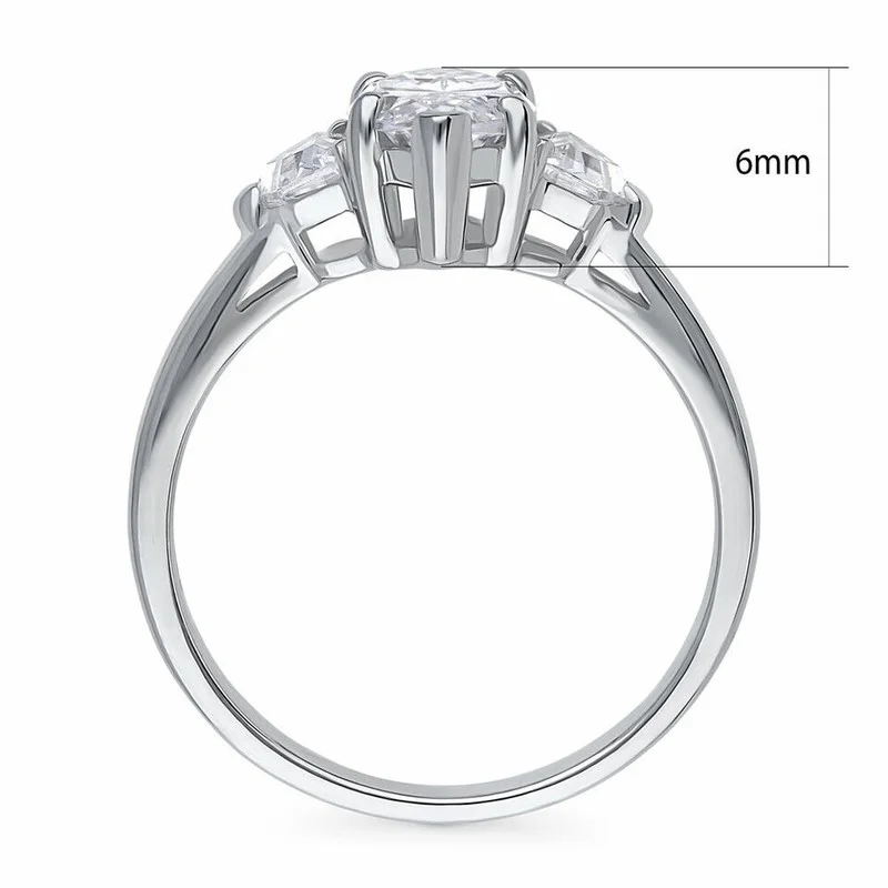 Women's Solid Sterling Silver Round Diamond Marquise Bridal Wedding Engagement Ring 1/4 Cttw Ring Size 7