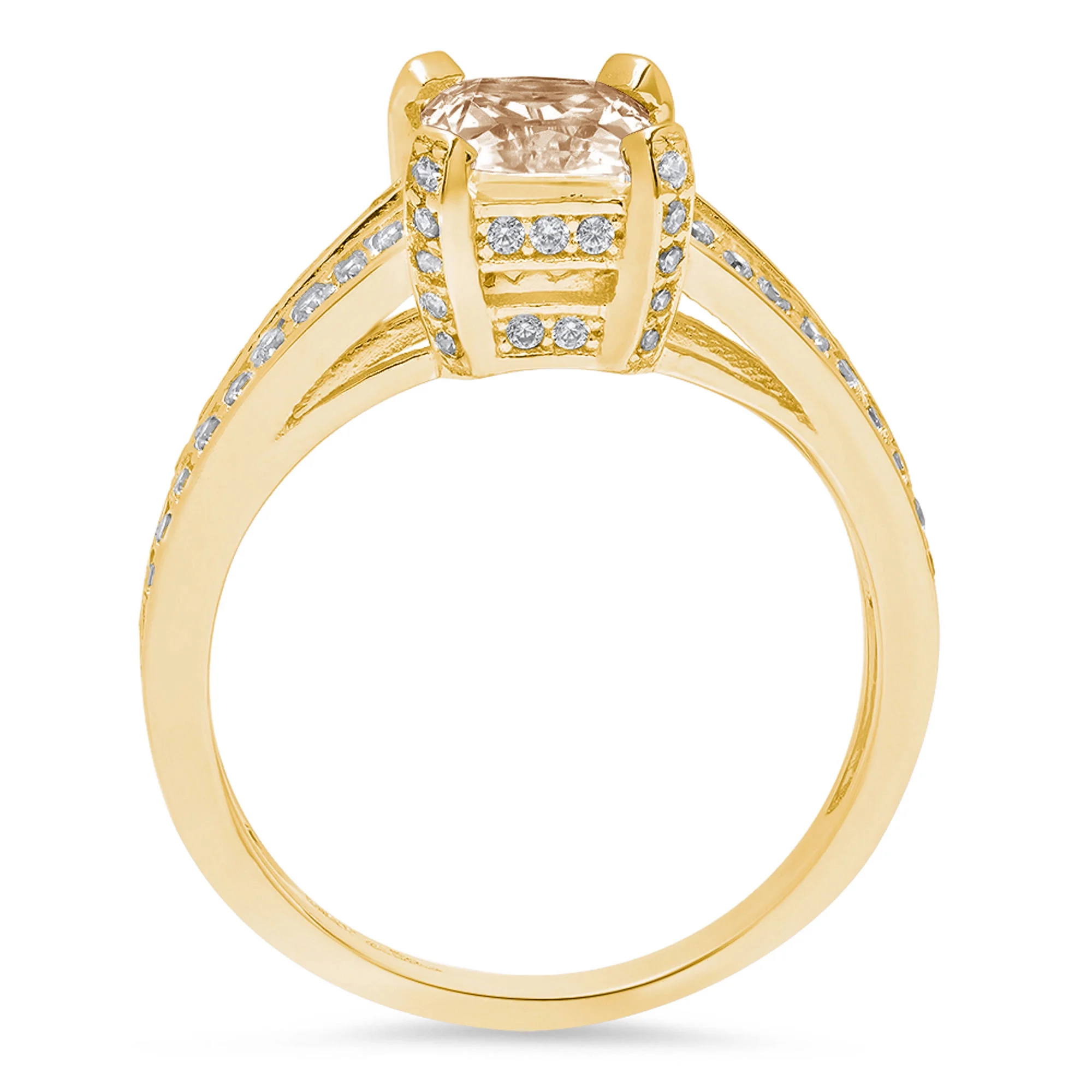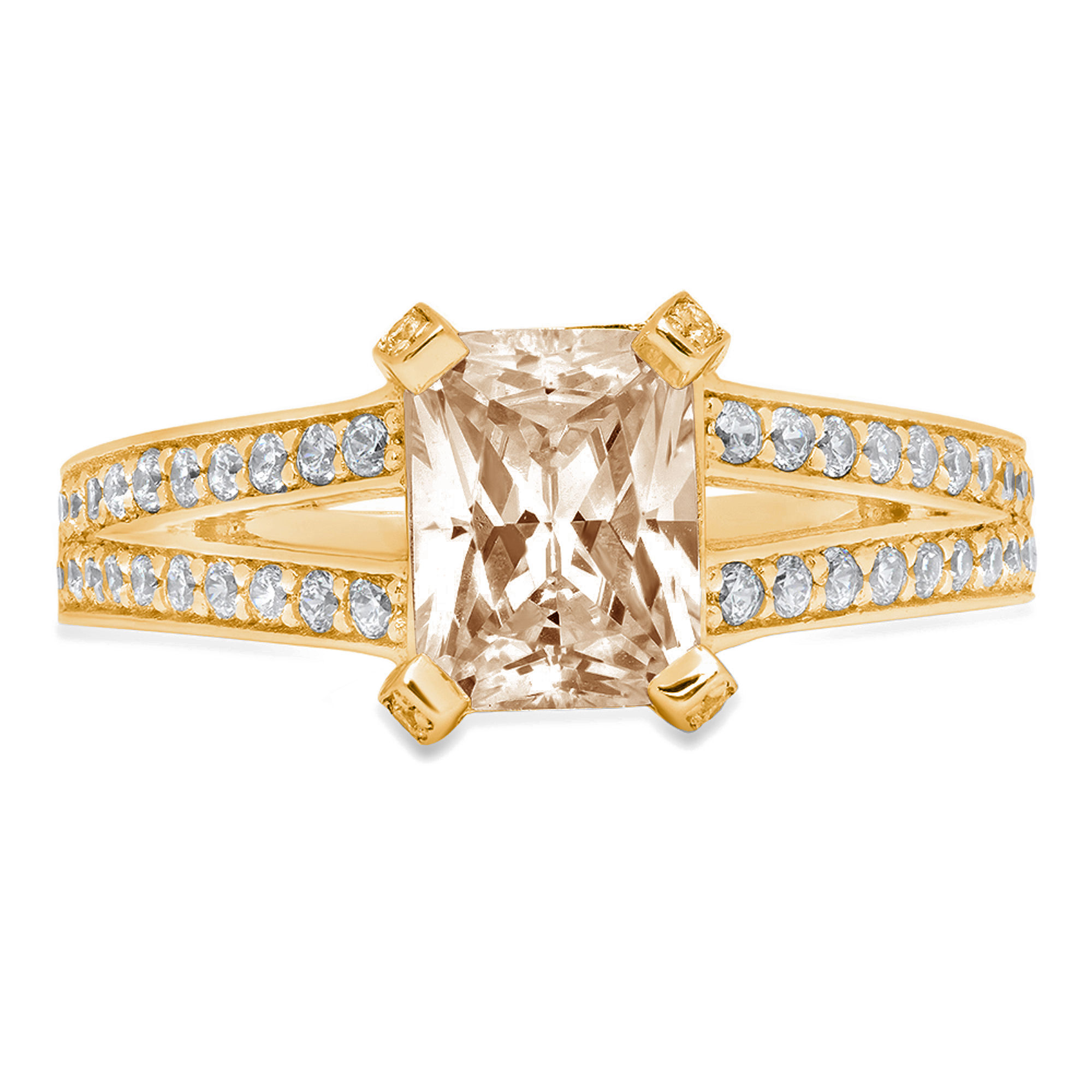 2.45ct emerald cut champagne simulated diamond 18k yellow gold anniversary engagement ring size 6