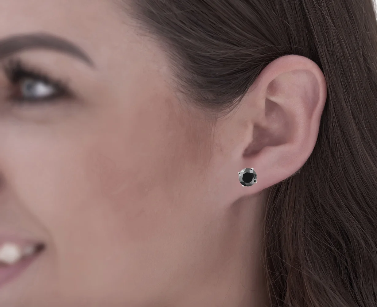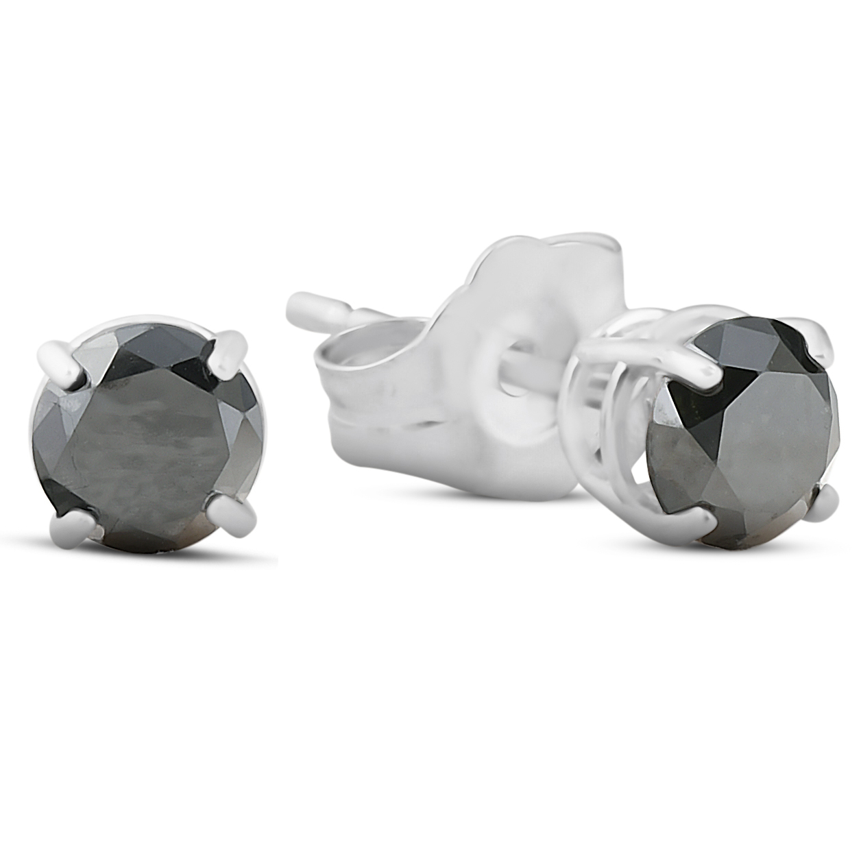Pompeii3 1.25CT Round Brilliant Cut Black Diamond Stud Earrings In 14K Gold