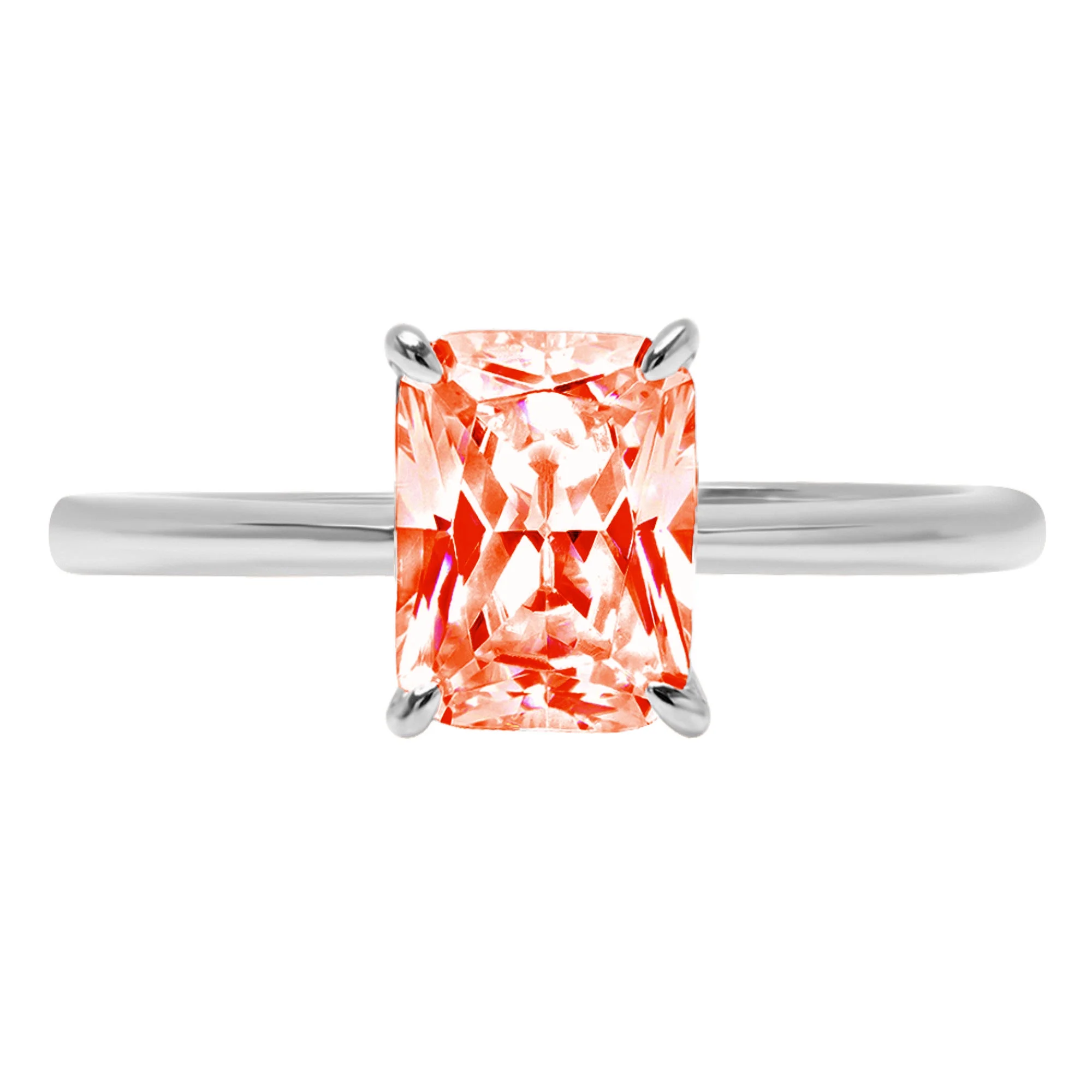 2.5 ct Brilliant Radiant Cut Clear Simulated Diamond 18K White Gold Solitaire Ring SZ 6.75