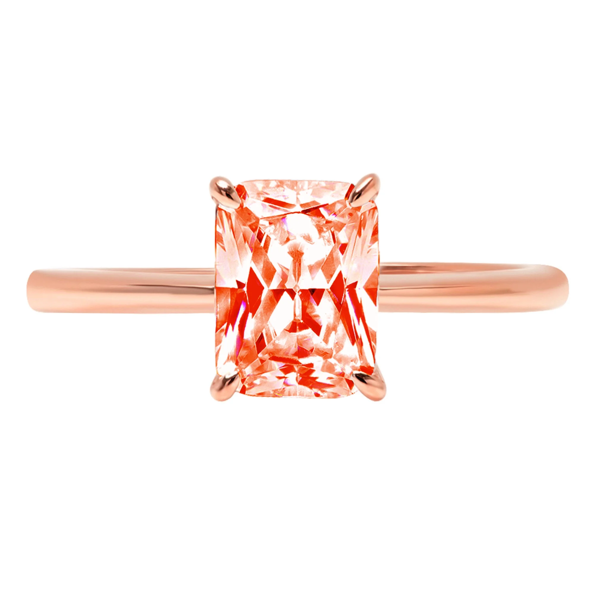 1.0 ct Brilliant Radiant Cut Clear Simulated Diamond 18K Rose Gold Solitaire Ring SZ 6.75