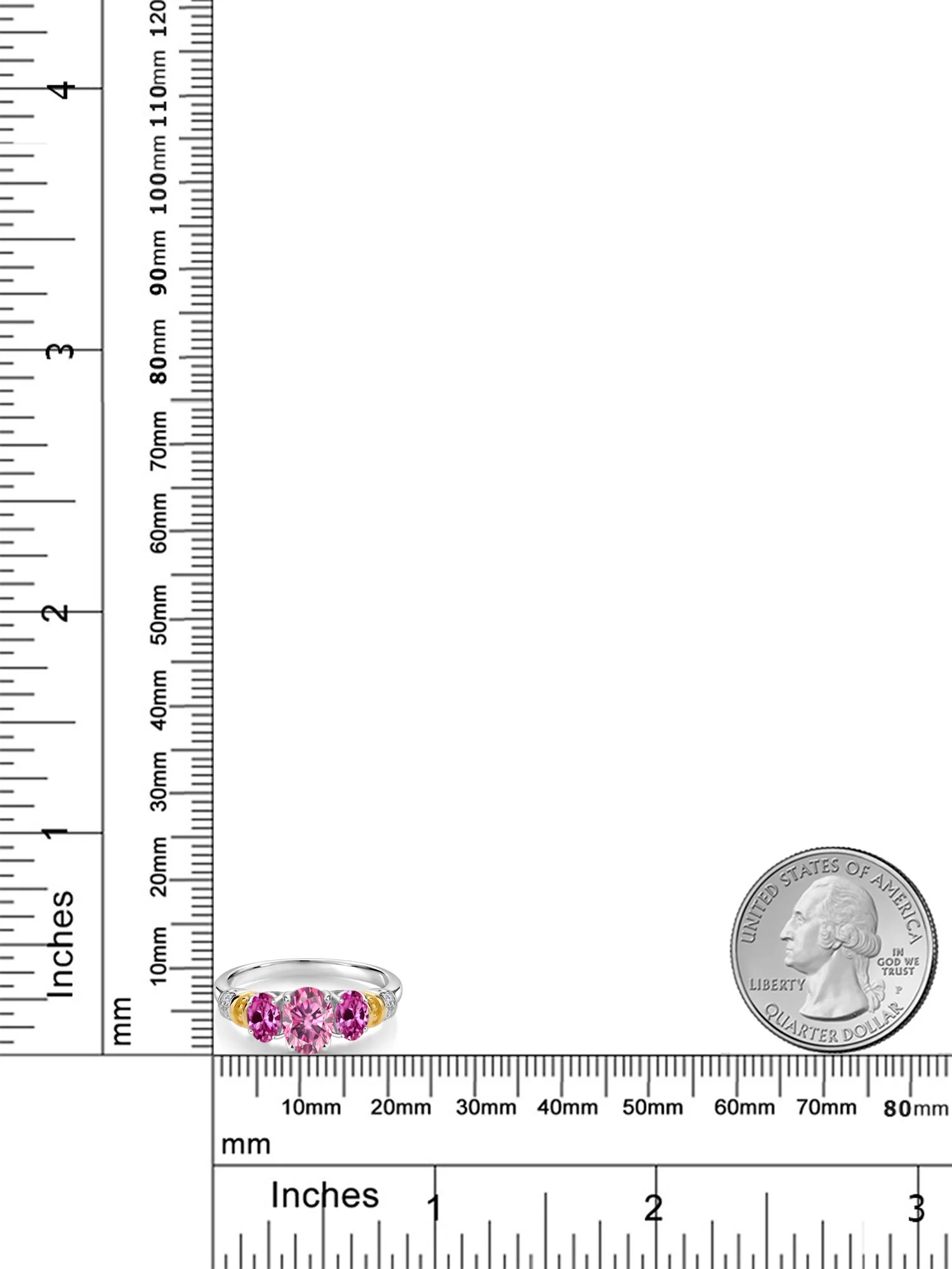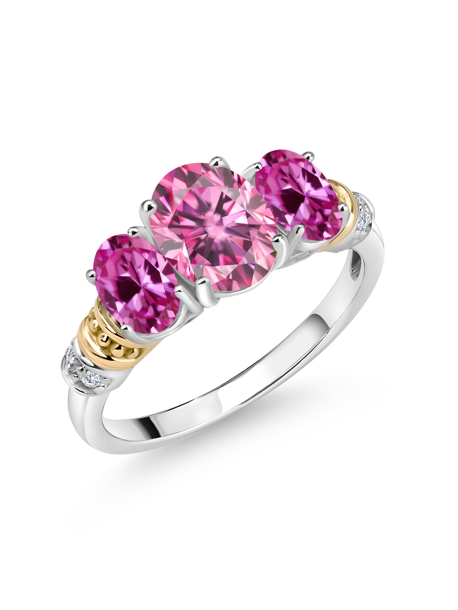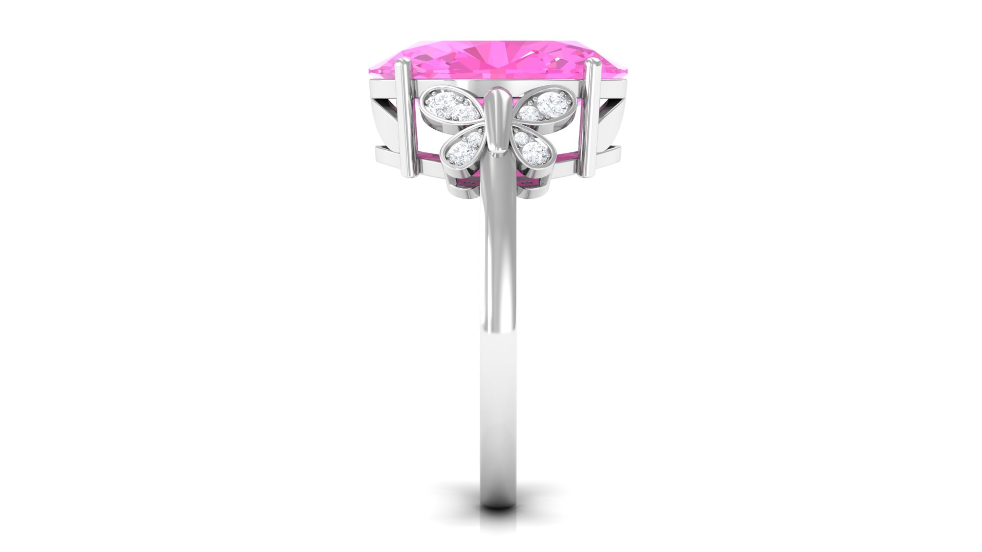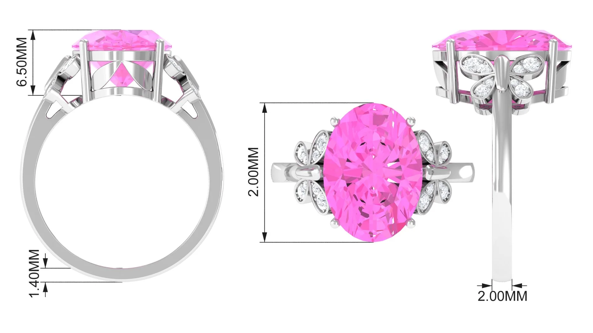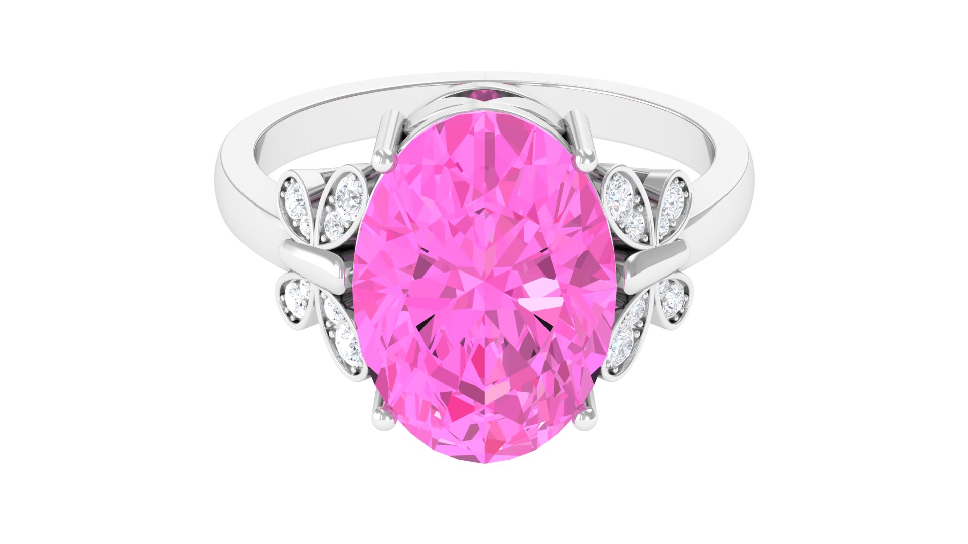 Oval Created Pink Sapphire Solitaire Ring with Diamond for Women - 10X14 mm, 925 Sterling Silver, US 4.00