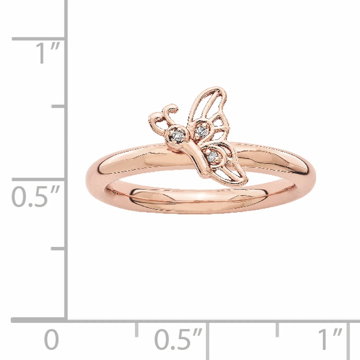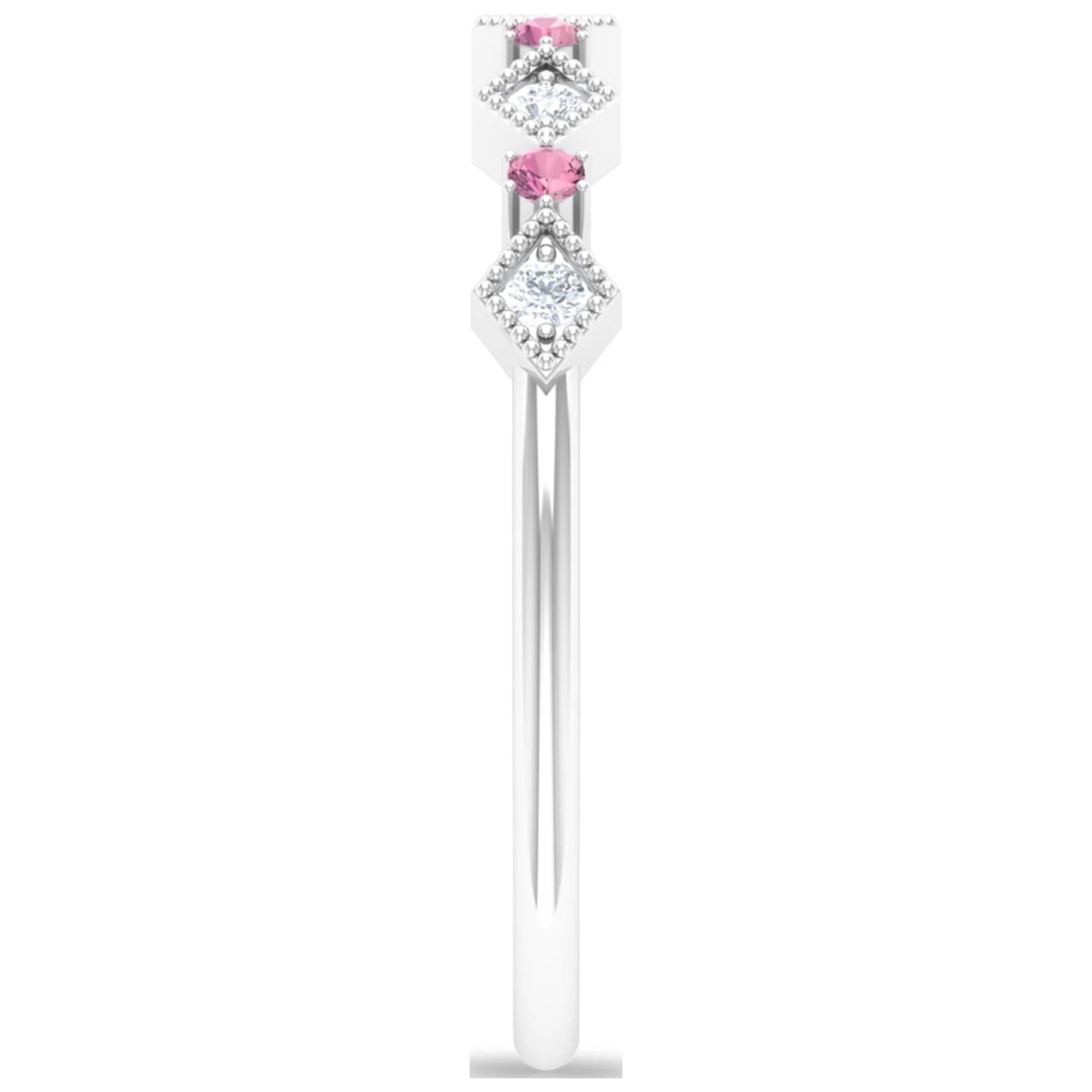 Pink Tourmaline and Diamond Stackable Band Ring in Geometric Design, 925 Sterling Silver, US 4.00