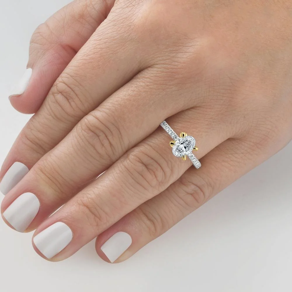 Pompeii3 1 1/2Ct Oval Diamond Accents Engagement Ring White Yellow or Rose Gold Lab Grown