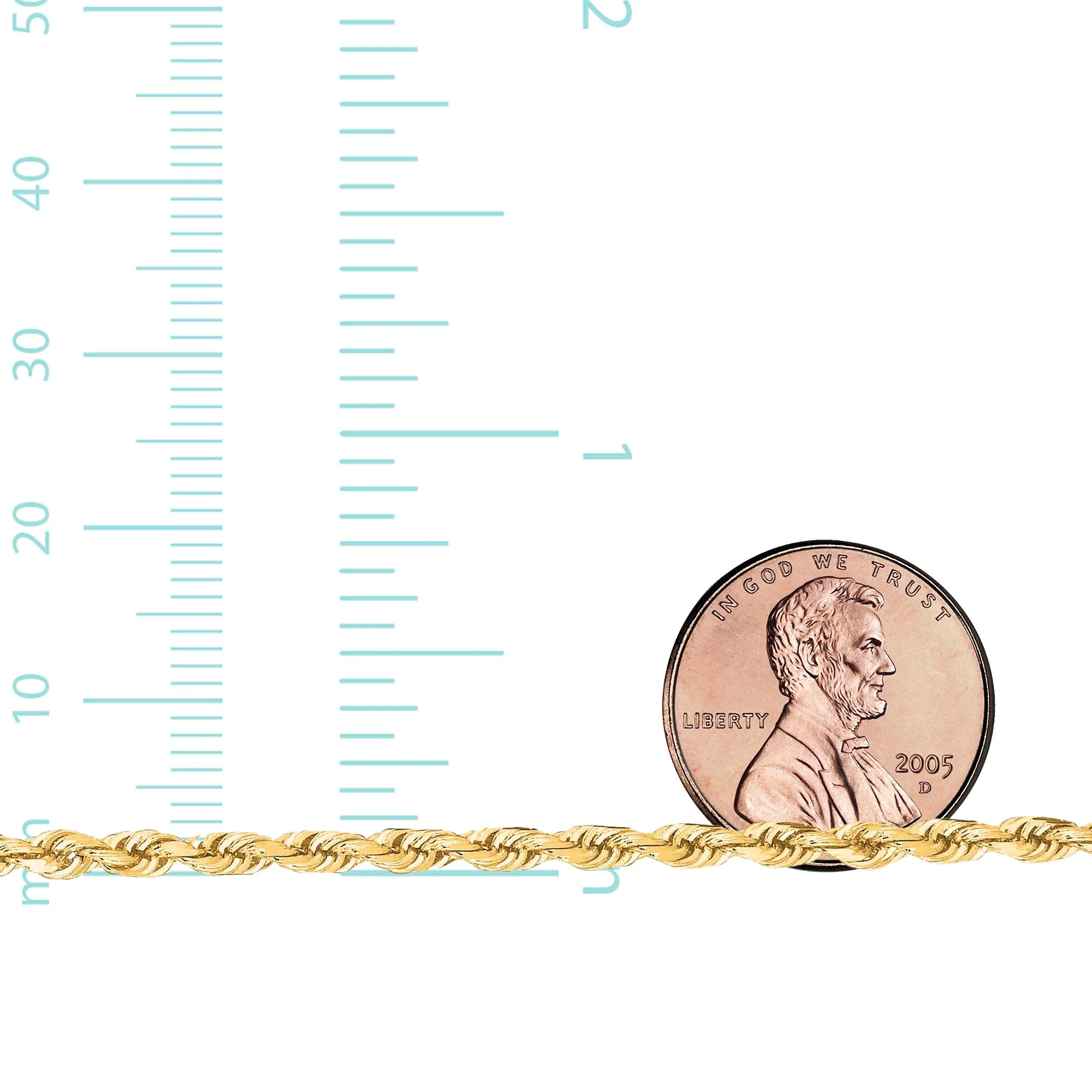 10k Solid Yellow Gold 2 mm Diamond-cut Rope Chain, Lobster Claw Clasp - 22 Inches, 8.2gr.