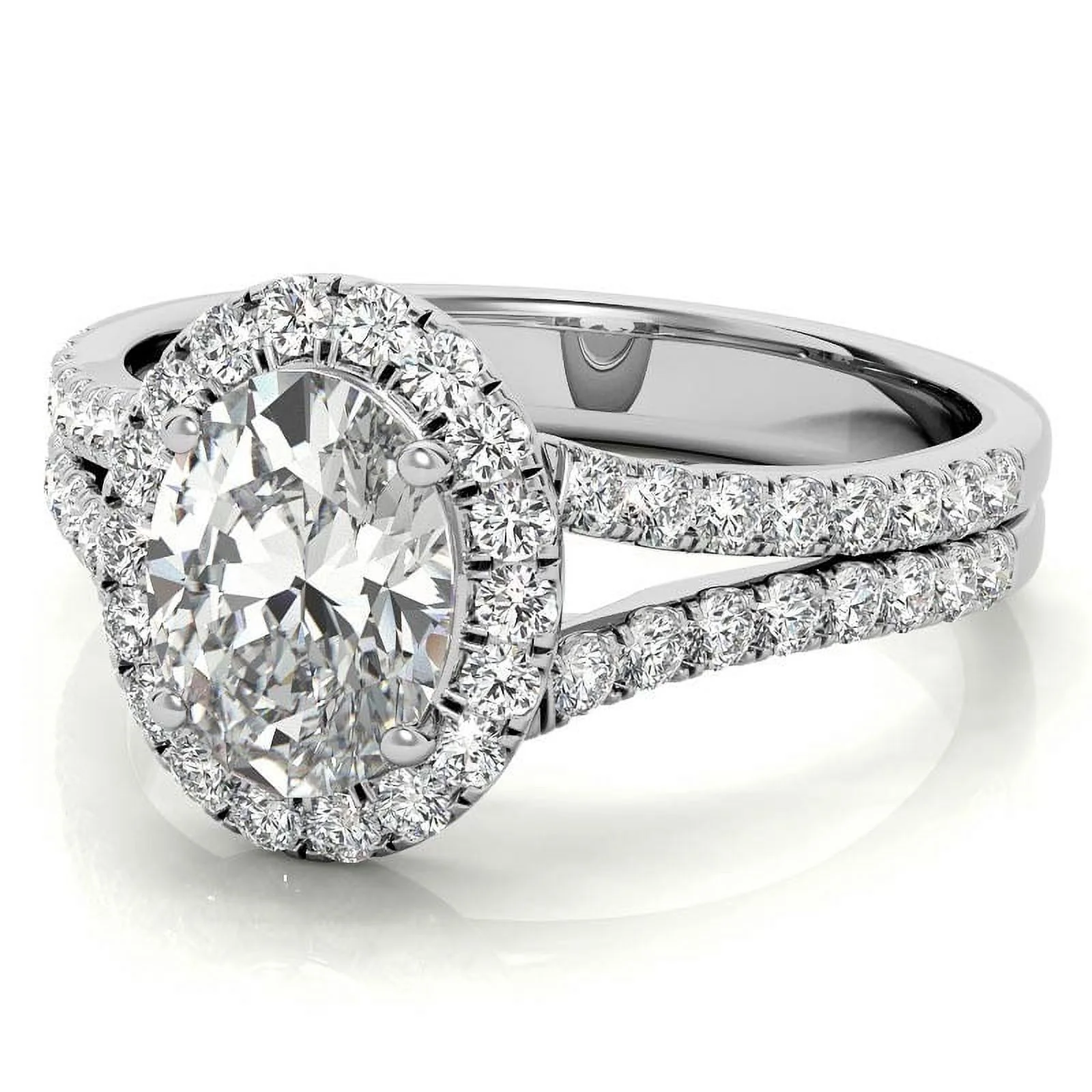 SOLITAIRE JEWELS 1Ct Oval Halo Split Shank Moissanite 925 Silver Sterling, Engagement Ring For Gift