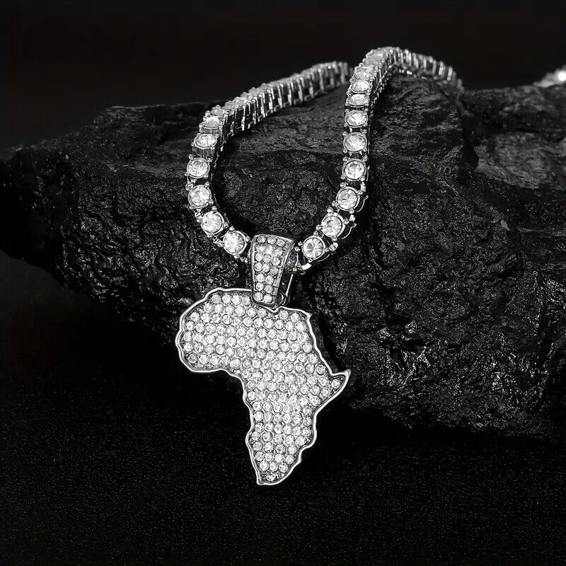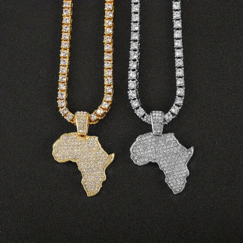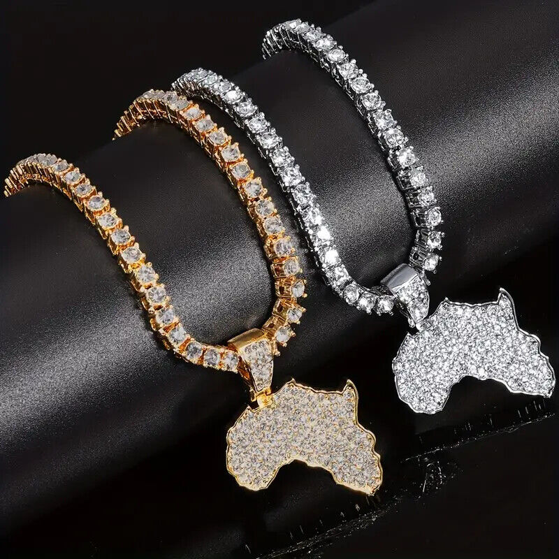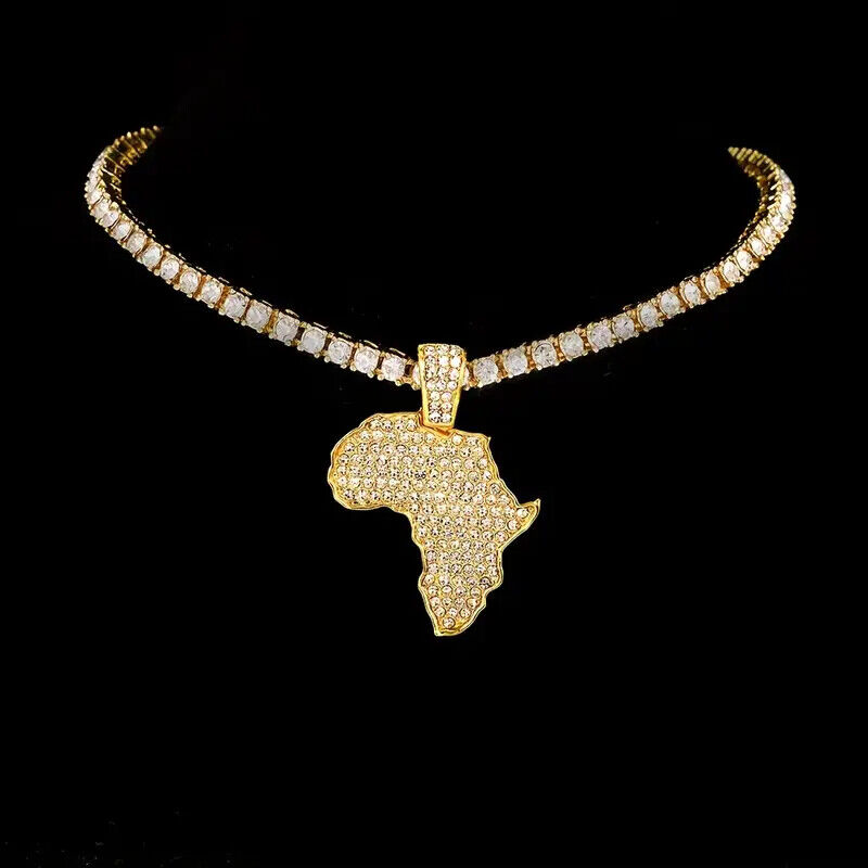 Icy AFRICA MAP Pendant & Iced 1 Row Cubic Zirconia Tennis Chain Hip Hop Necklace