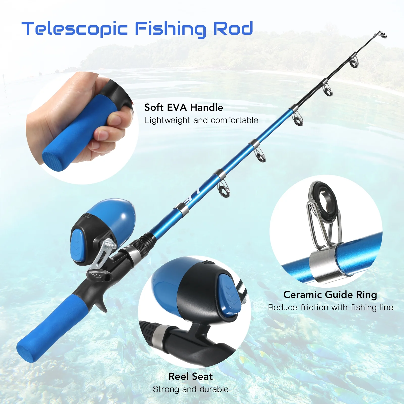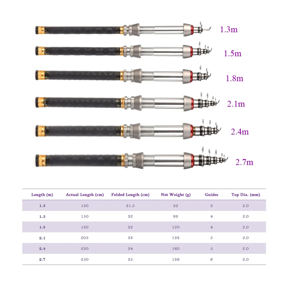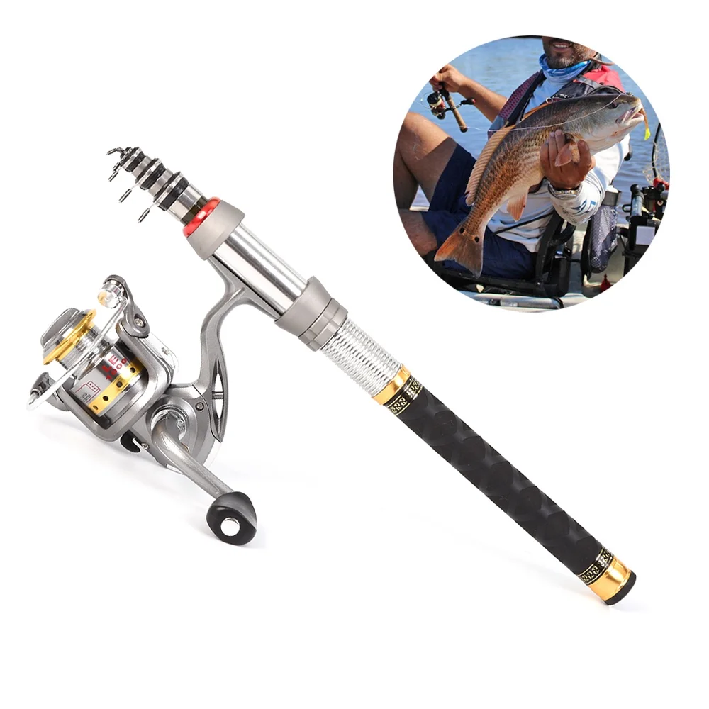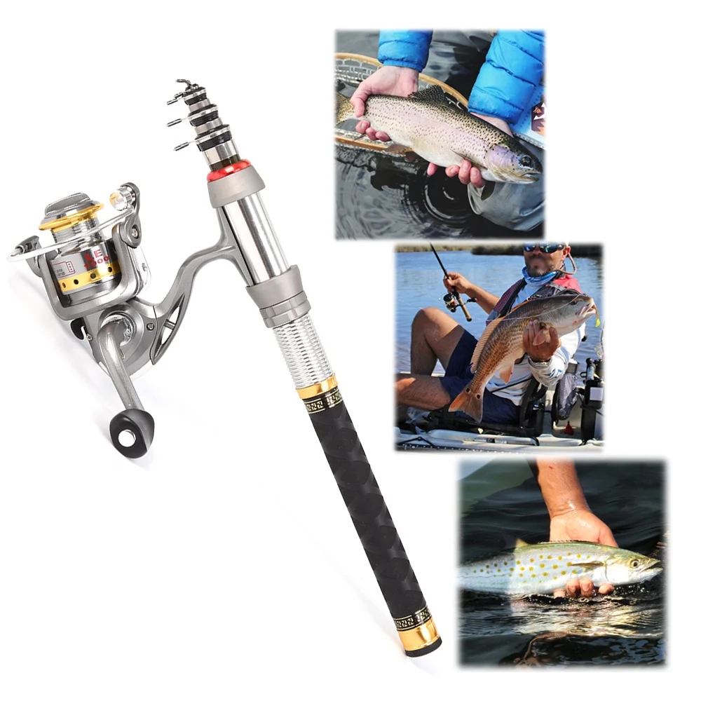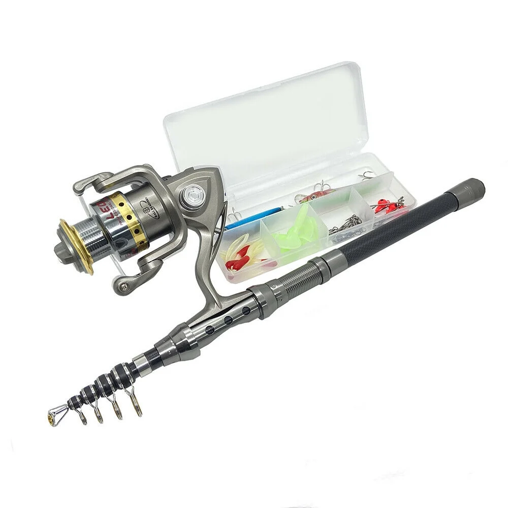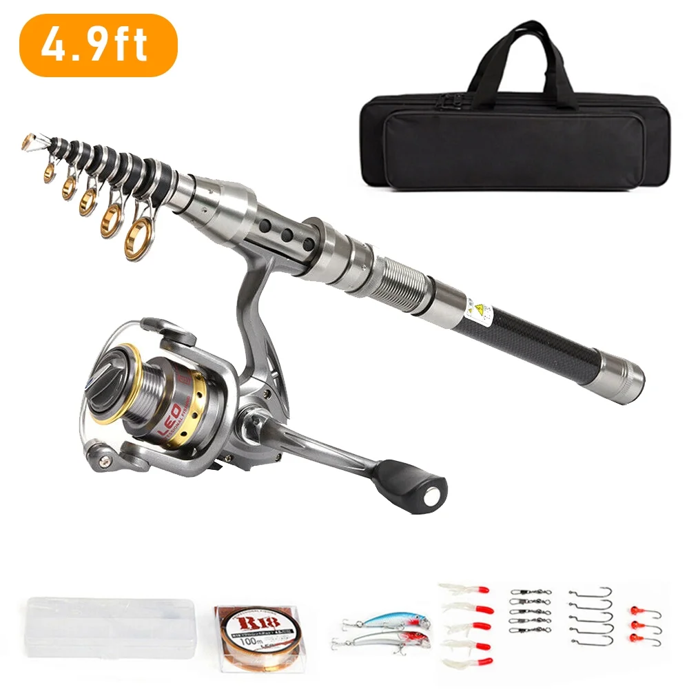 4.9ft Telescopic Fishing Rod Pole Spinning Reels Combos Full Kit with Bag 100M Line