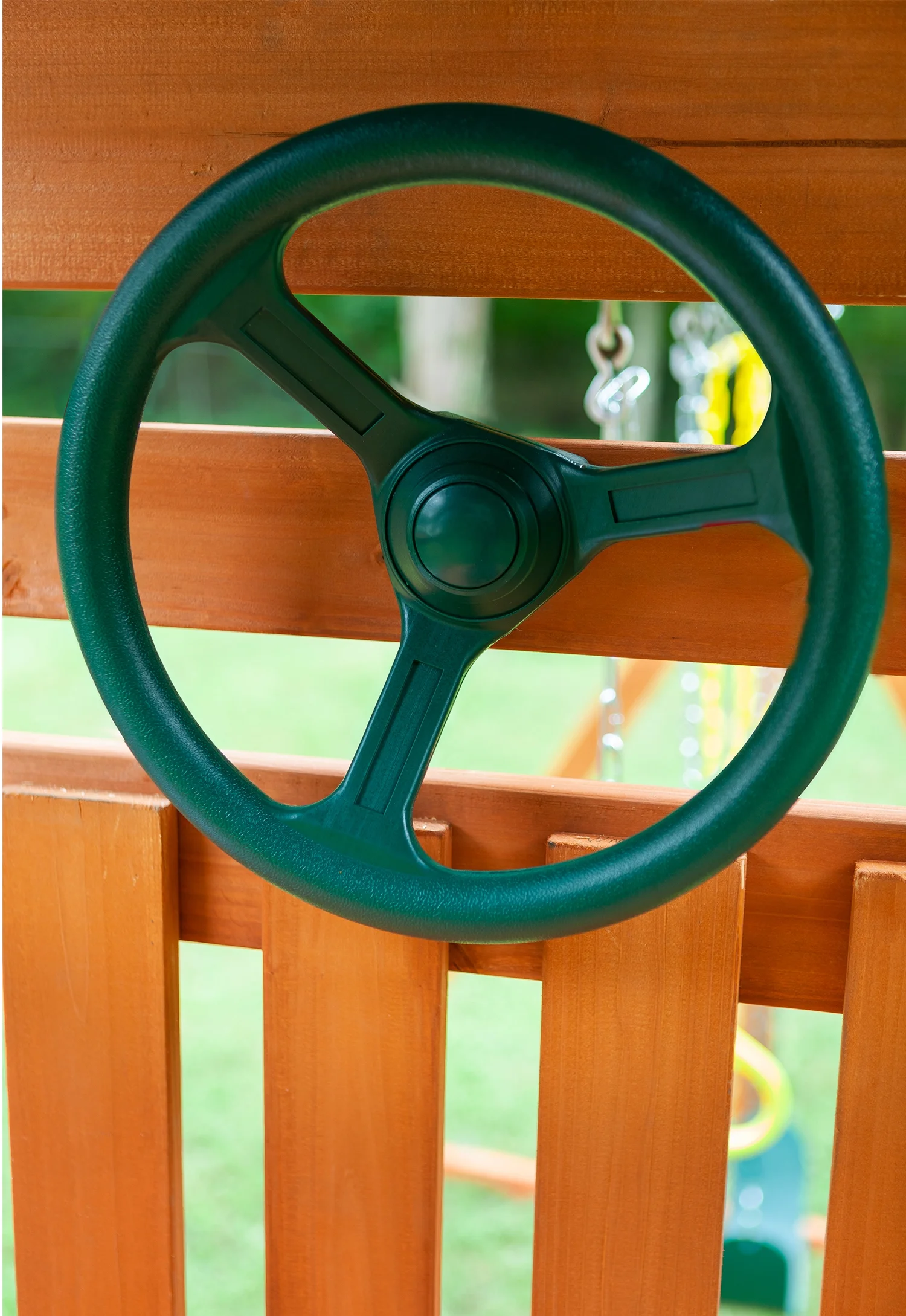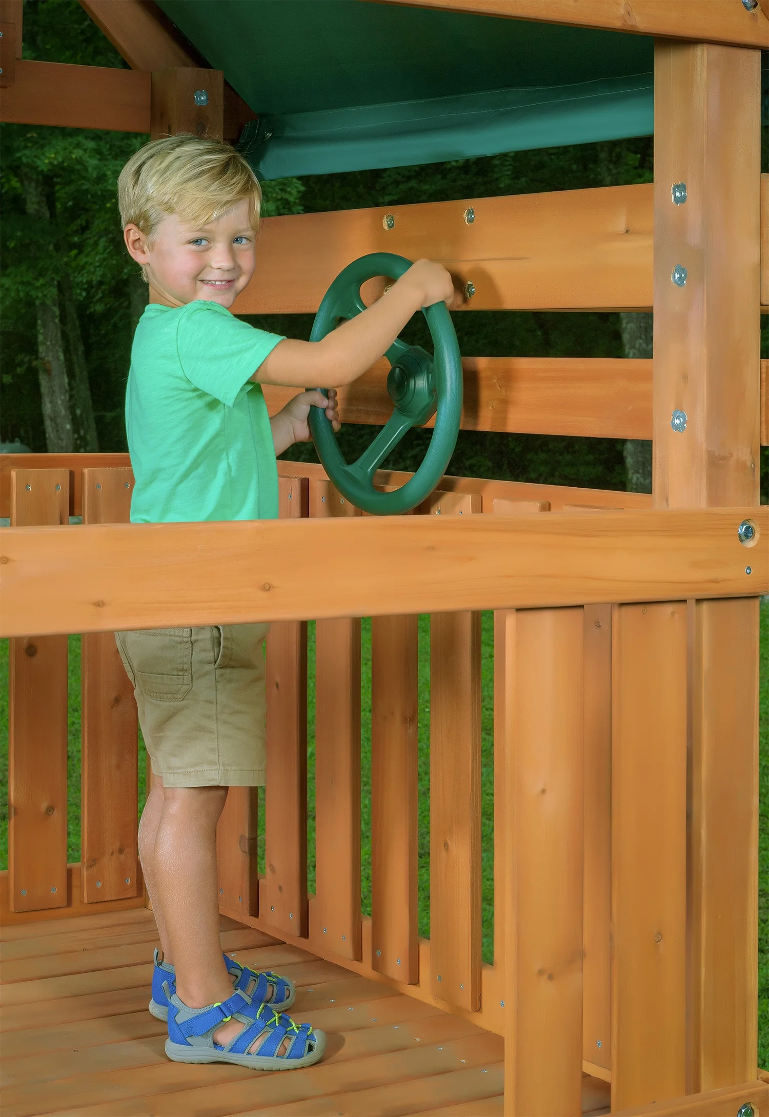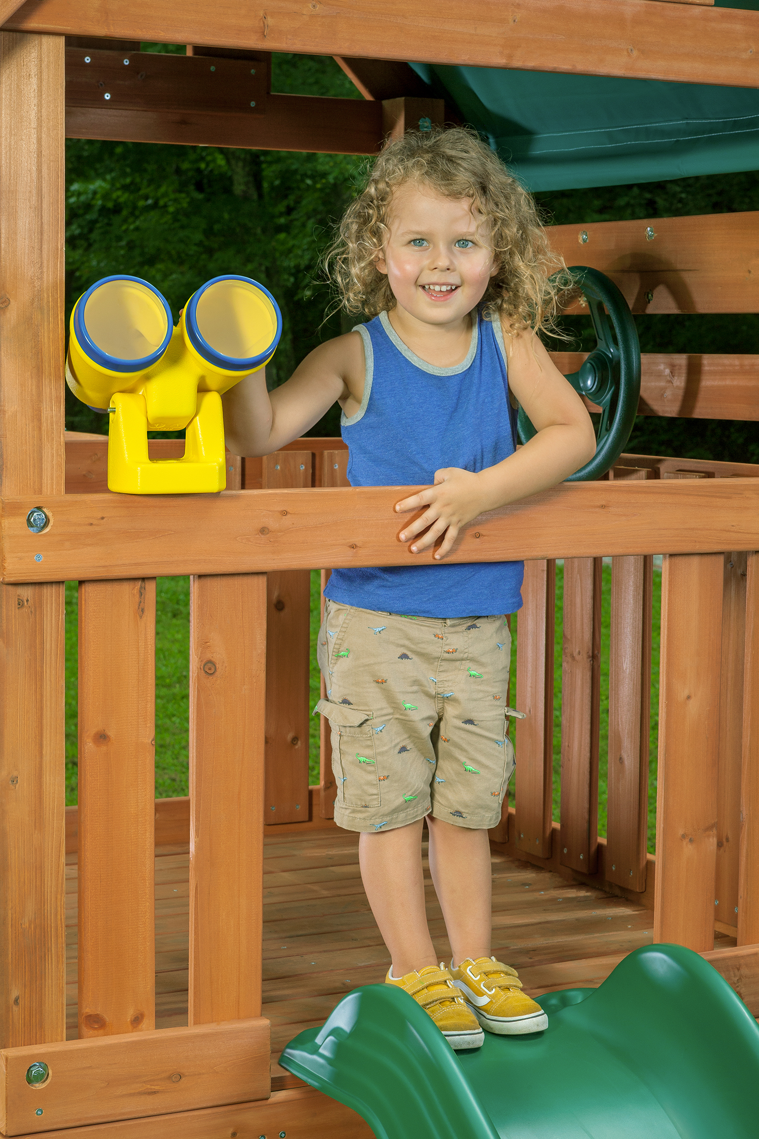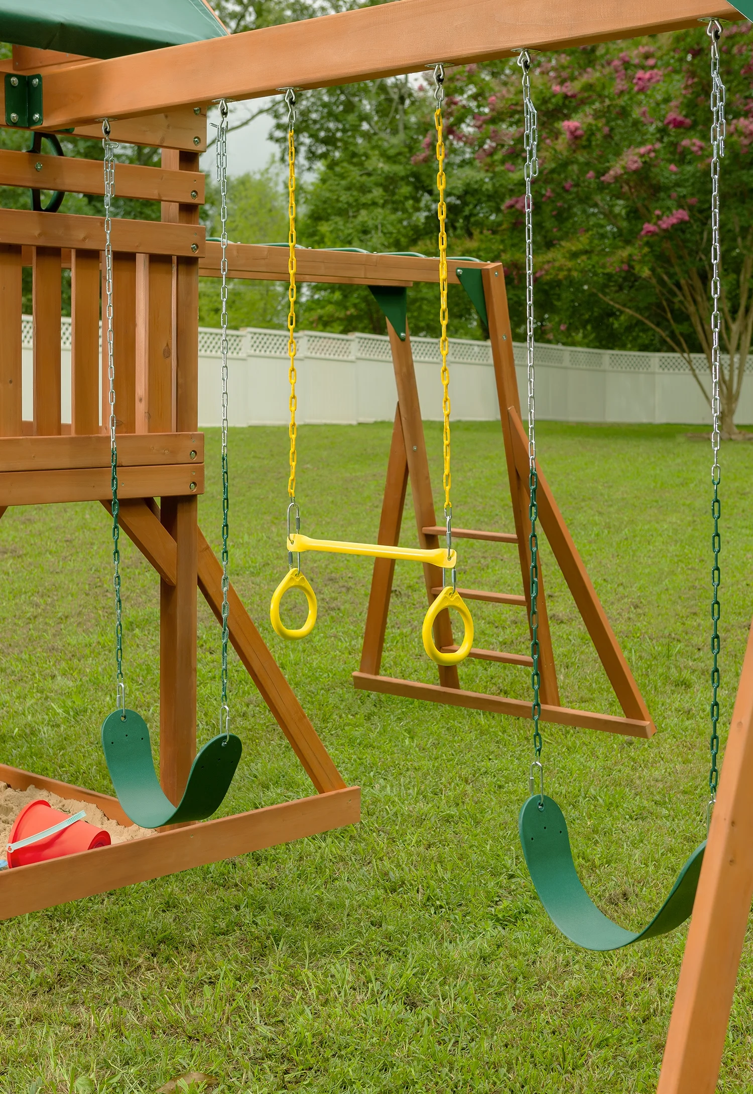 Creative Cedar Designs Mountain View Wooden Swing Sets with Tarp Roof with Multicolor Accessories & Green Slide