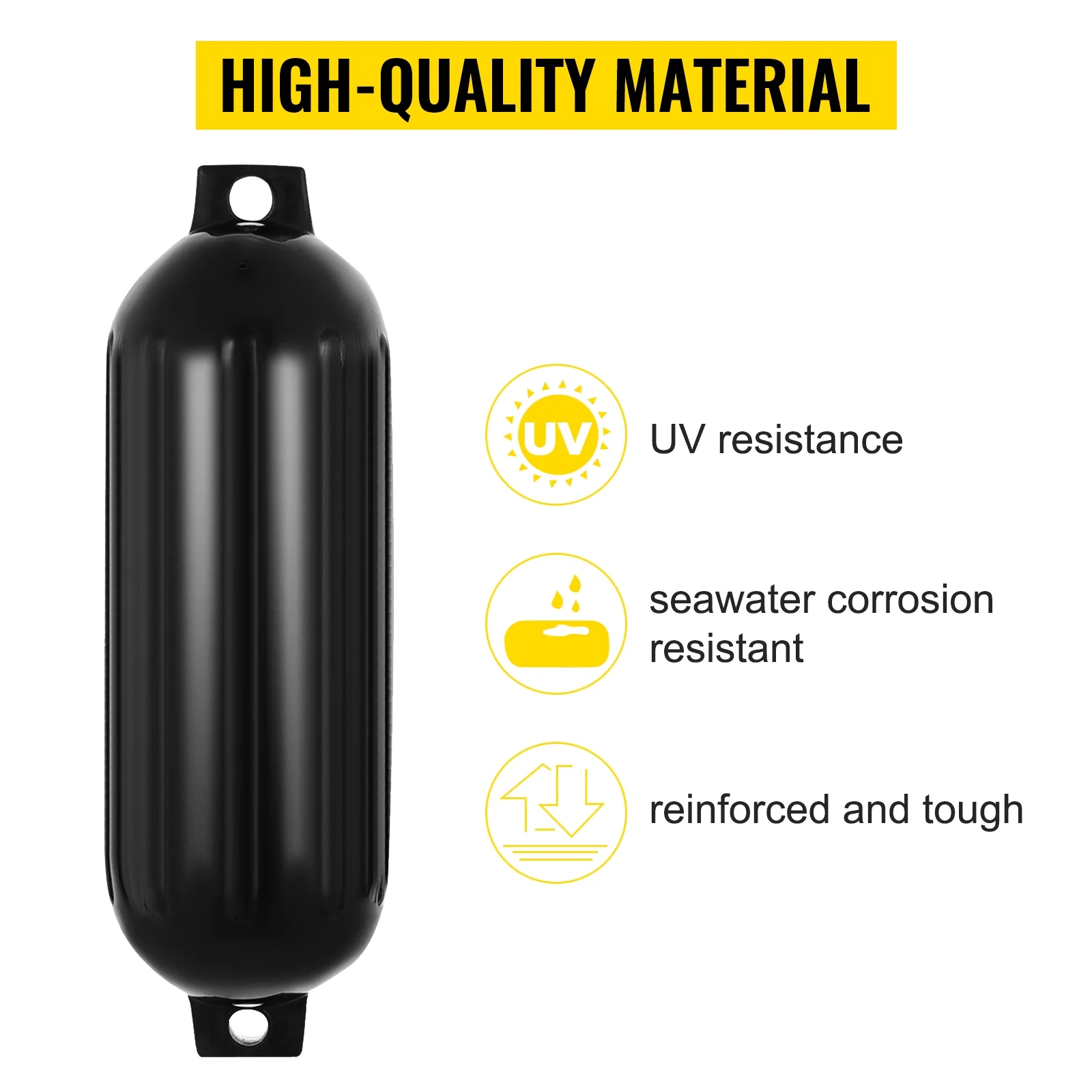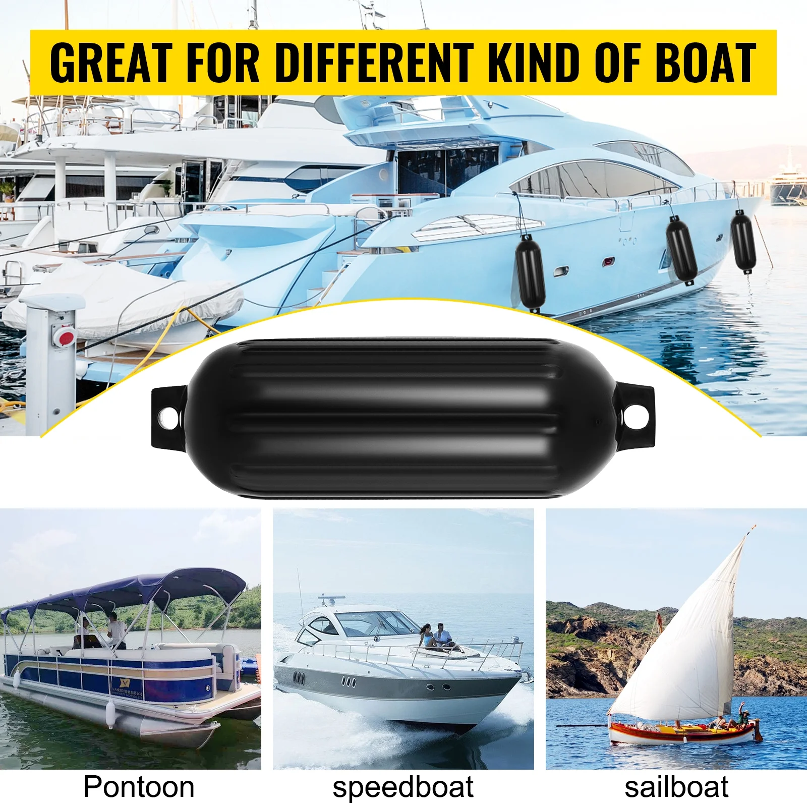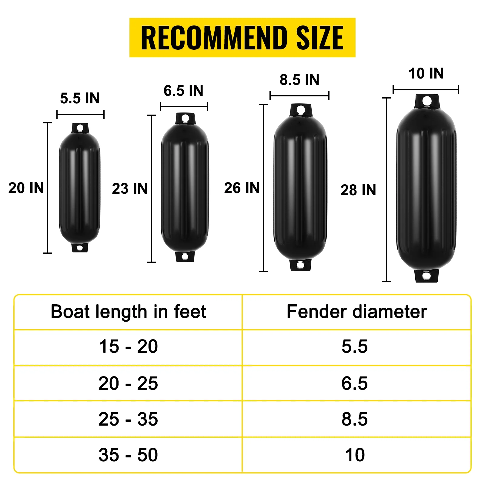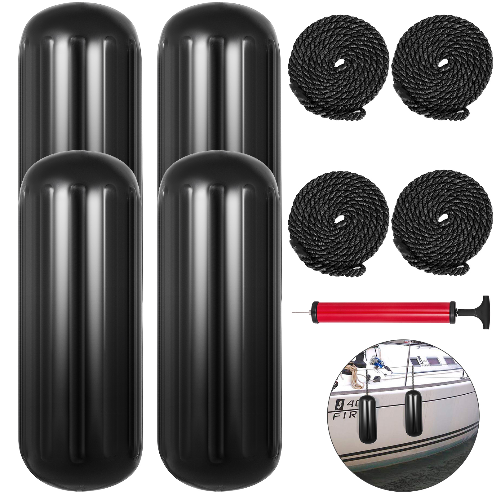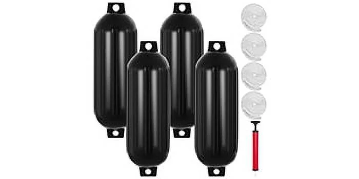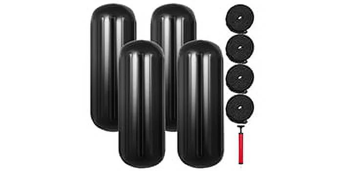 BENTISM 4 New Ribbed Boat Fenders 10" X 28" Black Center Hole Bumpers Mooring Protection