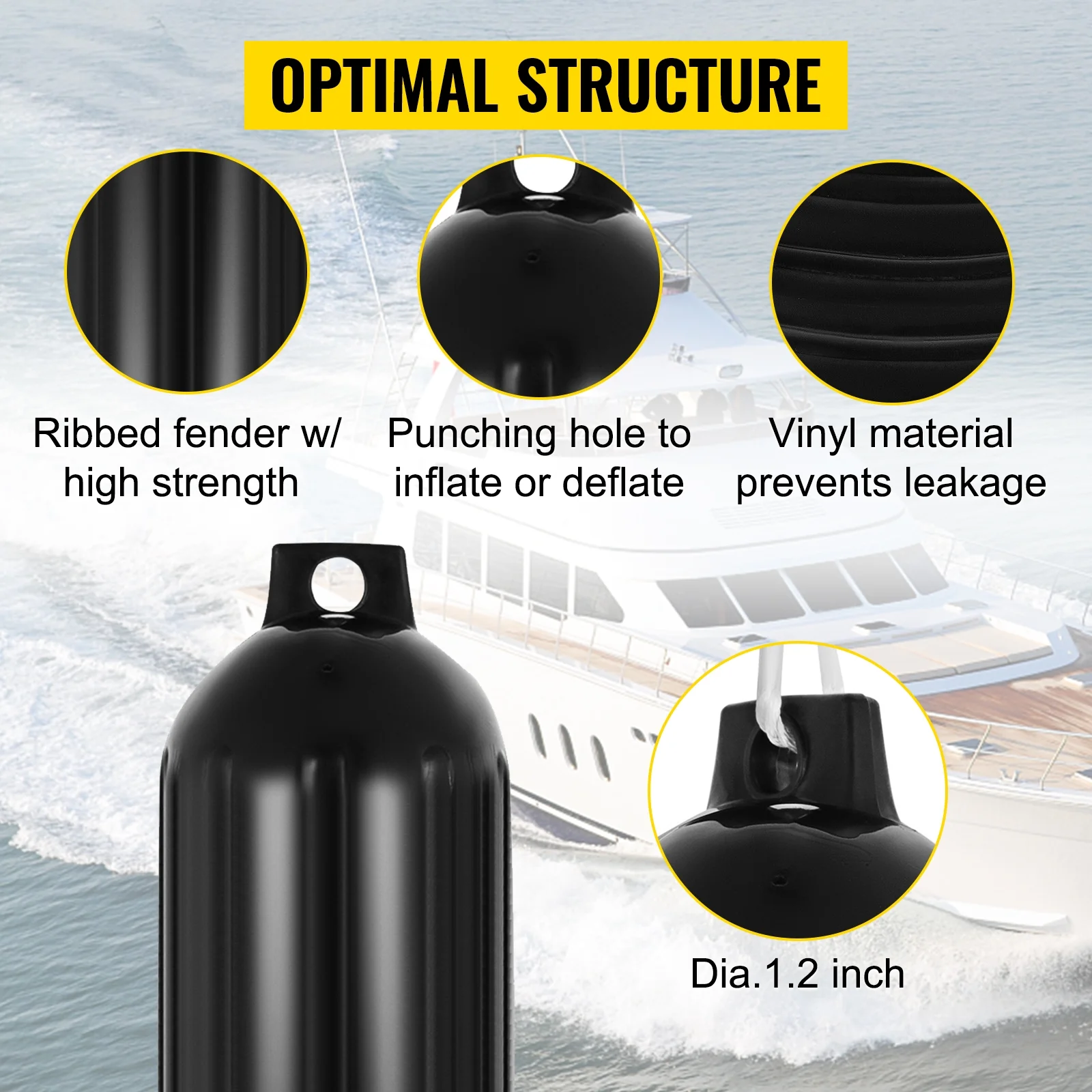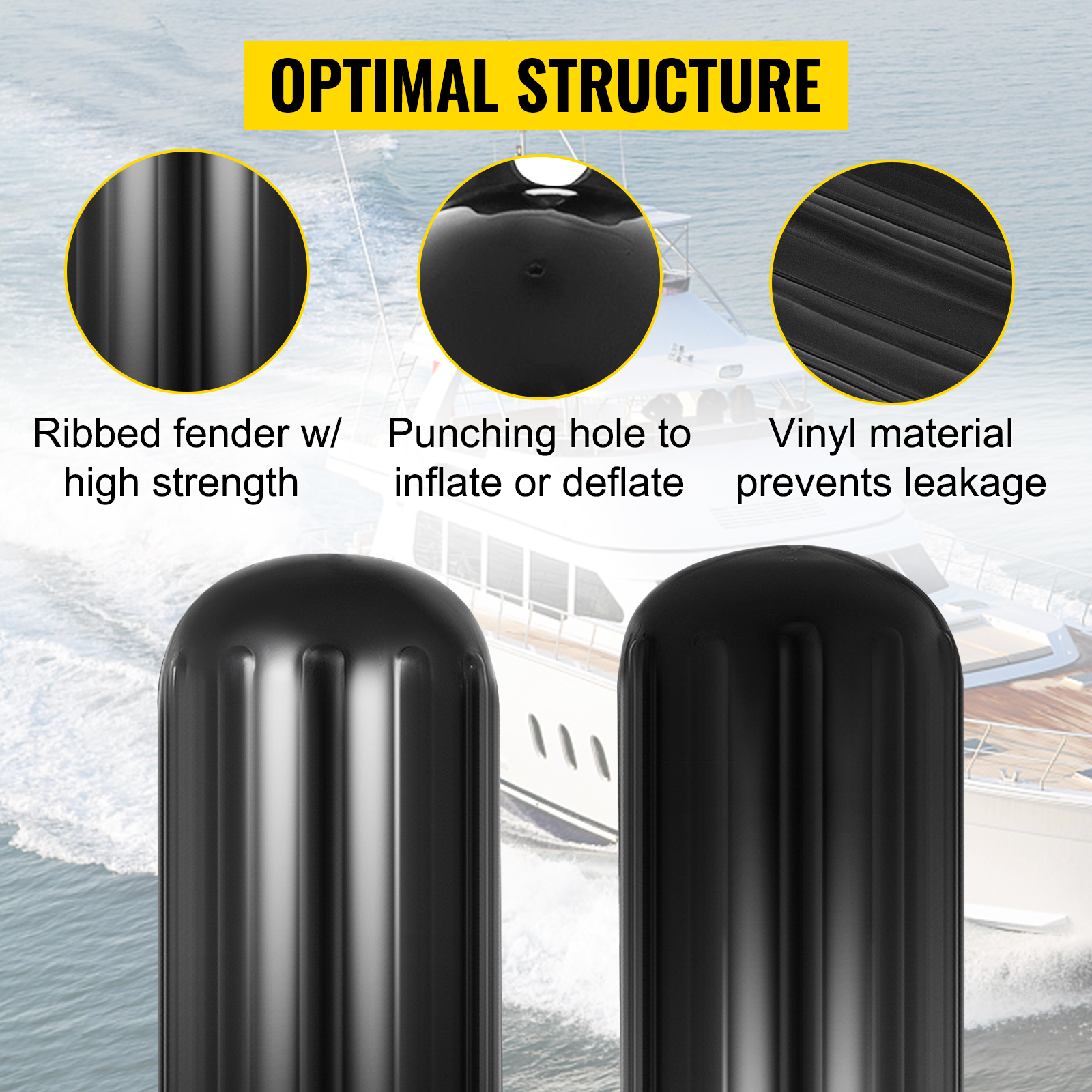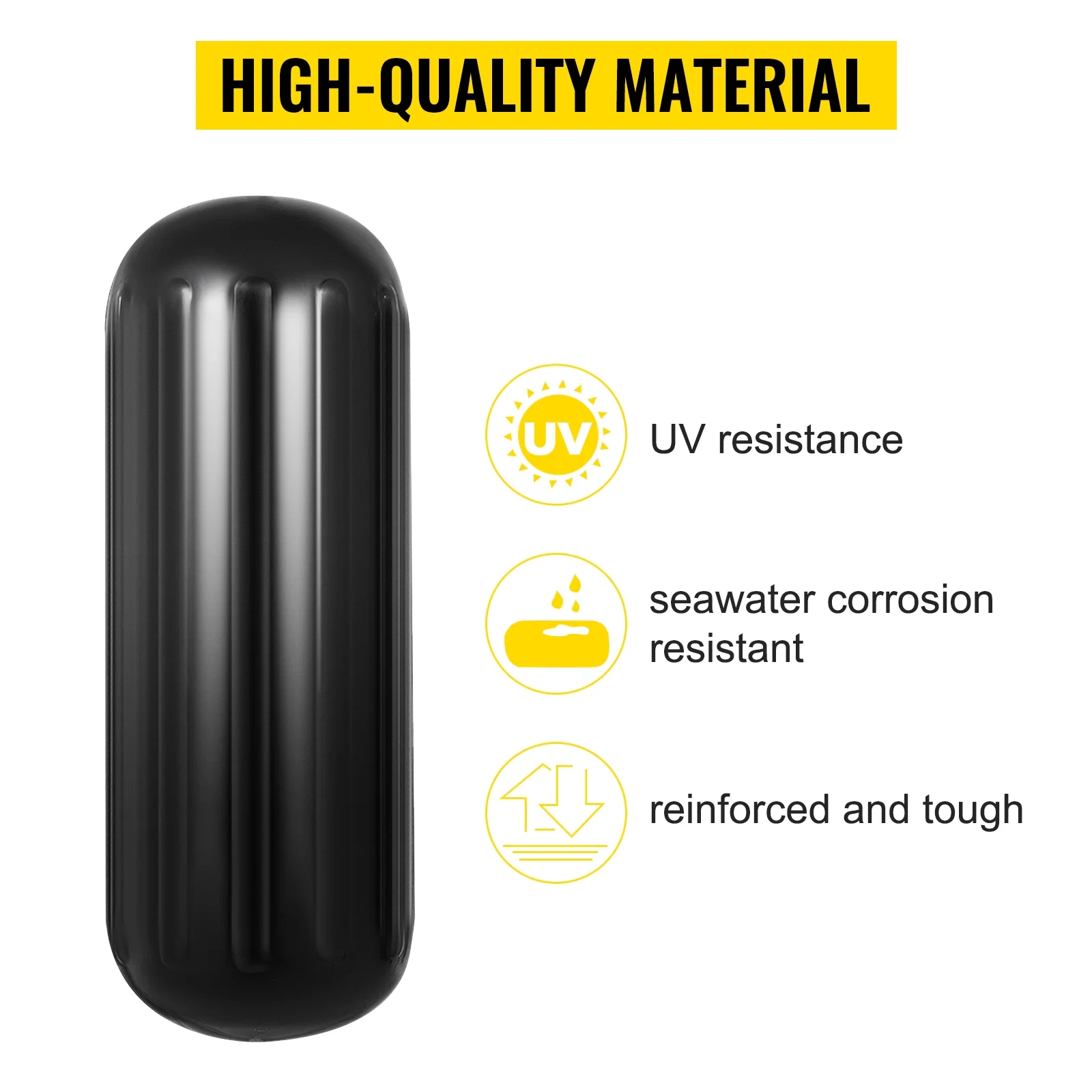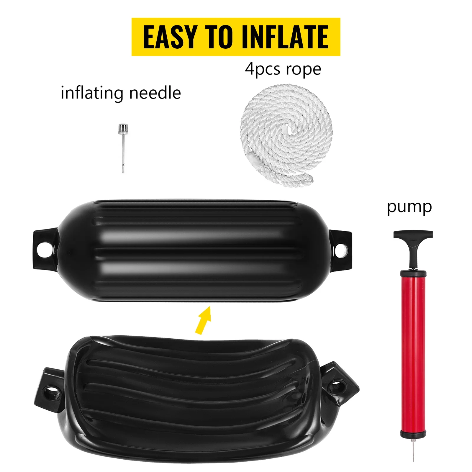 BENTISM 4 New Ribbed Boat Fenders 10" X 28" Black Center Hole Bumpers Mooring Protection