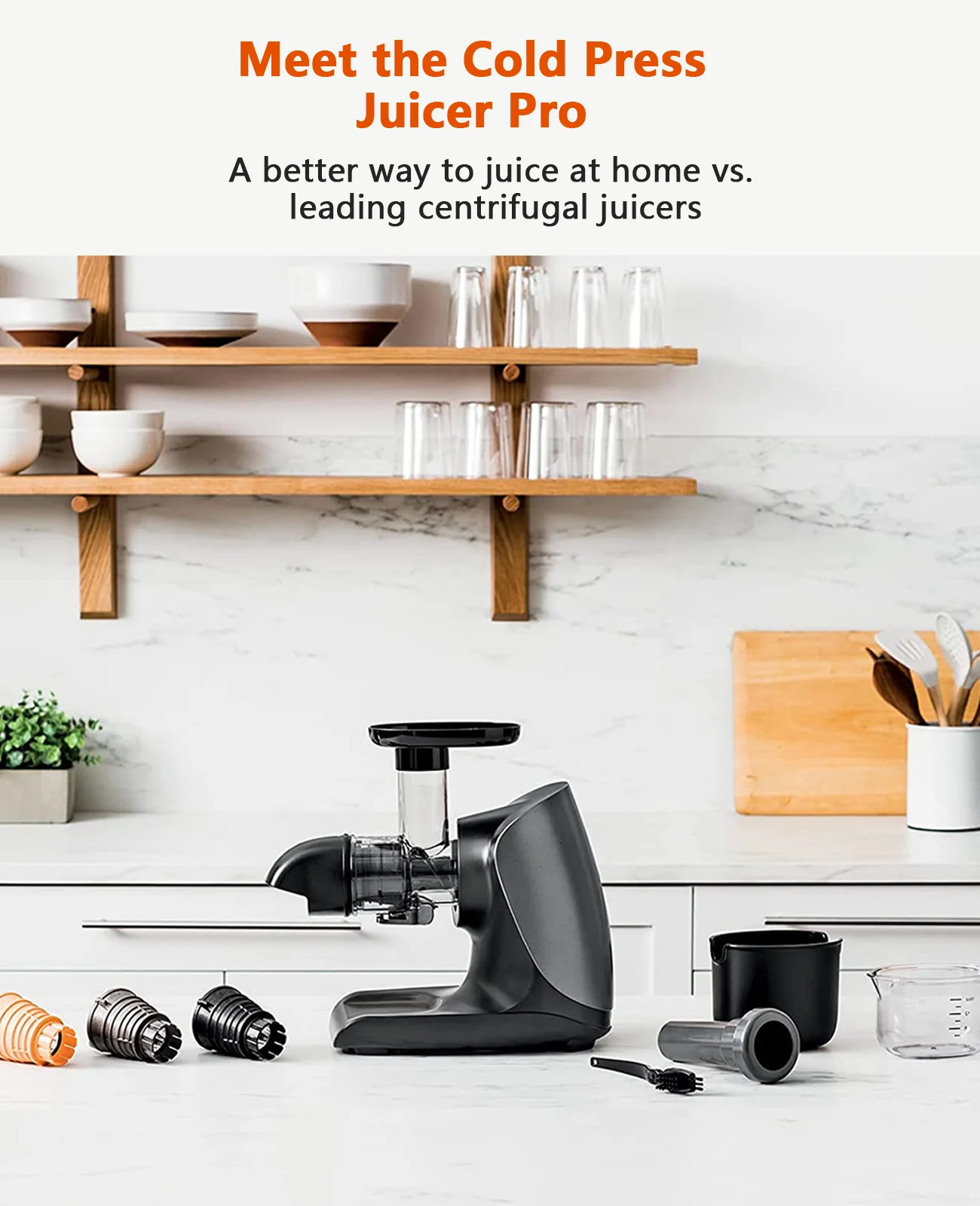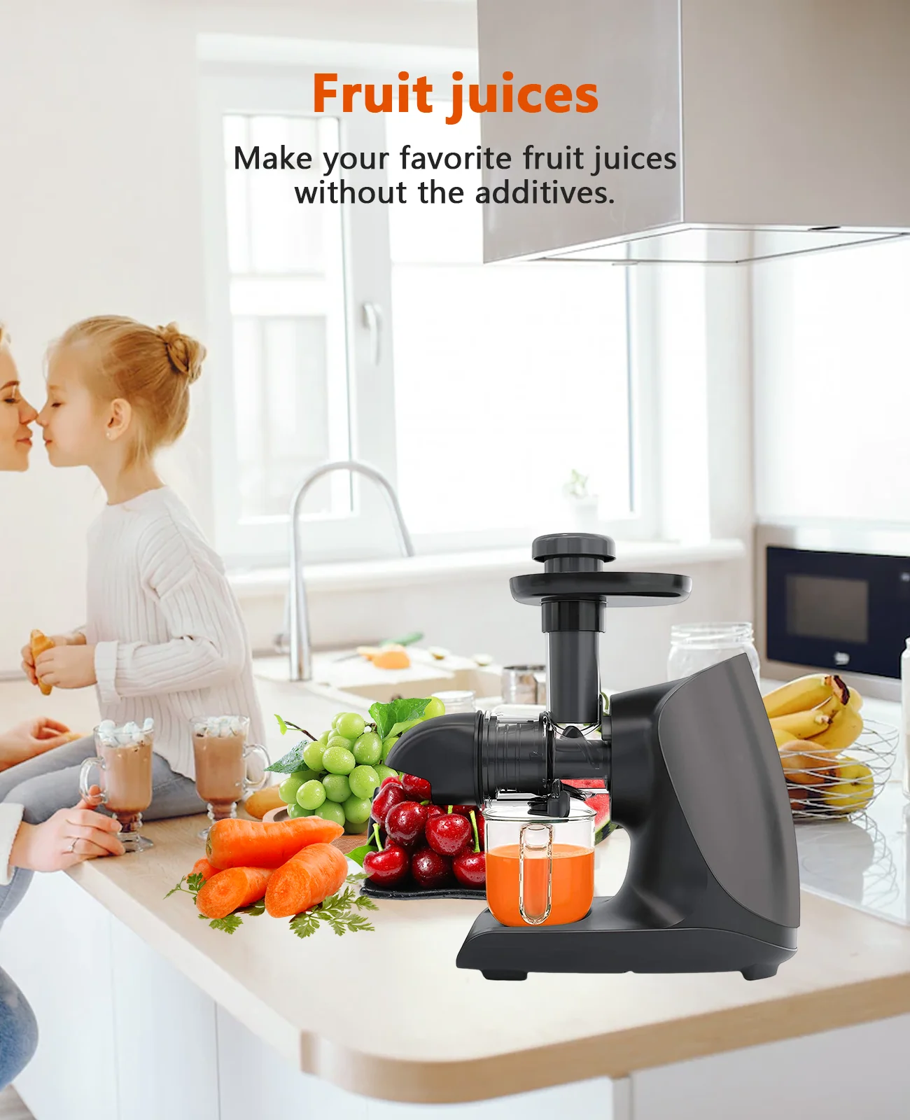Masticating Juicer for Fruits Vegetables - Cold Press Slow Juicer with Total Pulp Control (Black)