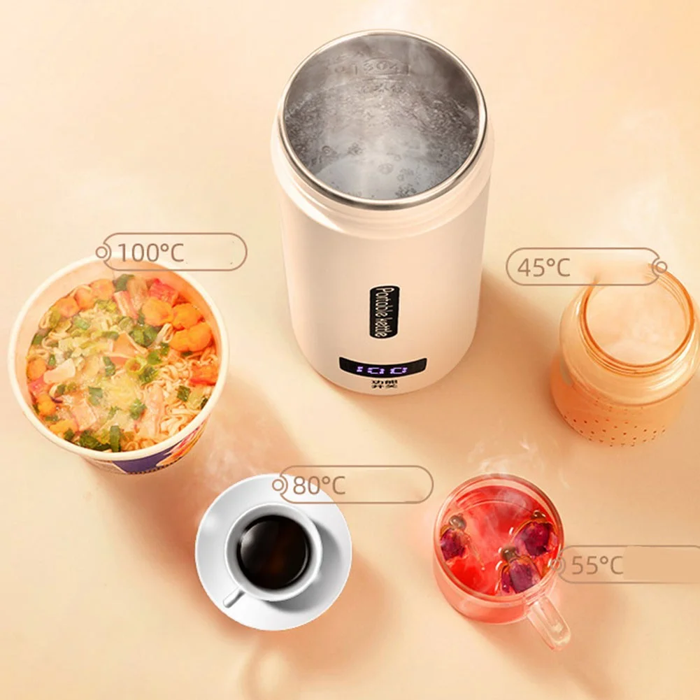 500ml Electric Kettle Hot Water Cup Heated Travel Portable Stainless Steel